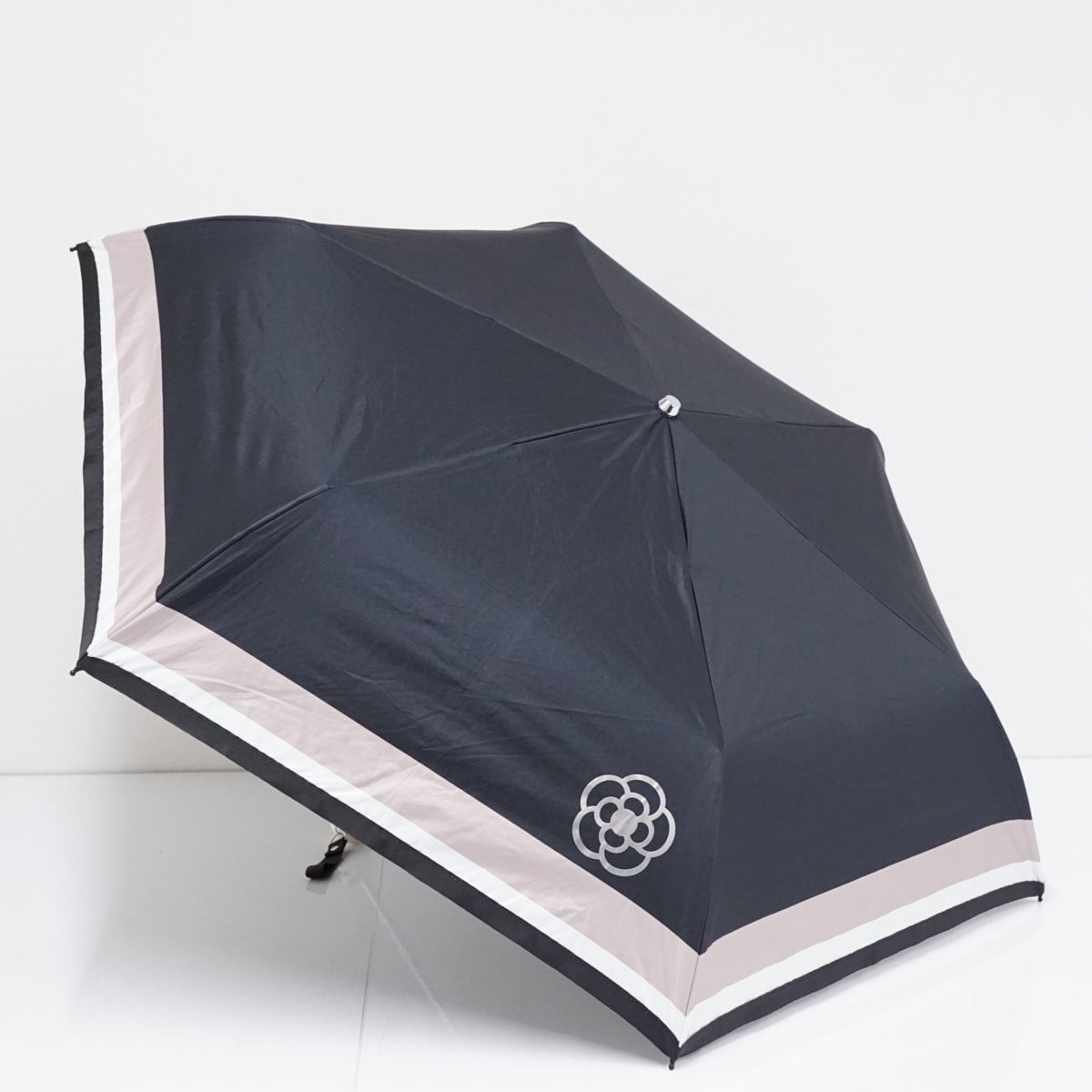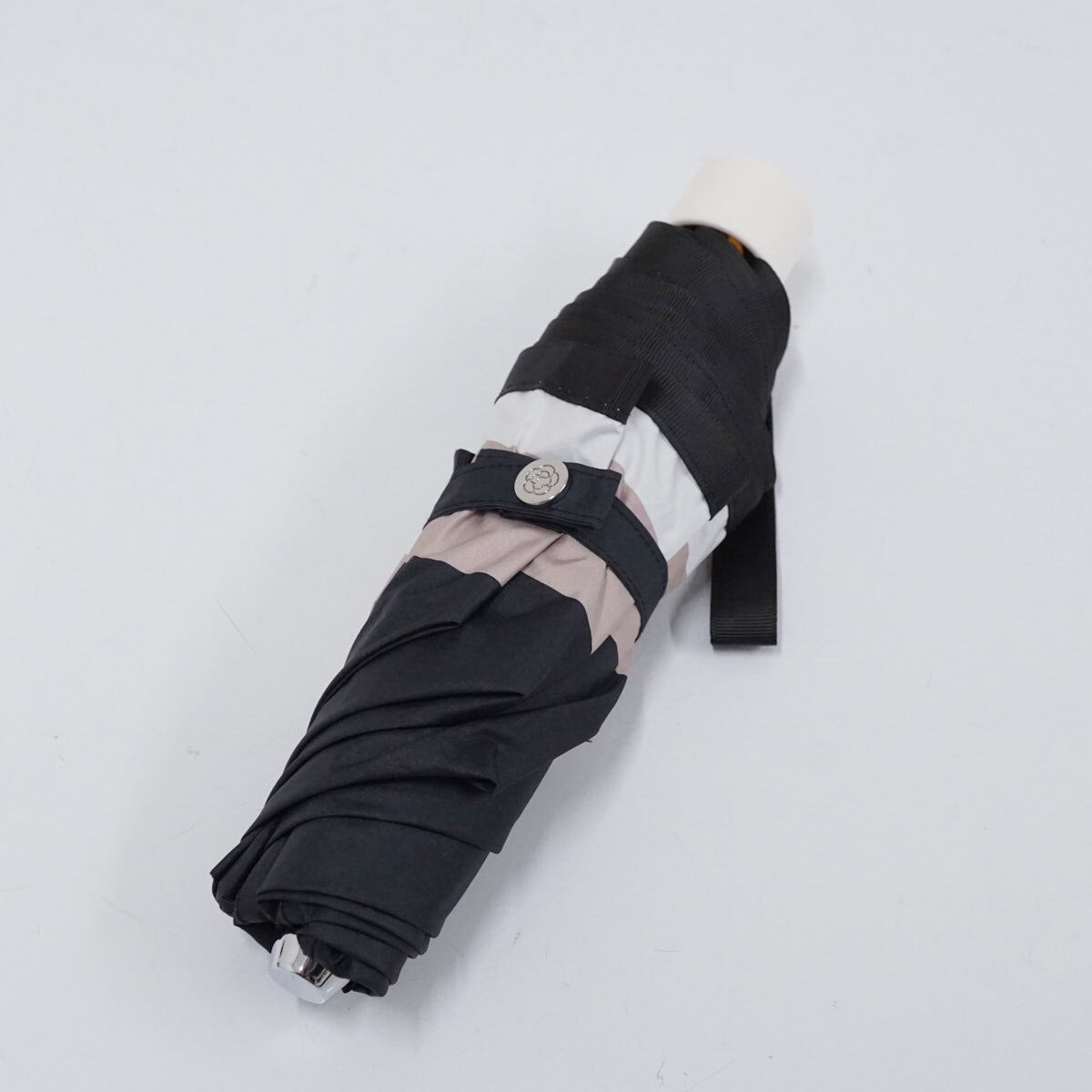折りたたみ日傘 CLATHAS クレイサス USED品 晴雨兼用 ボーダー 遮光 遮熱 カメリア ブラック 55cm FA9114