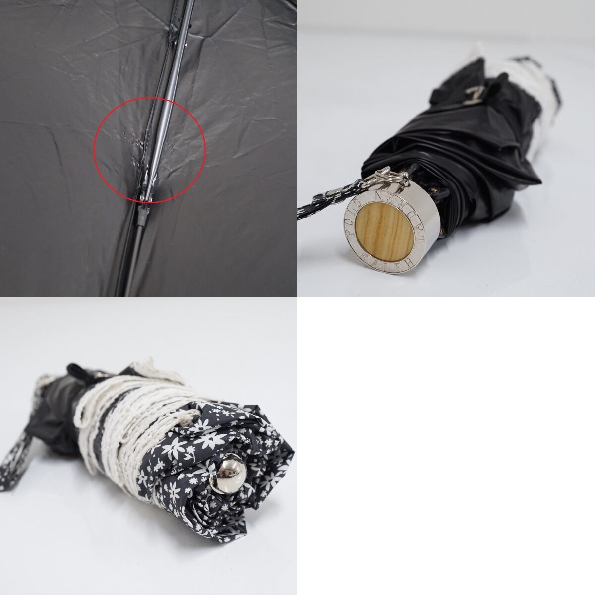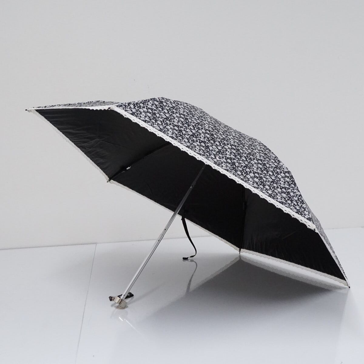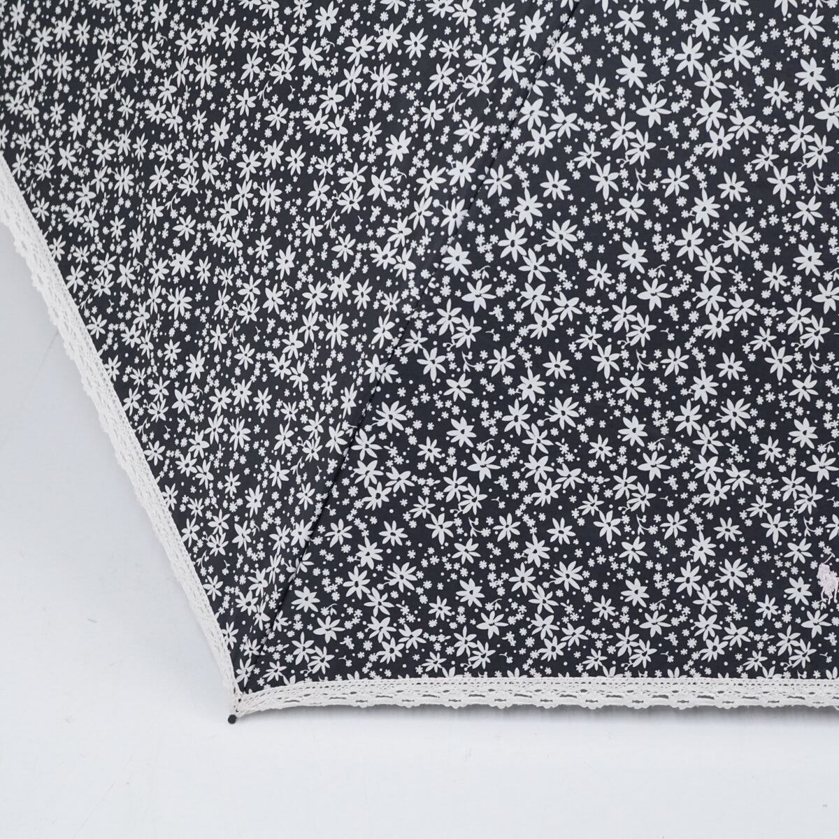 折りたたみ日傘 POLO RALPH LAUREN ポロラルフローレン USED品 晴雨兼用 フラワー ポニー刺繍 レース 遮光 ブラック 50cm FA9116