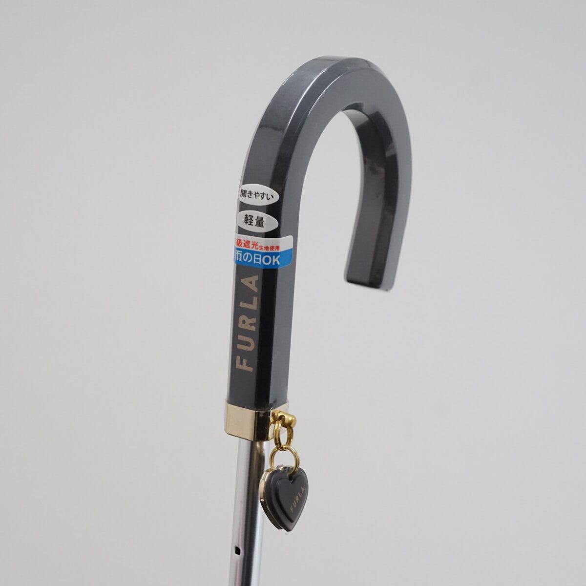 折りたたみ日傘 FURLA フルラ USED美品 一級遮光 晴雨兼用 ロゴ刺繍 ハートチャーム付き ブラック 遮熱 UV 50cm FS9119