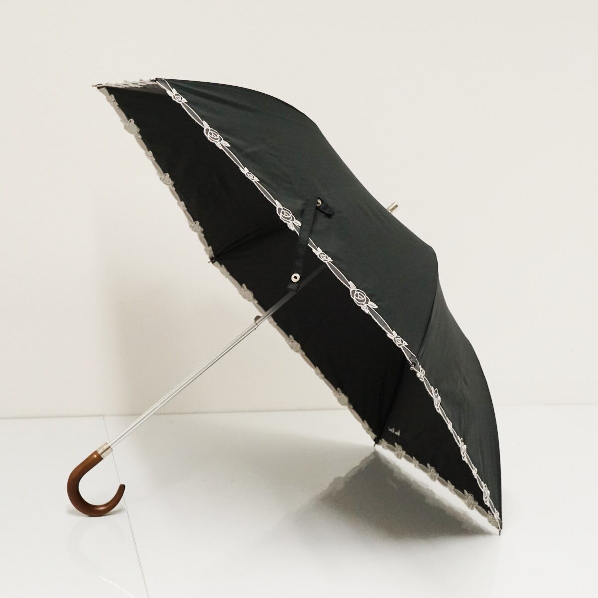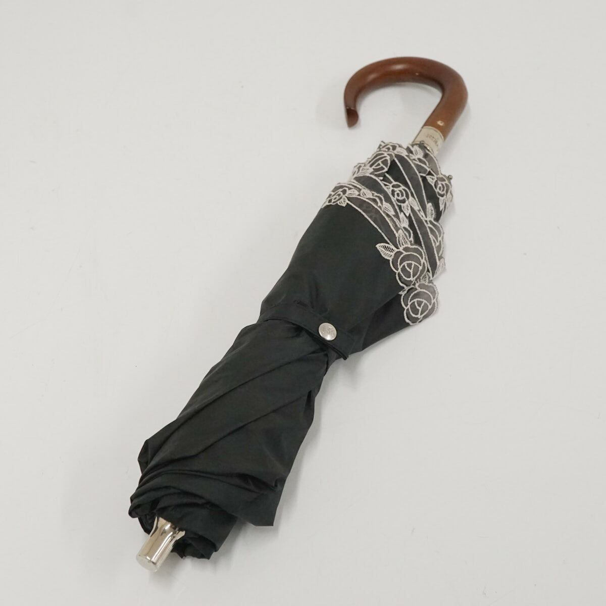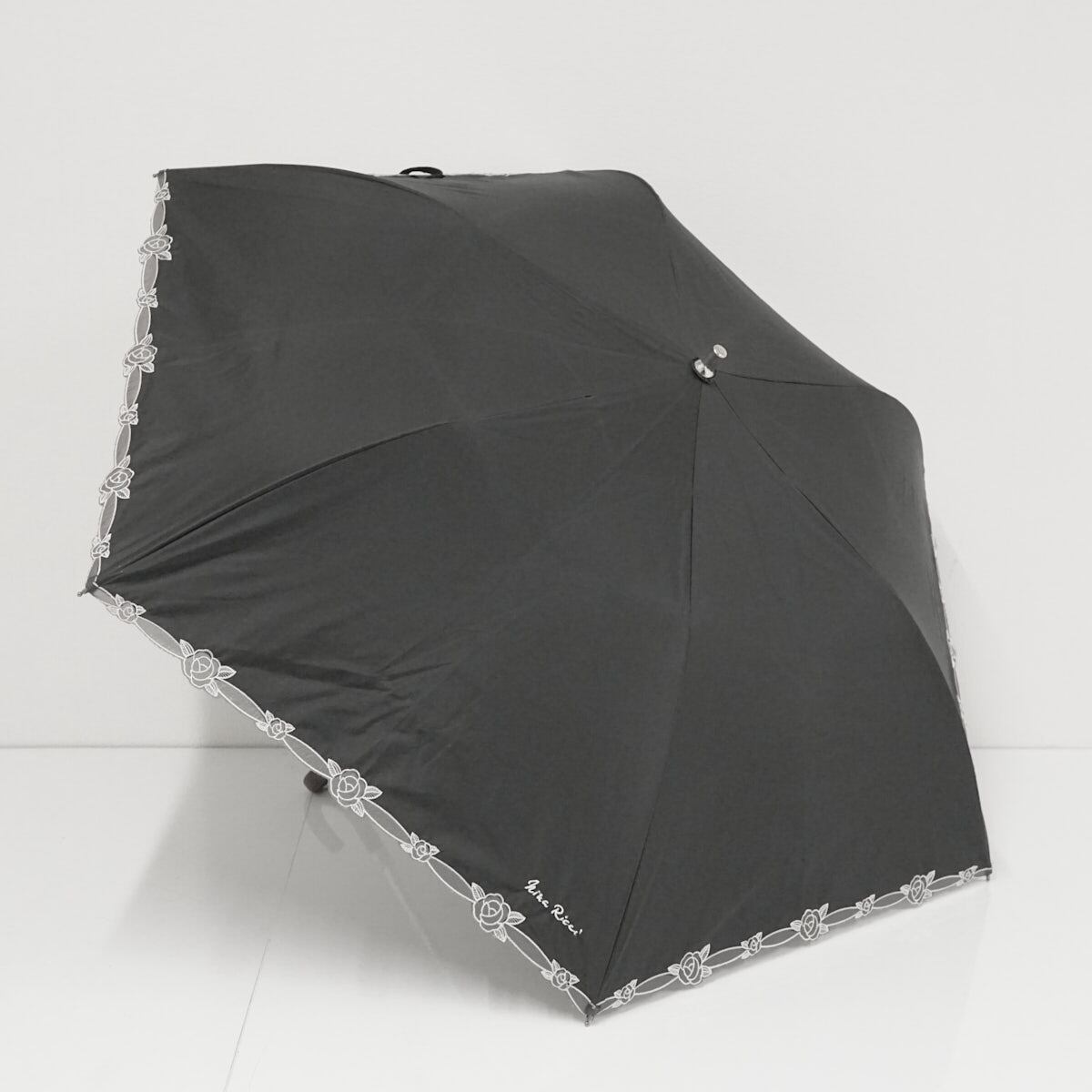 折りたたみ日傘 NINA RICCI ニナリッチ USED品 晴雨兼用 サマーシールドL? 刺繍 薔薇 UV 遮光 遮熱 ブラック 50cm FA9126