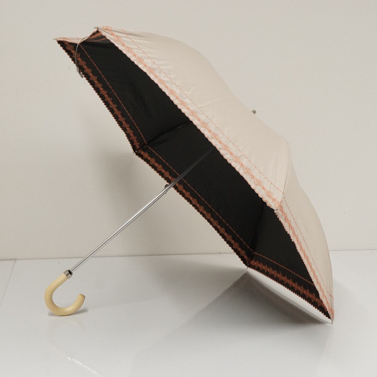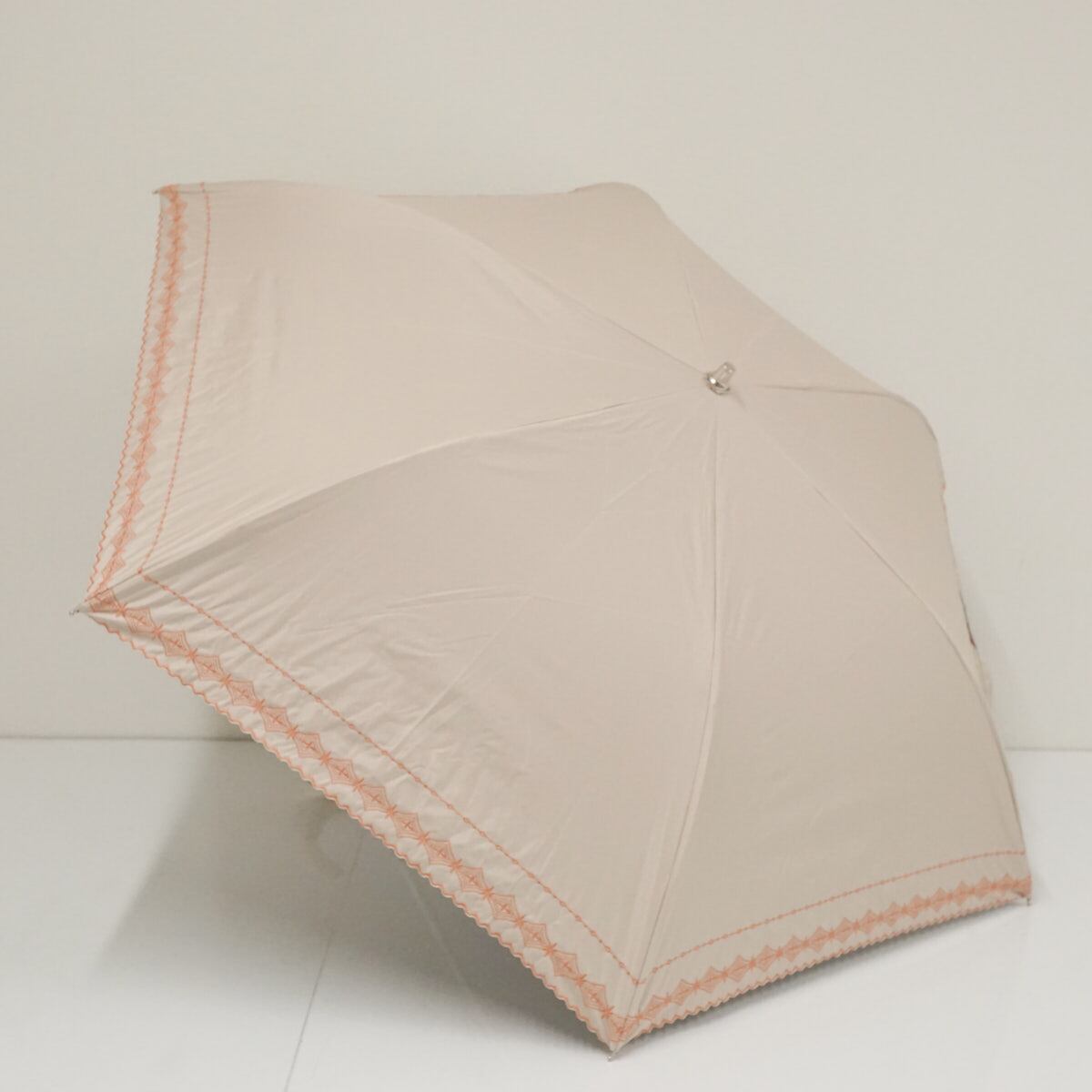 折りたたみ日傘 Aquascutum アクアスキュータム USED美品 サマーシールドL? 晴雨兼用 刺繍 UV 遮熱 ベージュ 50cm FS9128