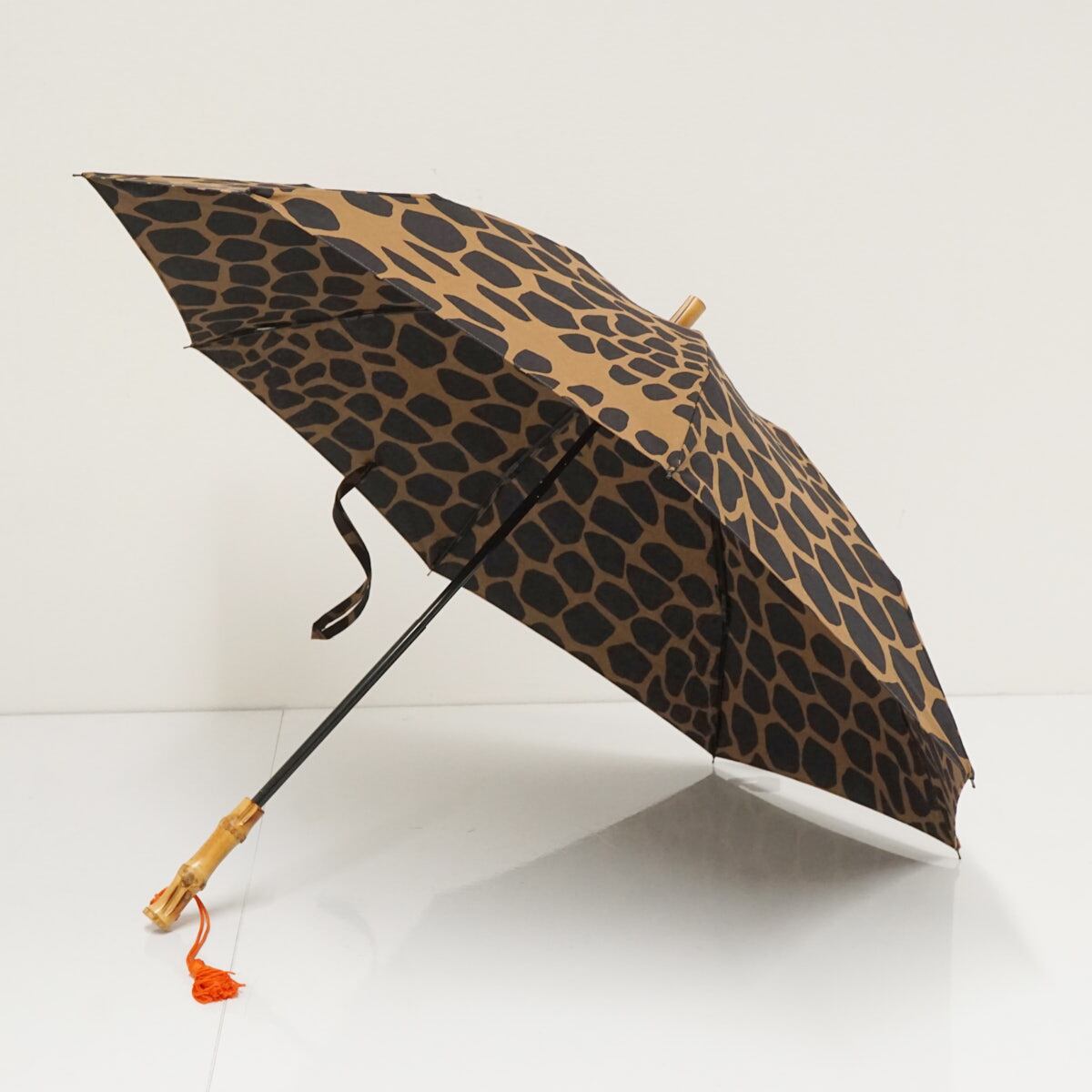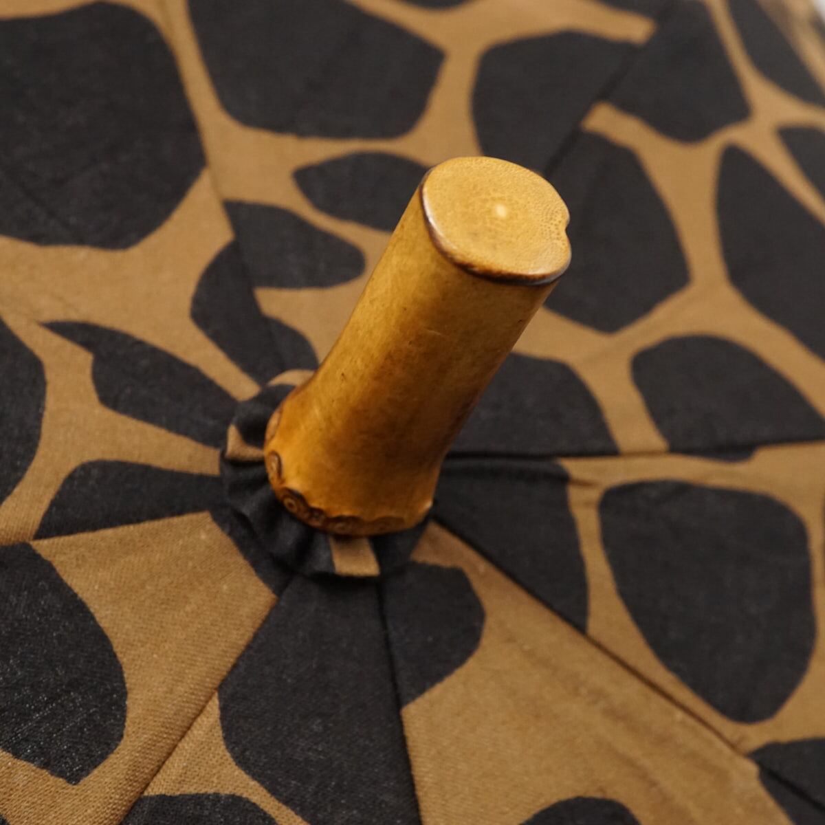 表裏を同じ色に染色できる「注染」でキリン柄を表現した綿素材に、UVコート加工を施し紫外線対策。