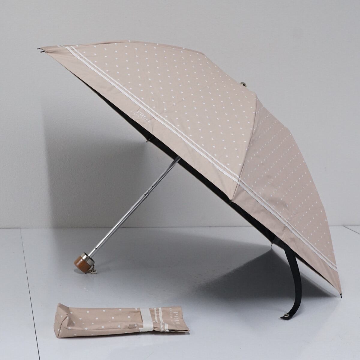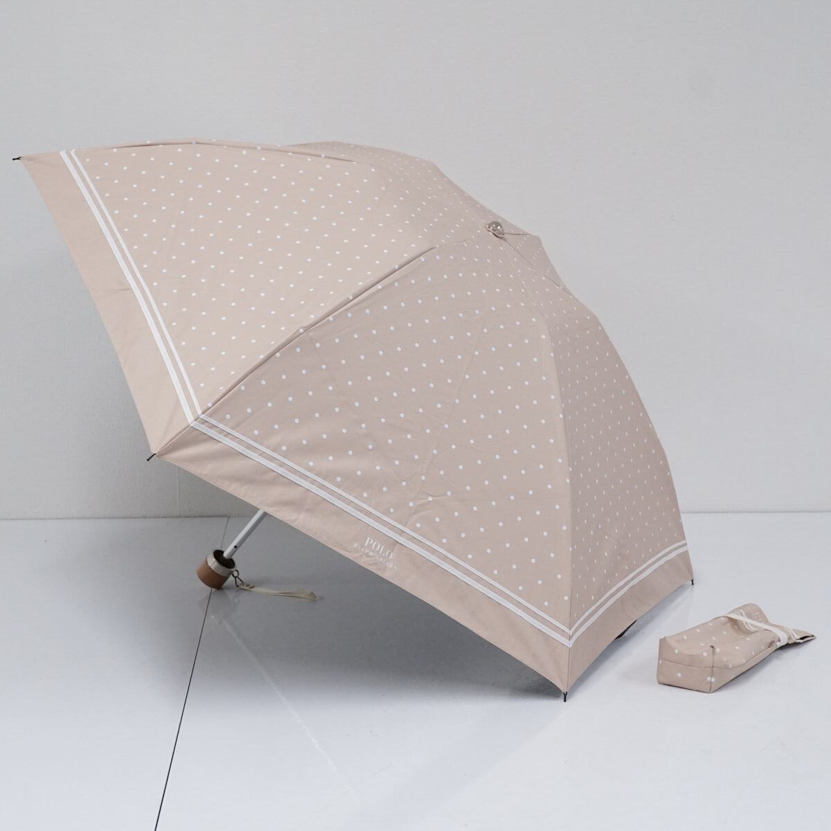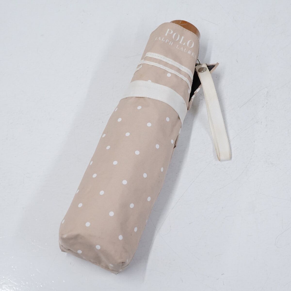折りたたみ日傘 POLO RALPH LAUREN ポロラルフローレン USED品 晴雨兼用 ベージュ ドット ラインボーダー ロゴ 50cm FS9122