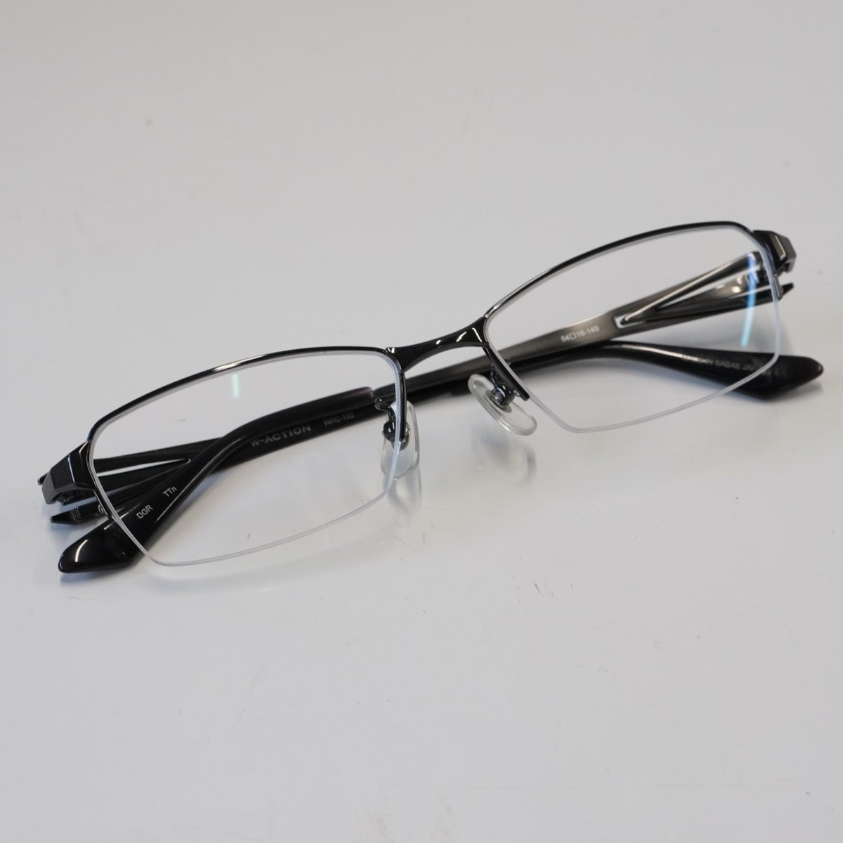 眼鏡市場 W-ACTION WAC-102 眼鏡 USED超美品 メンズ スクエア ハーフリム チタン 鯖江 日本製 中古 X7354