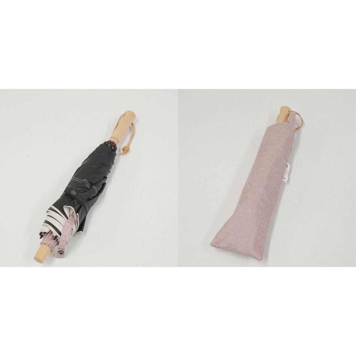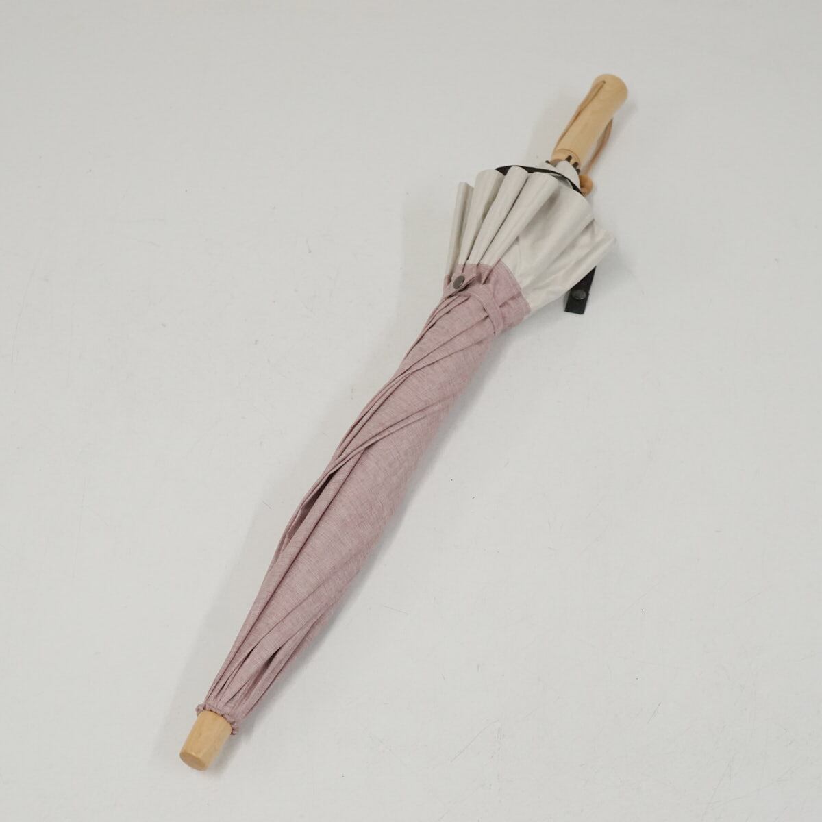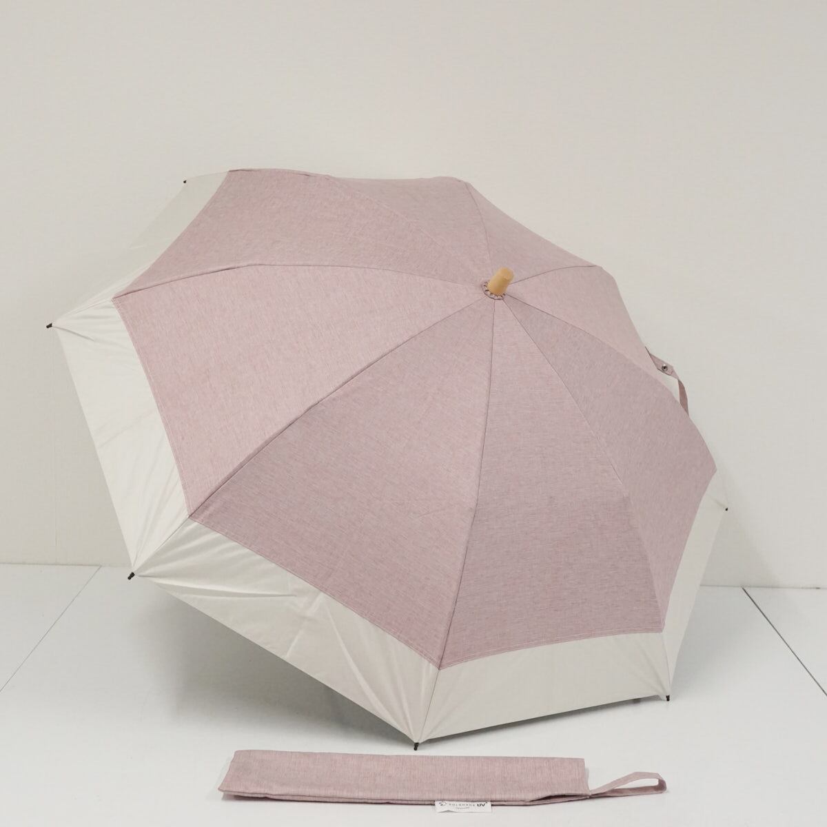 折りたたみ日傘 SOLSHADE ソルシェード USED品 晴雨兼用 2WAY収納 遮光 UVカット 杢ローズ×アイボリー 50cm FA9139