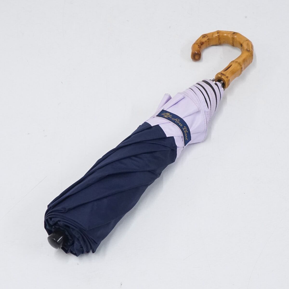 完全遮光折日傘 芦屋ロサブラン USED品 2段折ミドル コンビ ネイビー ラベンダー 寒竹手元 UV 遮熱 折りたたみ 55cm FS9148