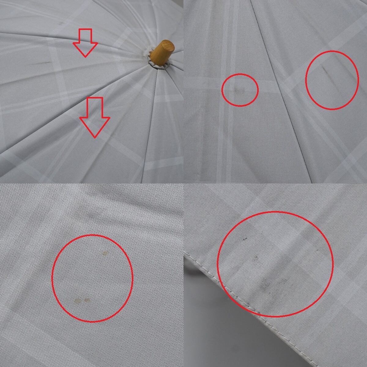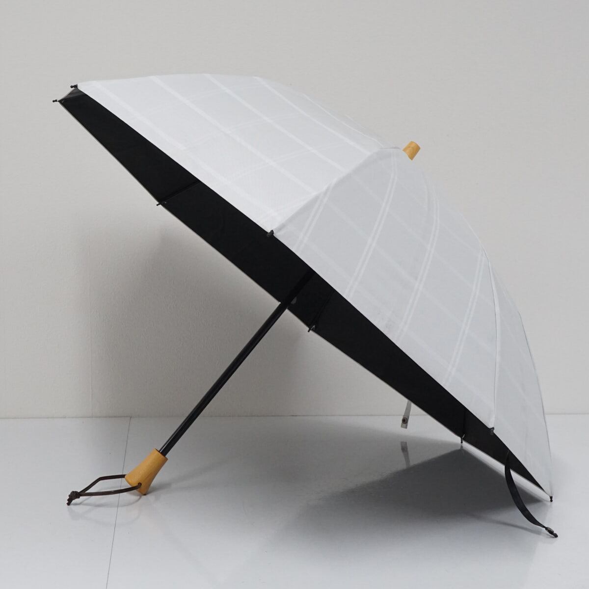 折日傘 サンバリア100 完全遮光折日傘 USED美品 2段 チェック ホワイト 折りたたみ傘 50cm FS9151