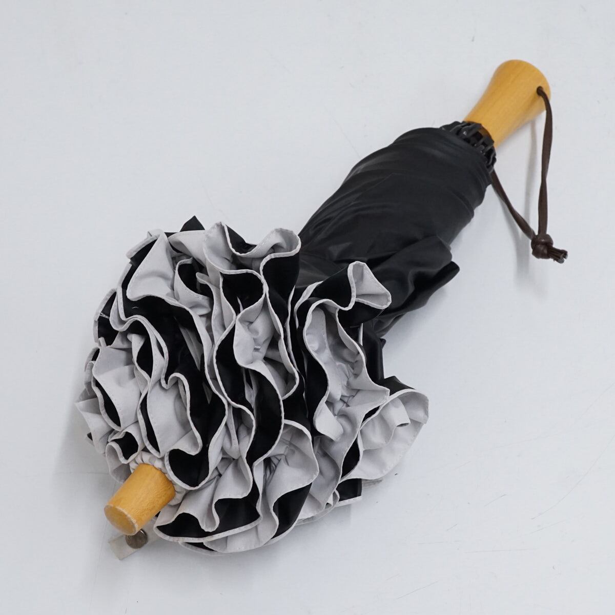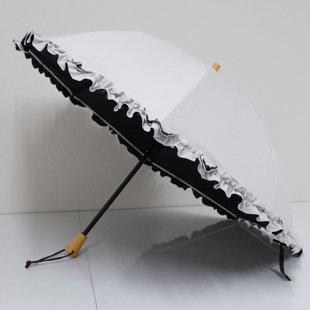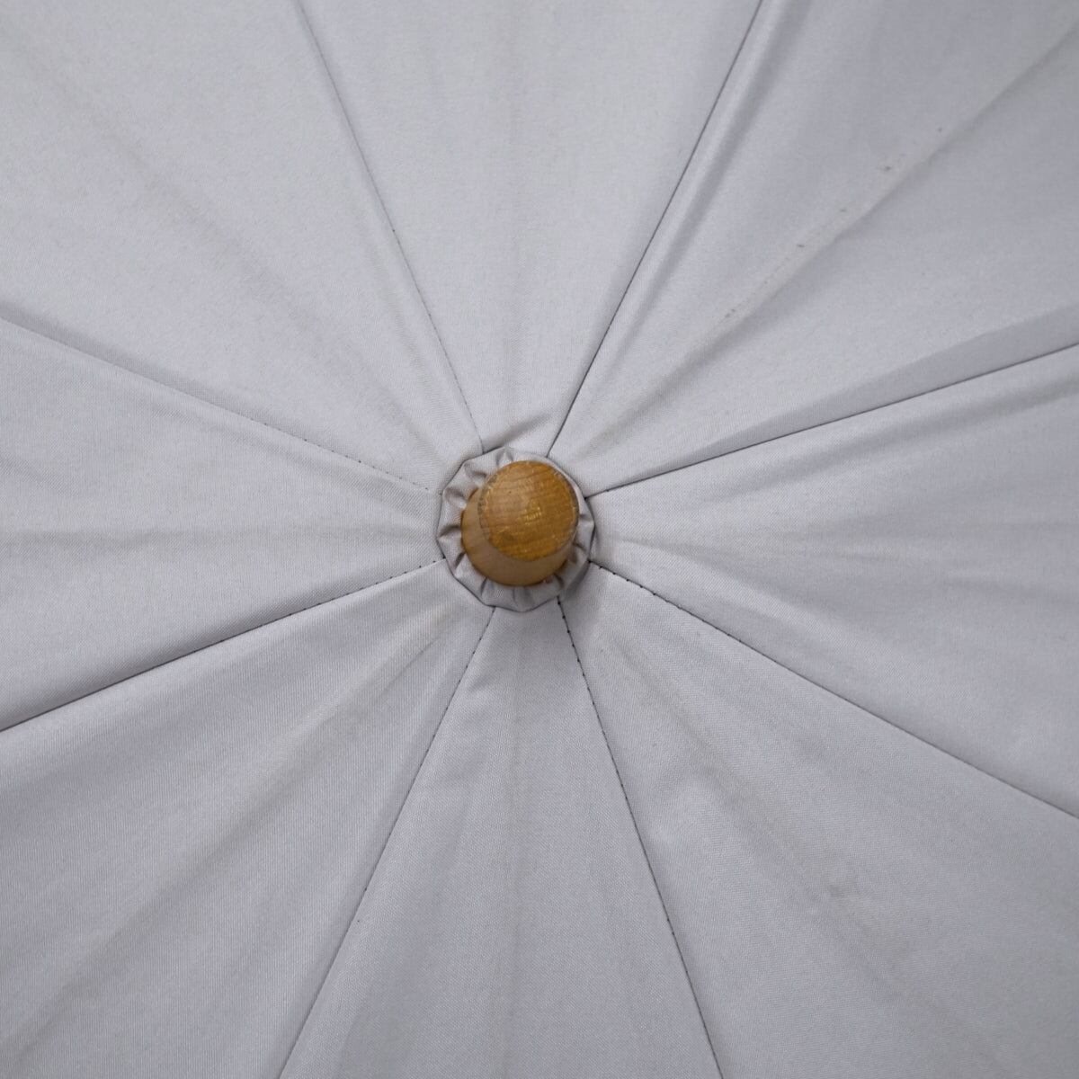 サンバリア100 完全遮光折日傘 USED品 2段折 フリル ホワイト 白 木製手元 UV 遮光 遮熱 折りたたみ傘 50cm FS9188