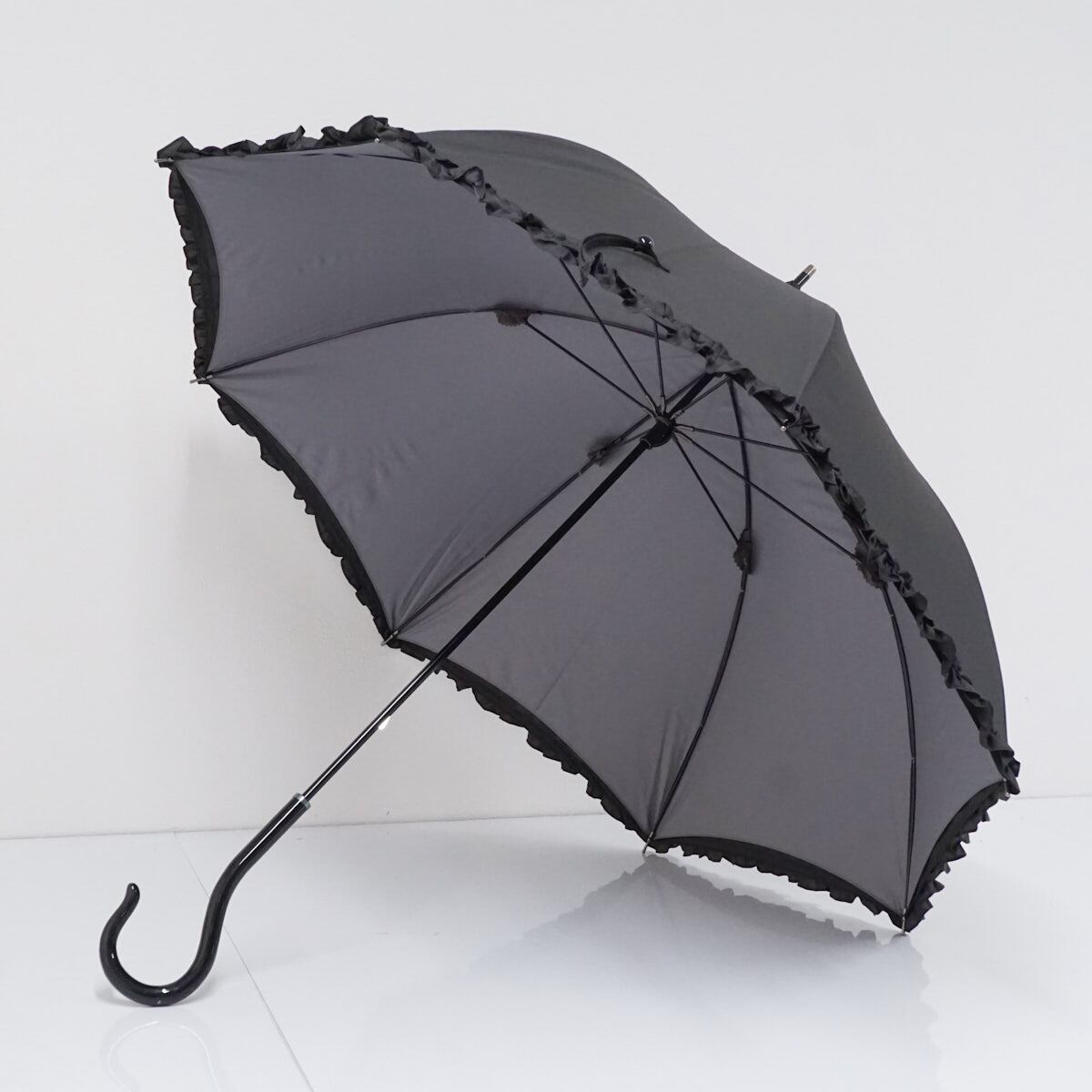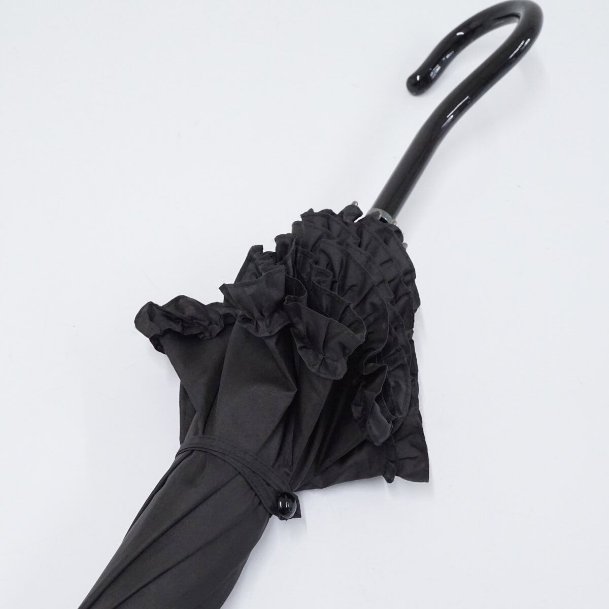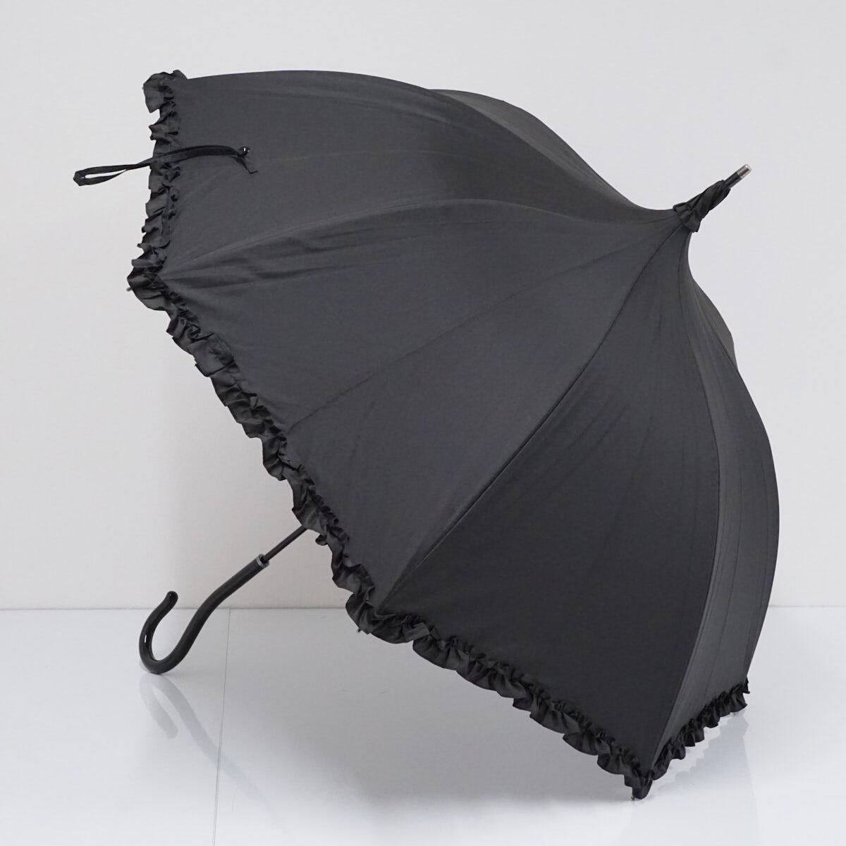 晴雨兼用日傘 Apleberute アプレビュート USED美品 ラルジュロゼ パゴダ ブラック フリル 1級遮光 UVカット 55cm S2983