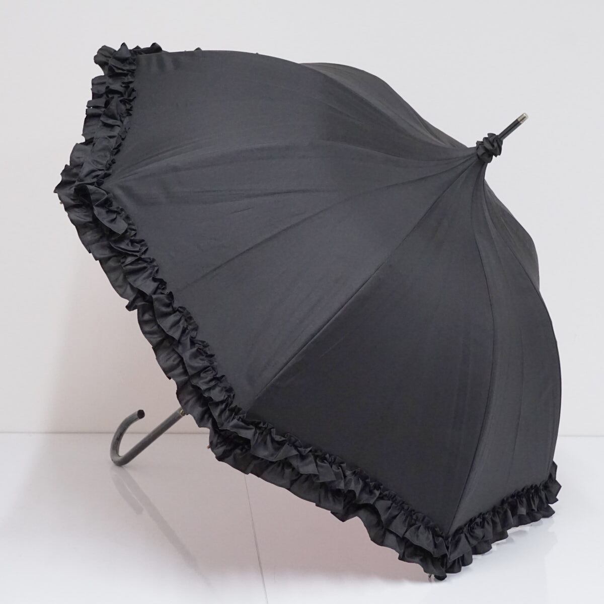 晴雨兼用傘 Lumiebre ルミエーブル USED美品 ボンボン パゴダ ブラック フリル ピンク UVカット ロリィタ 55cm S2984