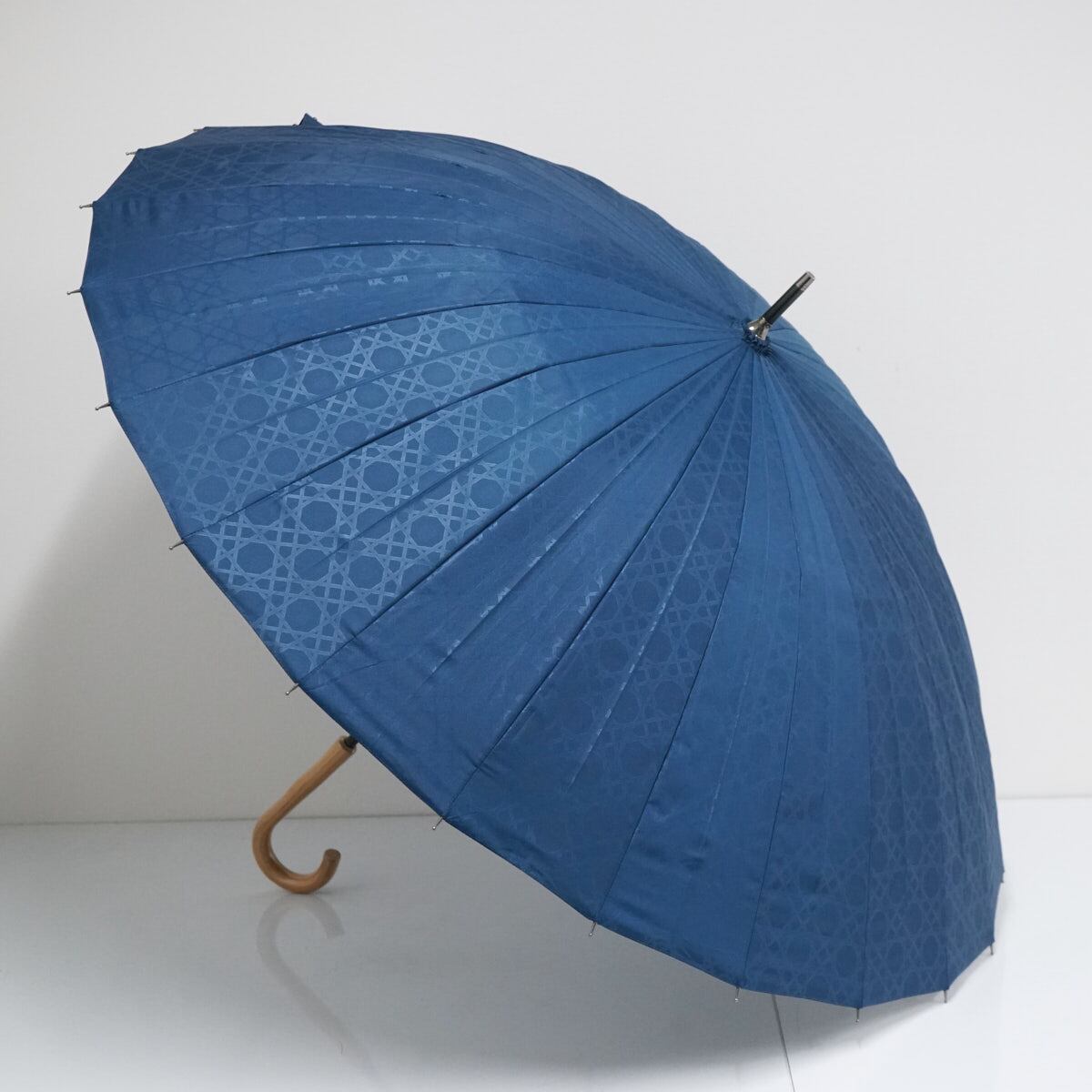 mabu マブ 傘 江戸 24本骨傘 USED美品 紺×八角籠目 江戸切子 和風モダン レトロ 男女兼用 UVカット グラス骨 60cm A3212