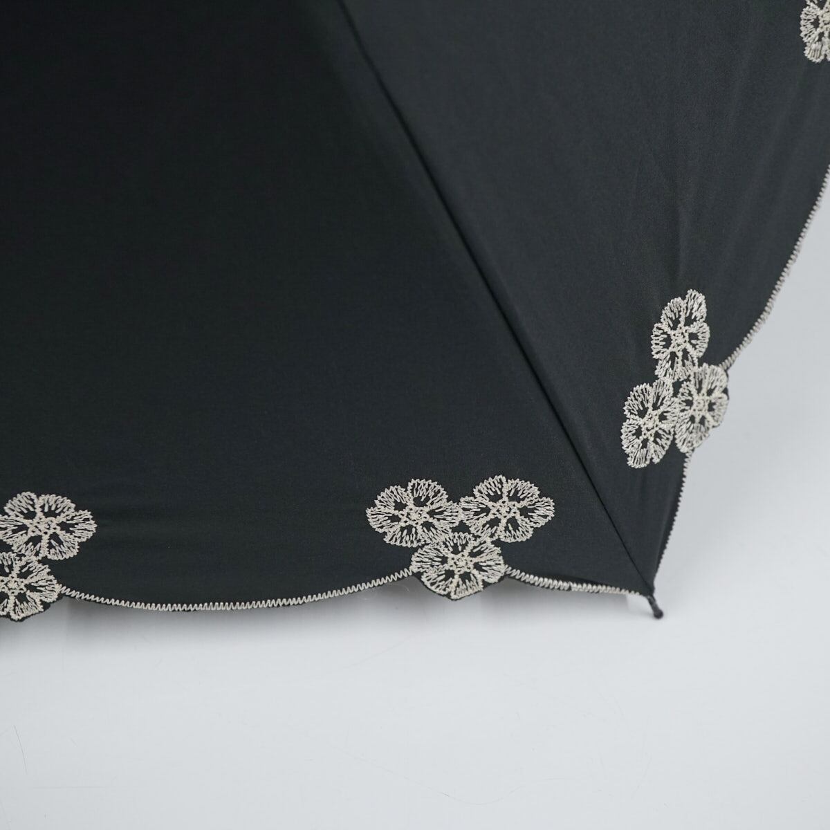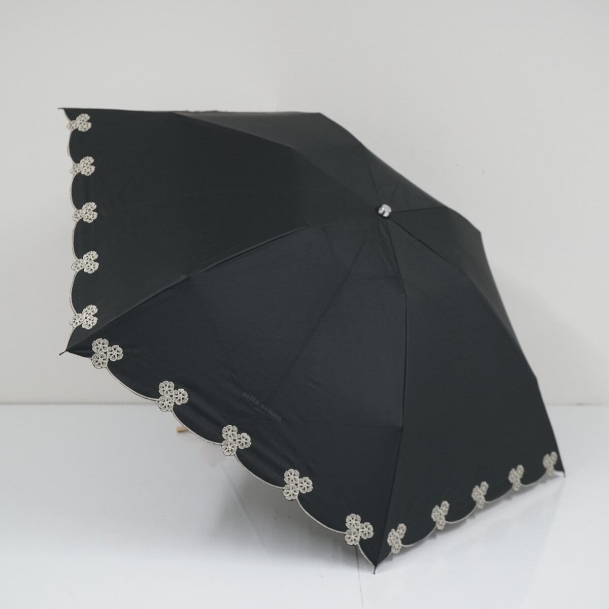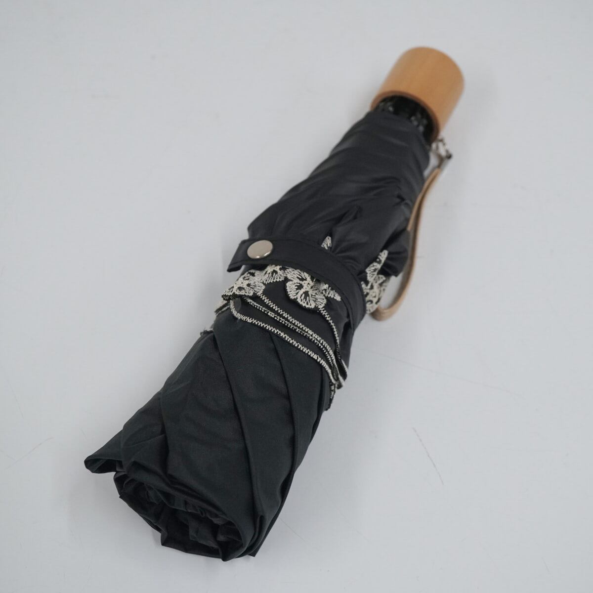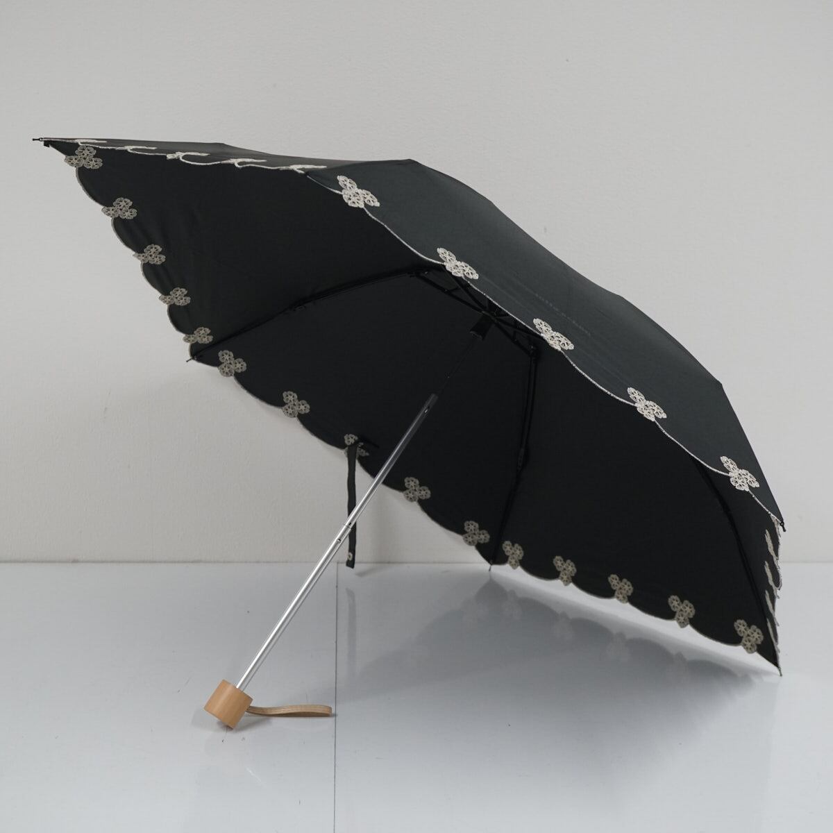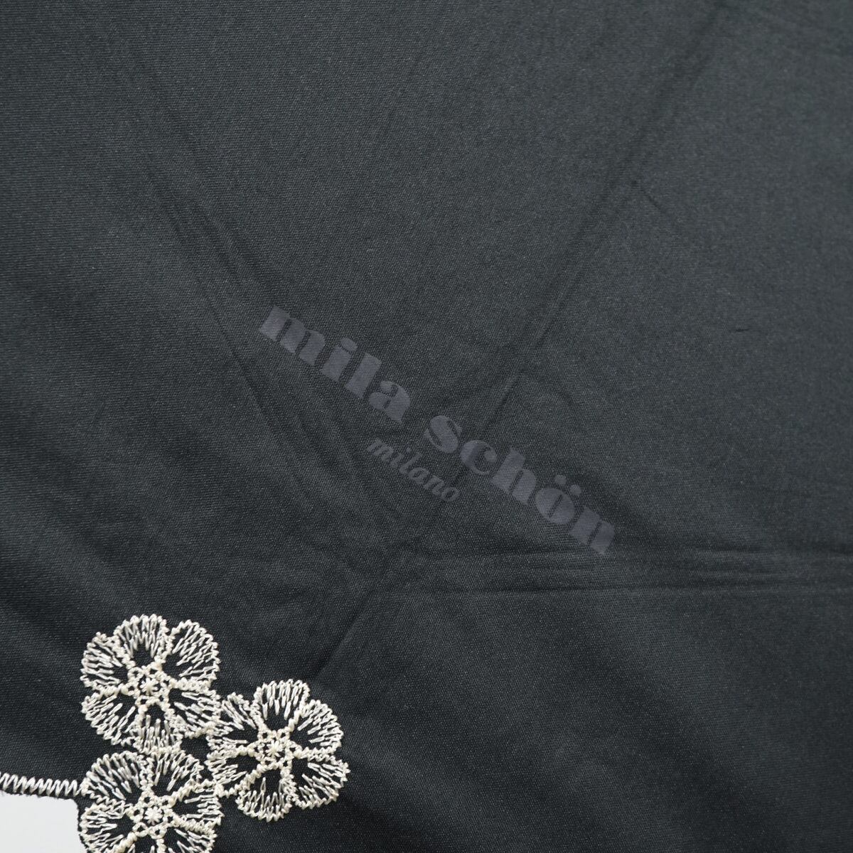 折りたたみ日傘 mila schon ミラショーン USED品 晴雨兼用 ブラック 刺繍 フラワー ロゴプリント UV 50cm FA9192