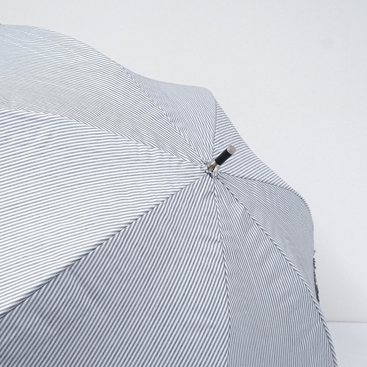 細ストライプ柄が爽やかな雰囲気のパラソルです。