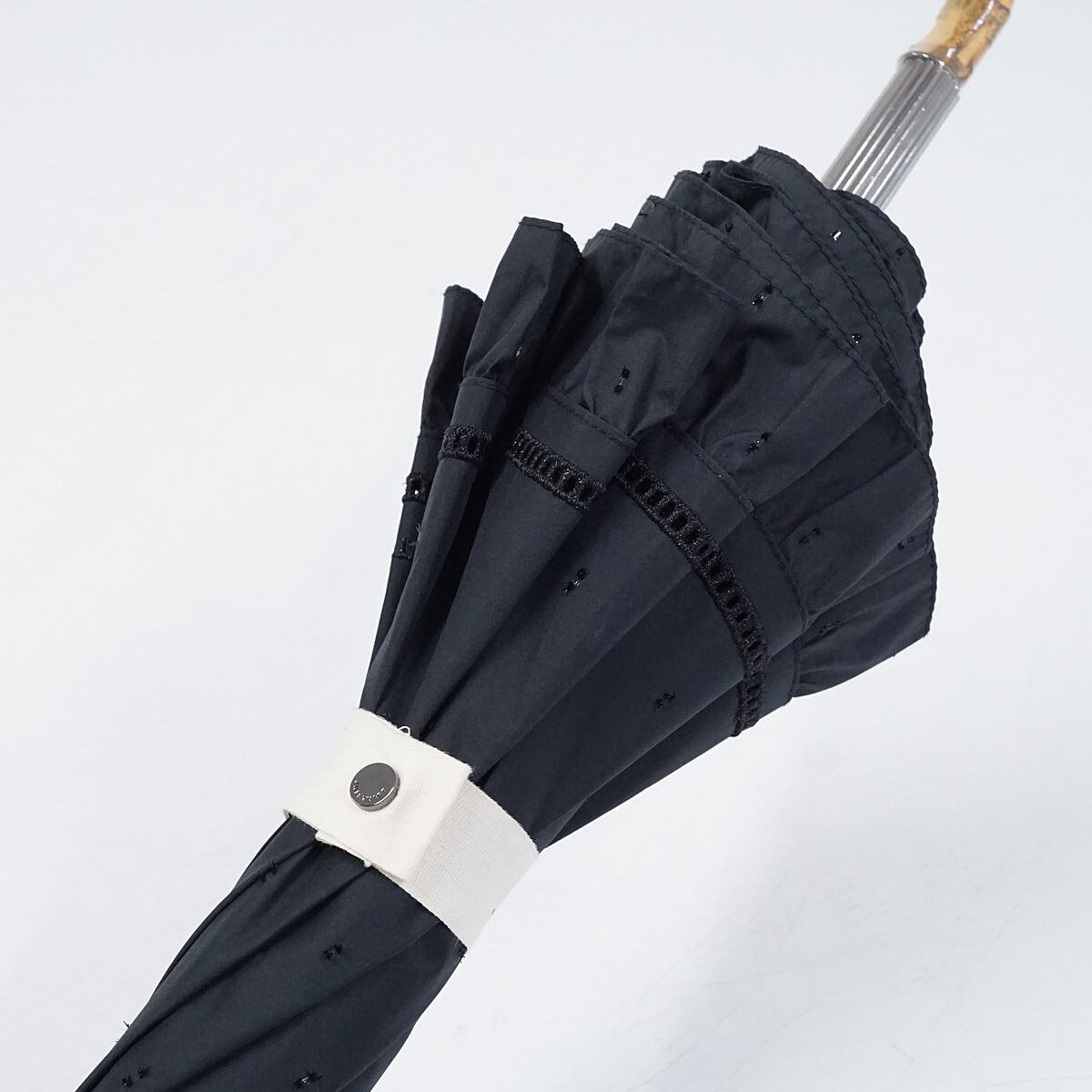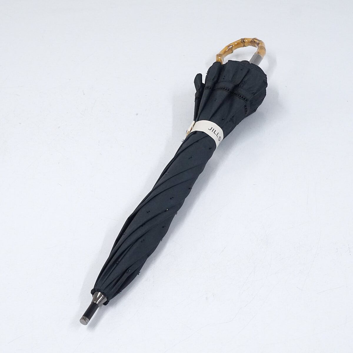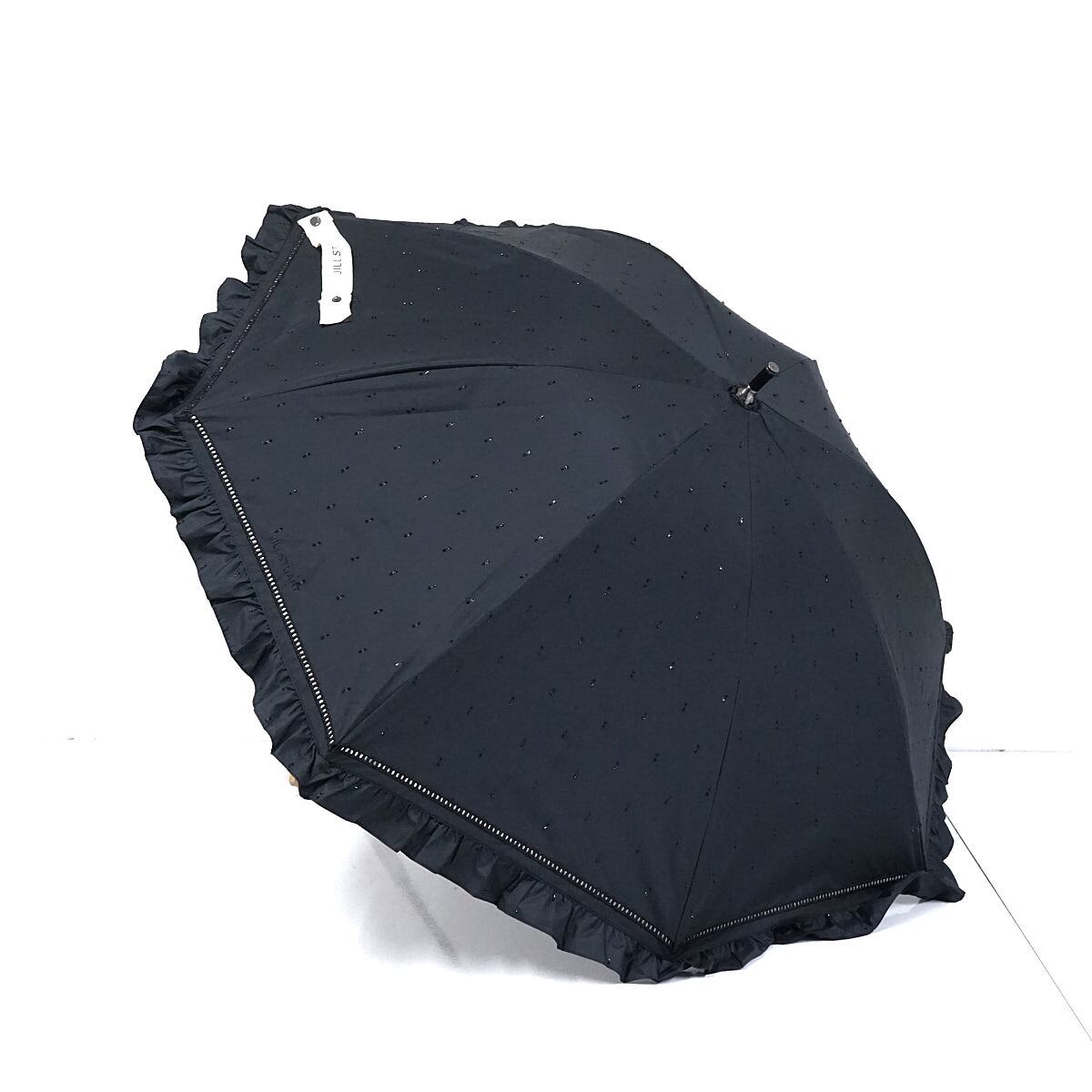 日傘 JILLSTUART ジルスチュアート USED美品 フリル ラメ ブラック 晴雨兼用 寒竹手元 遮光 遮熱 UV 47cm A3000