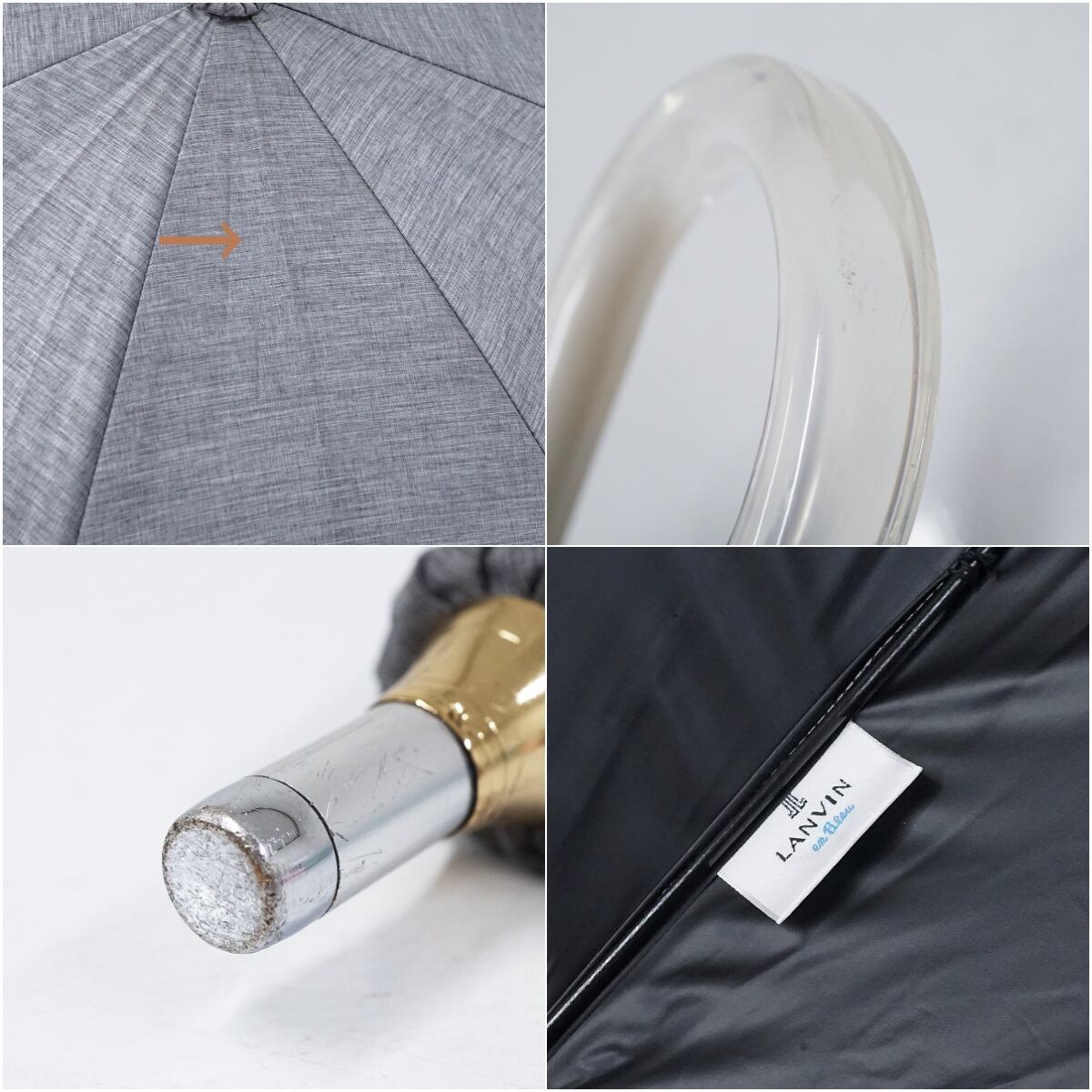 晴雨兼用日傘 LANVIN en Bleu ランバンオンブルー USED美品 グレー系 グログランフリル リボン UV 遮光 グラス骨 50cm S3003