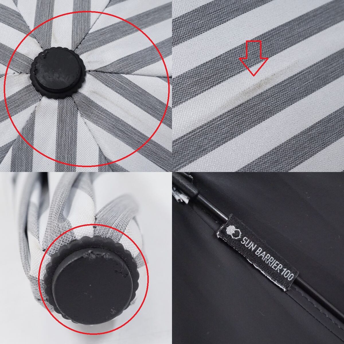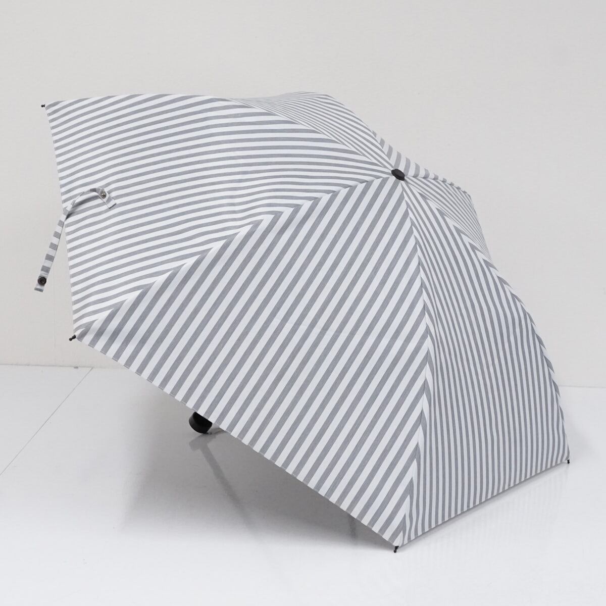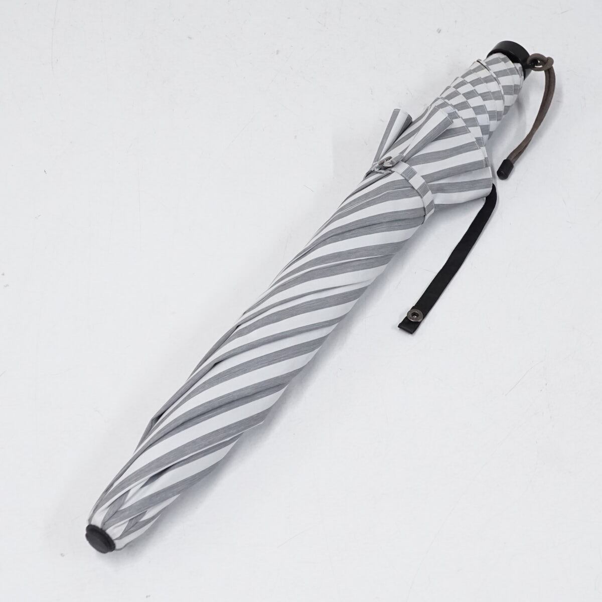 サンバリア100 完全遮光折日傘 USED美品 2段折 コンパクト ストライプ グレー 折りたたみ日傘 UVカット 紫外線対策 47cm FS9203