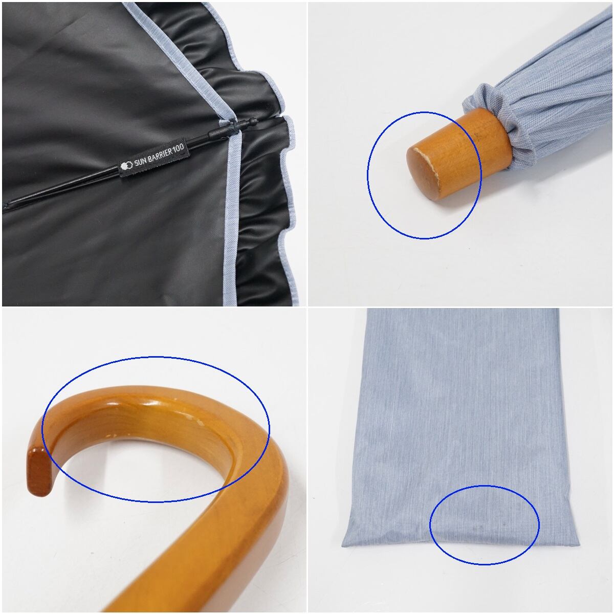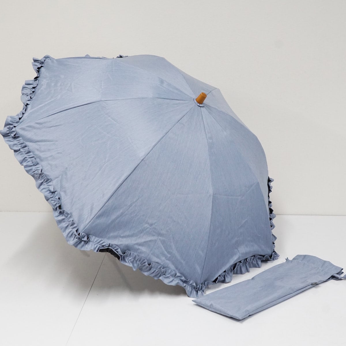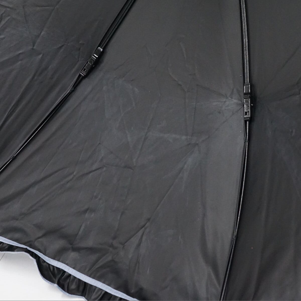 サンバリア100 完全遮光折日傘 USED品 2段 フリル フロストブルー 折りたたみ傘 UV 遮熱 50cm FS9485