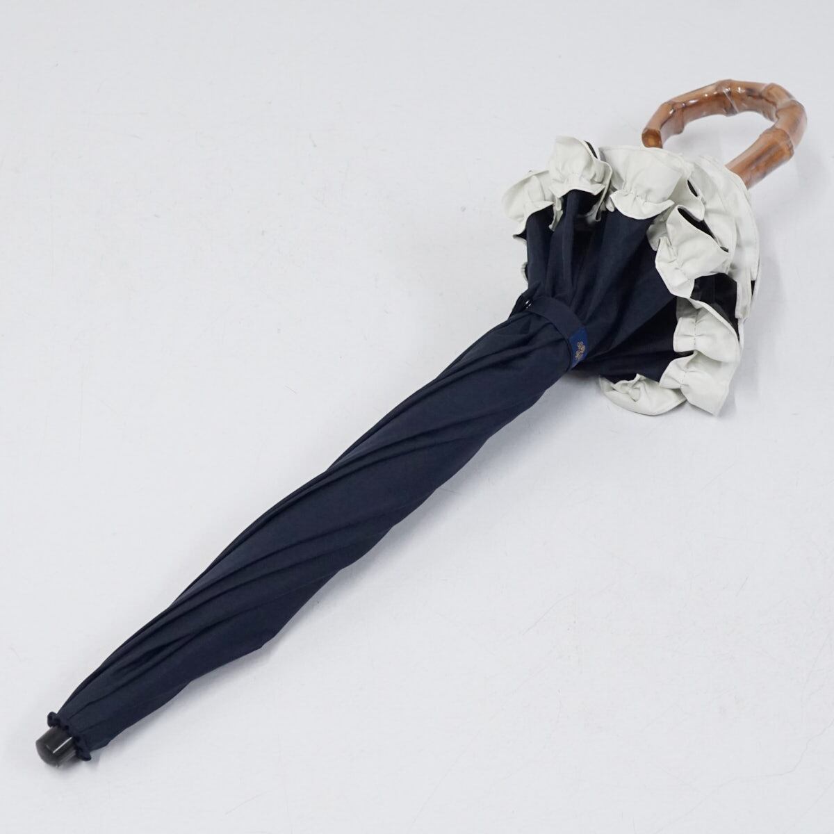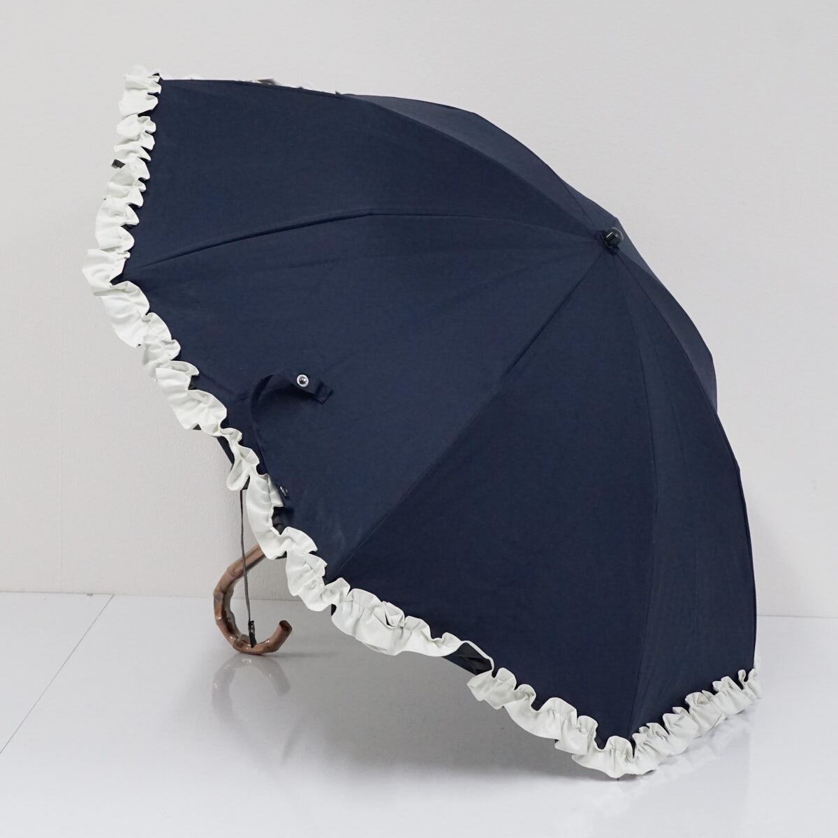 日傘 芦屋ロサブラン 完全遮光折日傘 USED美品 2段折 フリル ネイビー UV 遮熱 折りたたみ傘 50cm FS9212