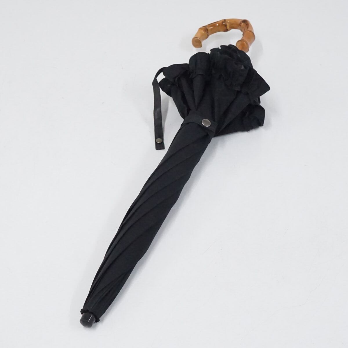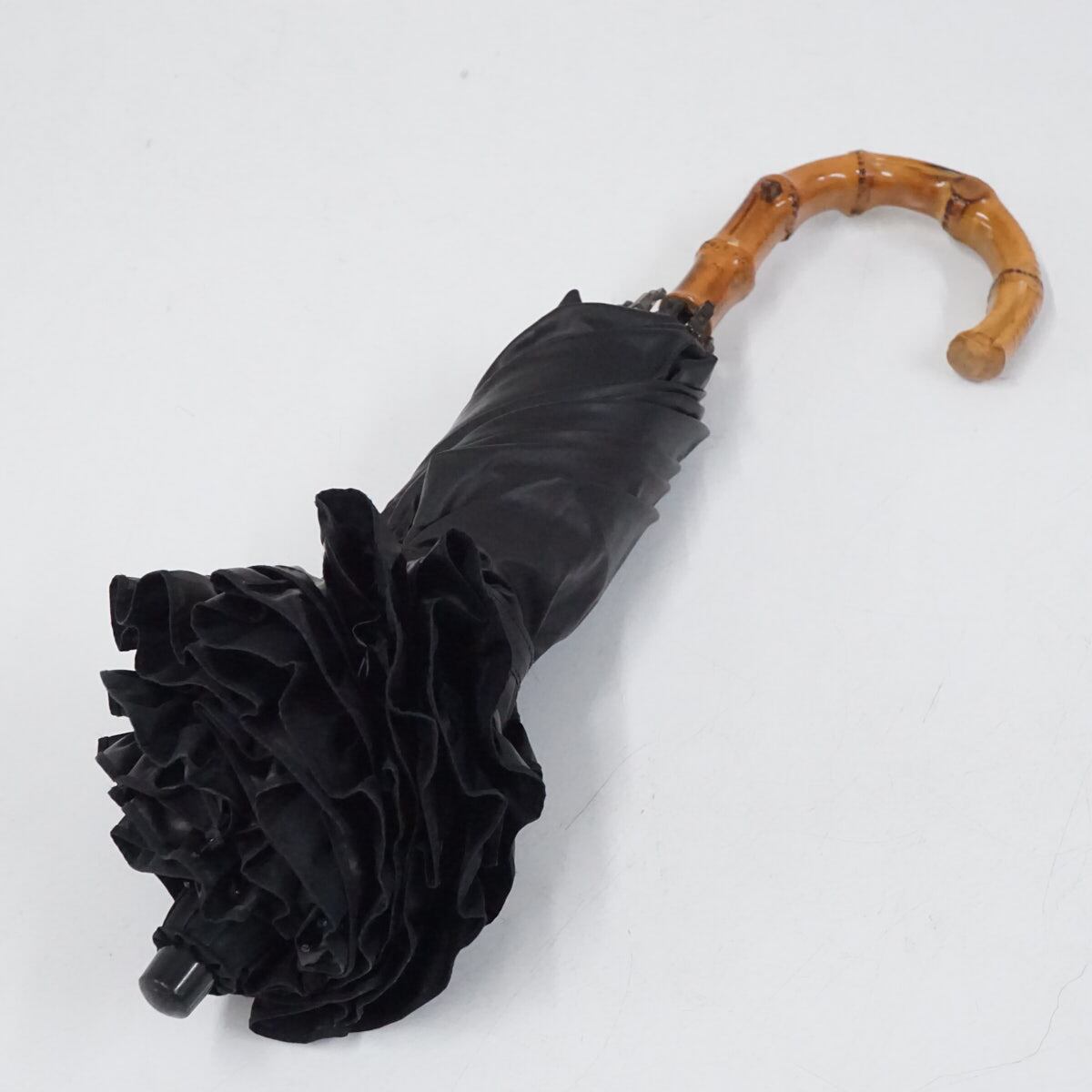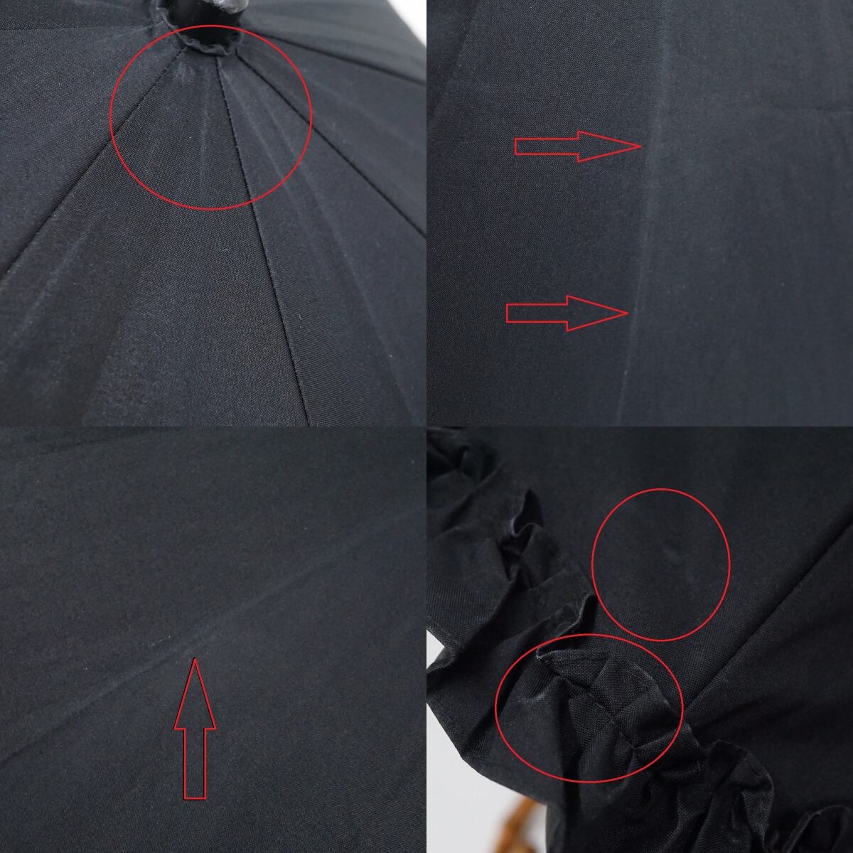 芦屋ロサブラン 完全遮光 折りたたみ日傘 USED美品 2段折 フリル ブラック 寒竹手元 UVカット 遮熱 折りたたみ 50cm FS9215