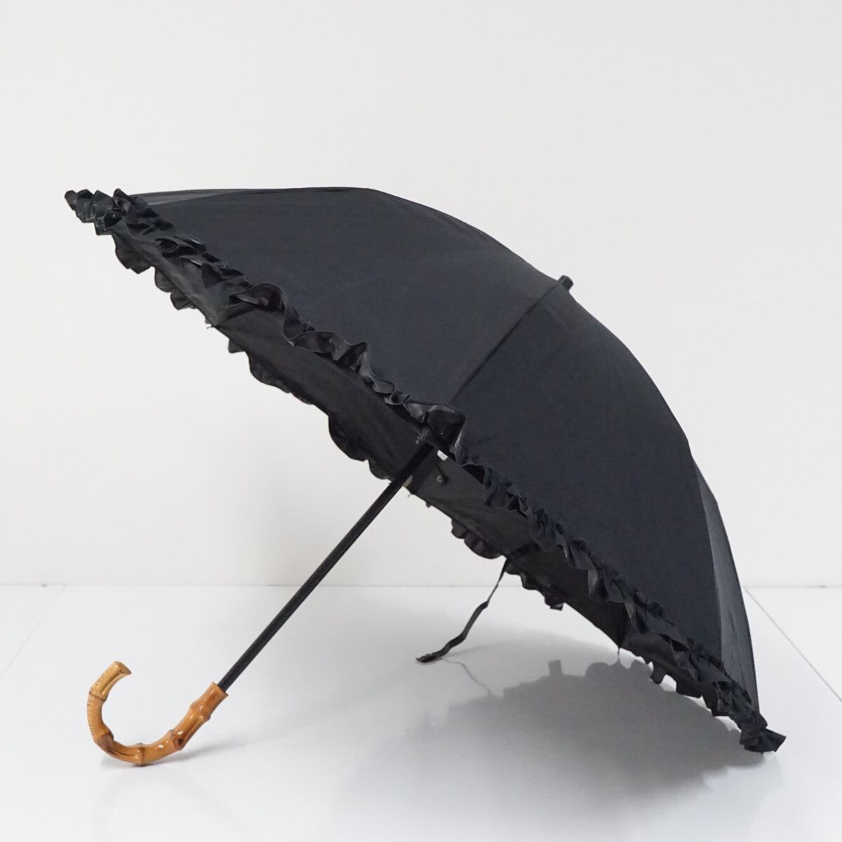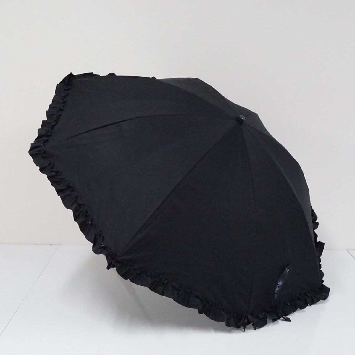 こちらはたたみやすく使いやすい2段折タイプで、ブラックの生地にフリルの縁取りが可愛らしいデザインです。