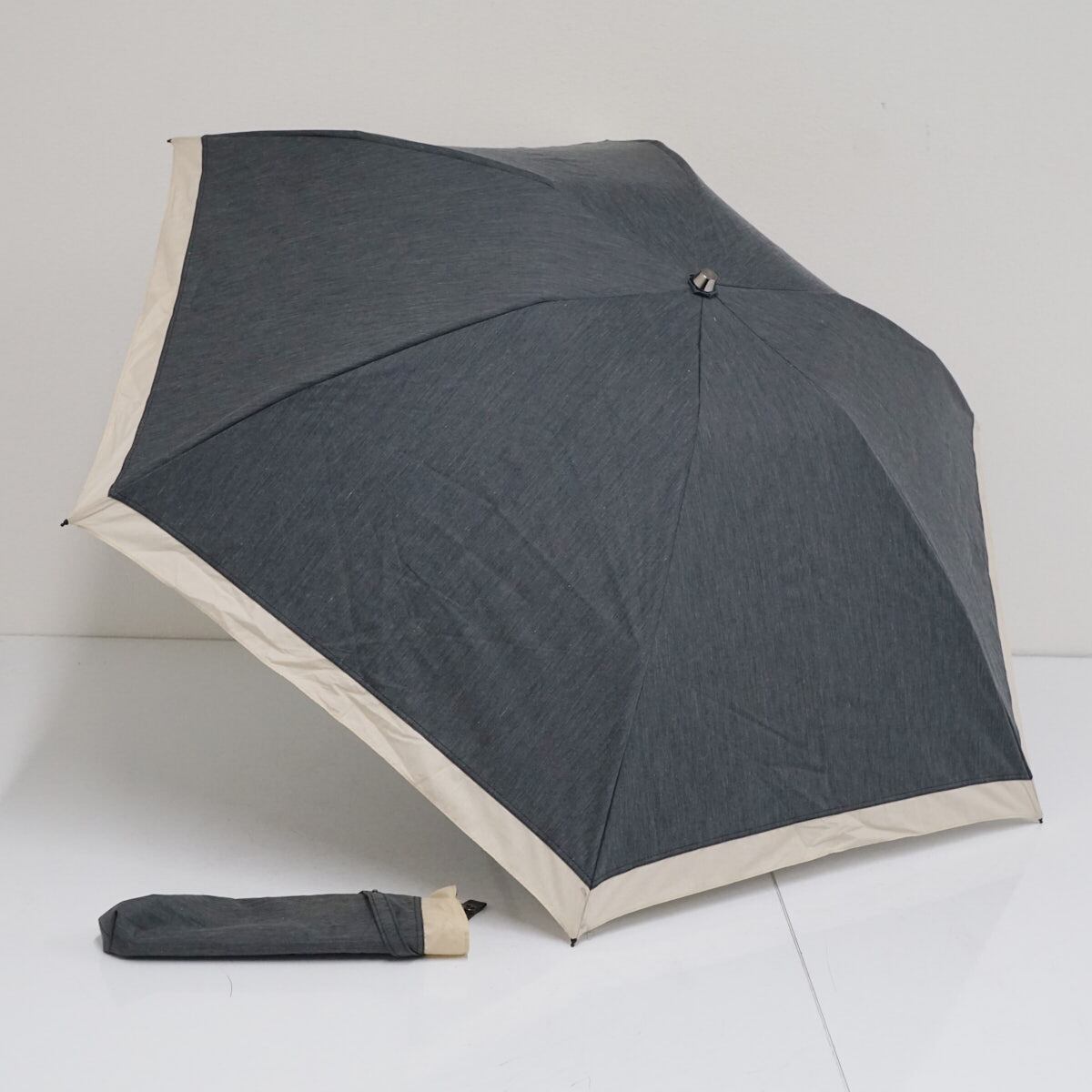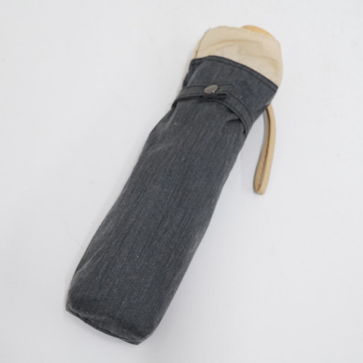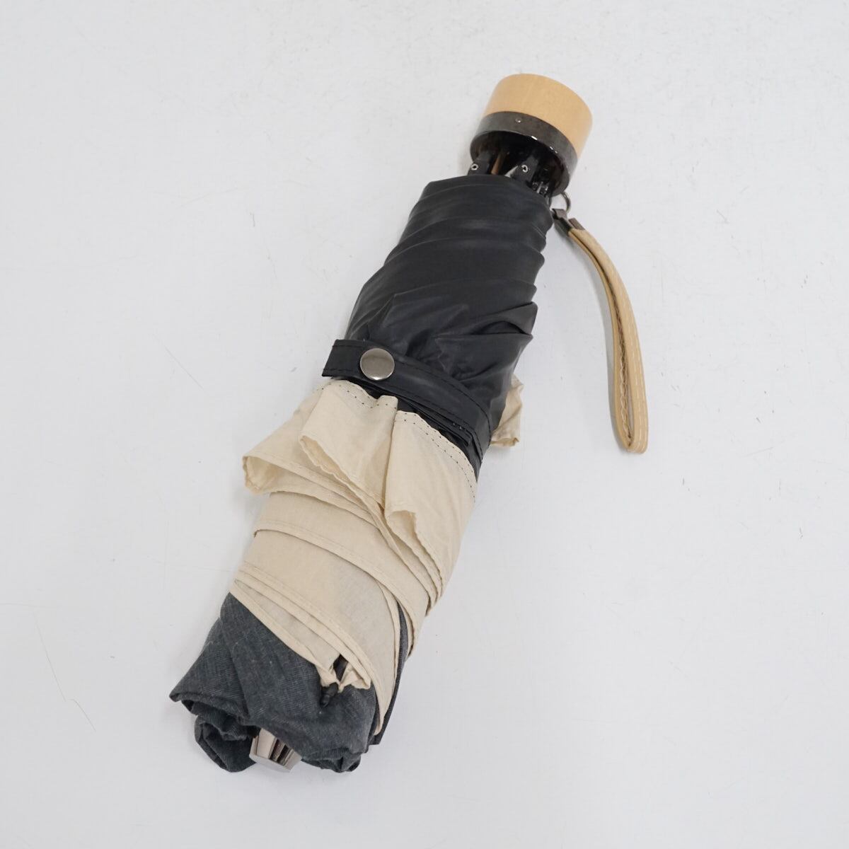 ダークグレー地にライトベージュ色で外周にアクセントをつけた、シンプルな折りたたみパラソルです。