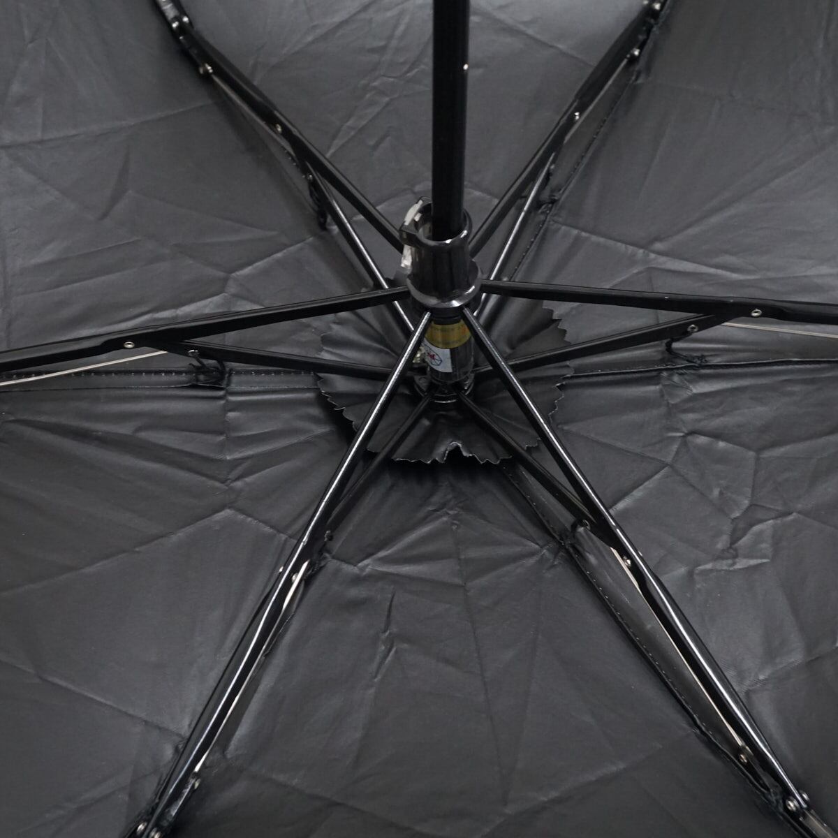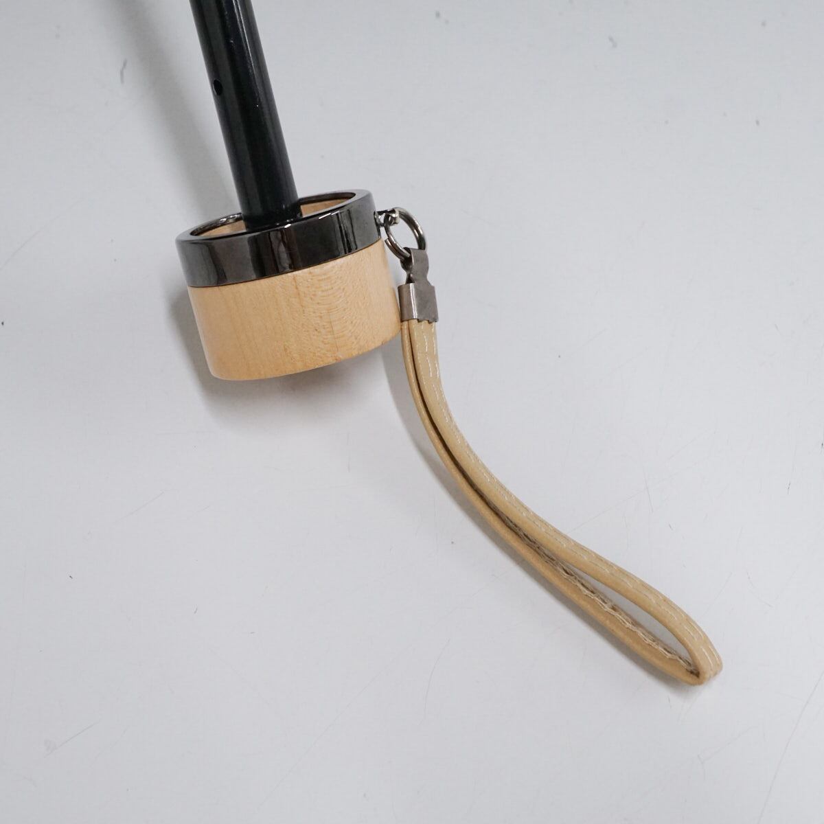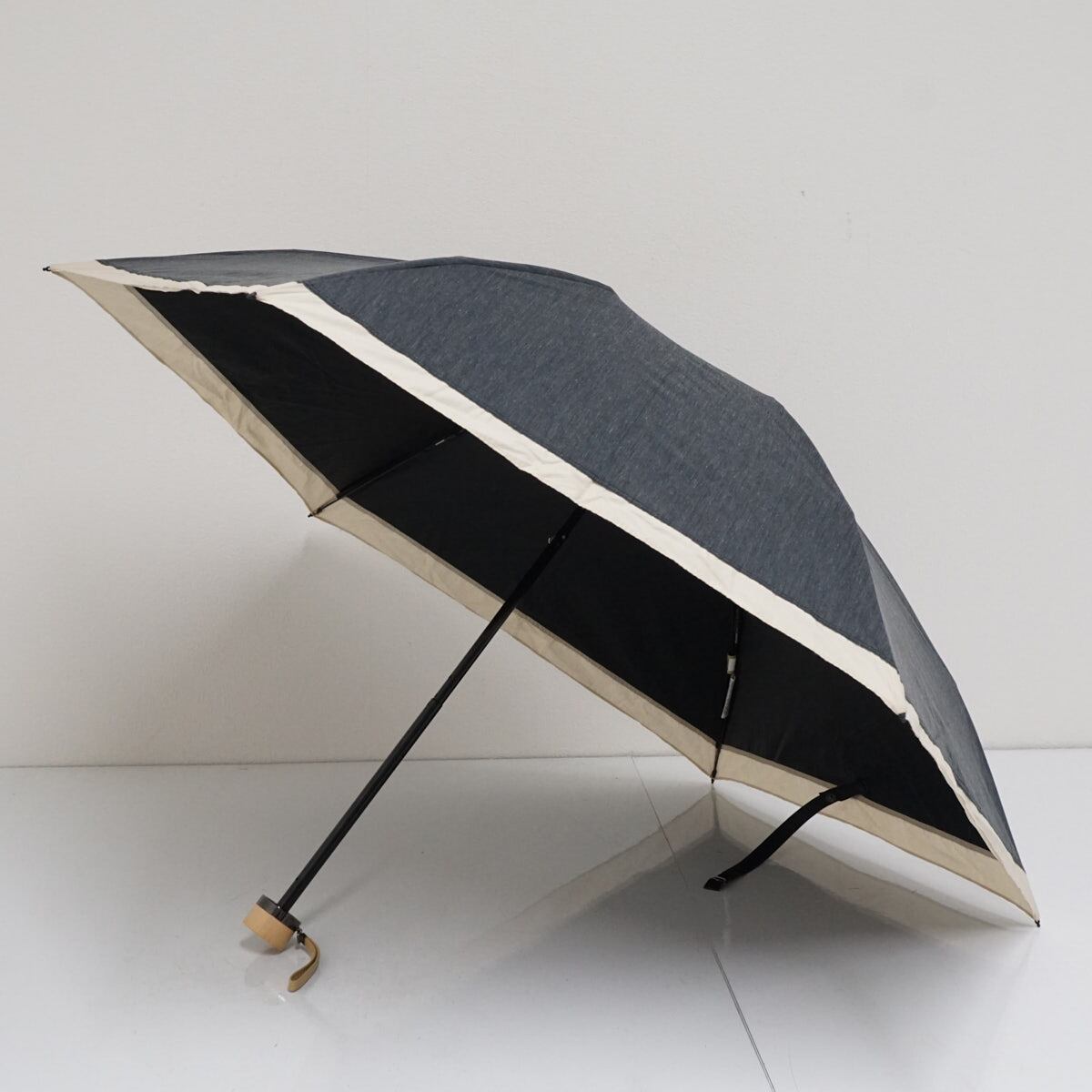 ダークグレー地にライトベージュ色で外周にアクセントをつけた、シンプルな折りたたみパラソルです。