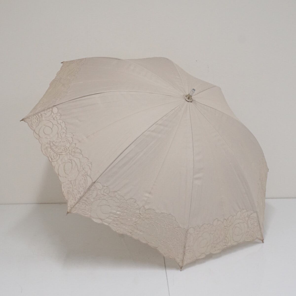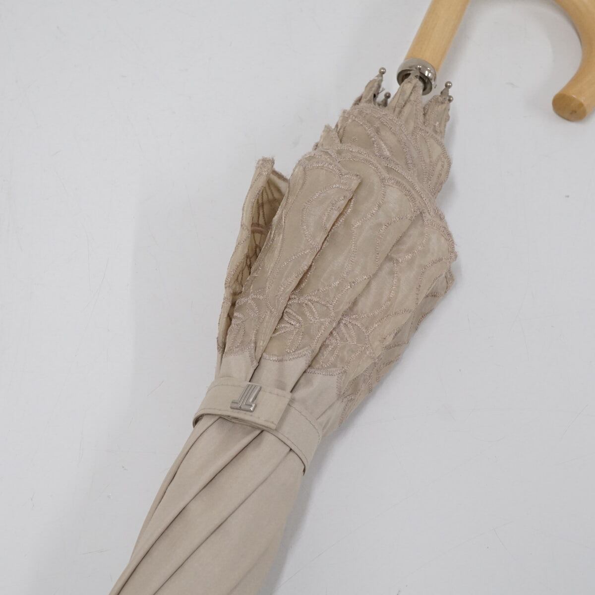 日傘 LANVIN COLLECTION ランバンコレクション USED品 晴雨兼用 オーガンジー フラワー刺繍 ベージュ UV 50cm S3016