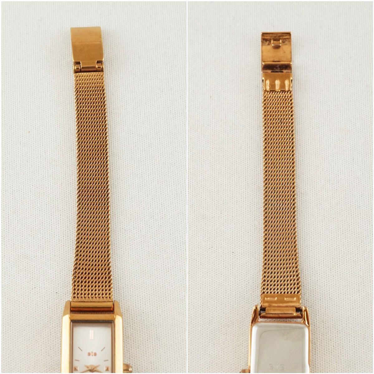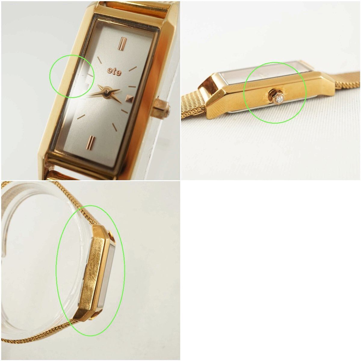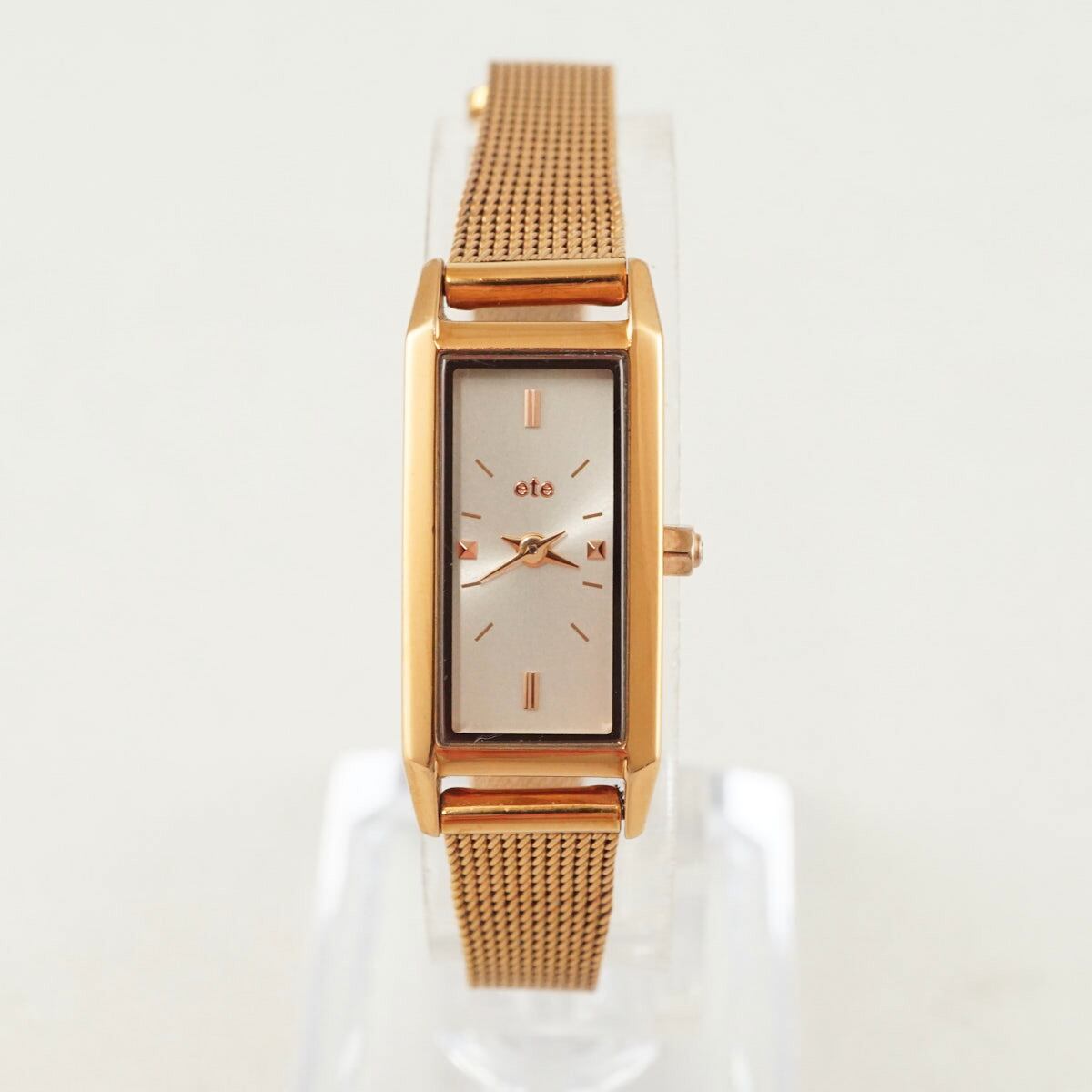 ete エテ 腕時計 USED美品 レクタングルフェイス ウォッチ メッシュベルト レディース クォーツ 電池交換済み 完動品 X7242
