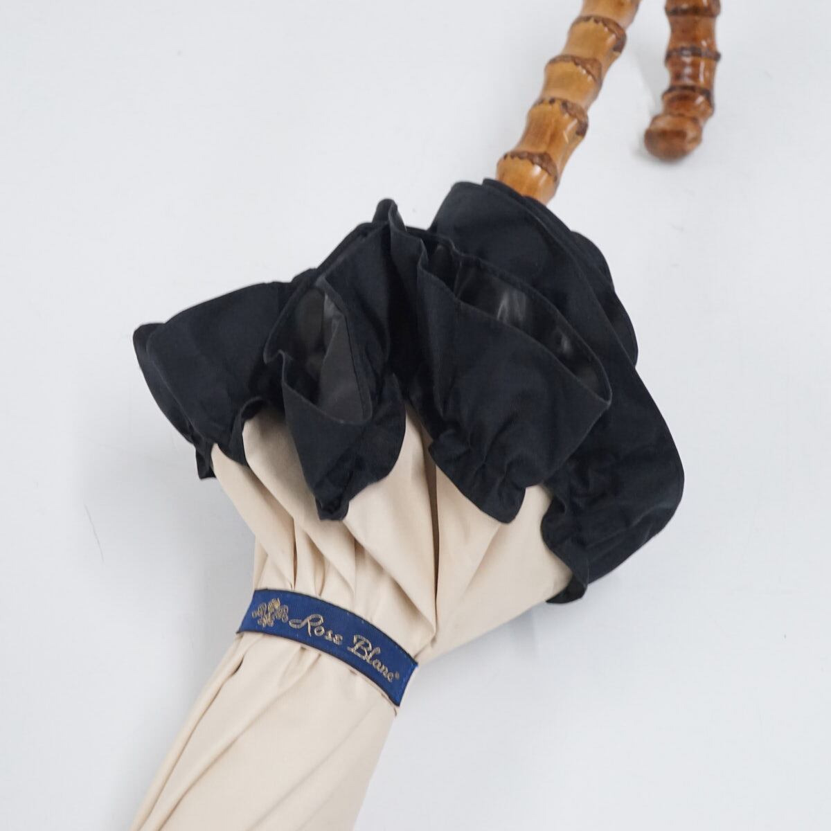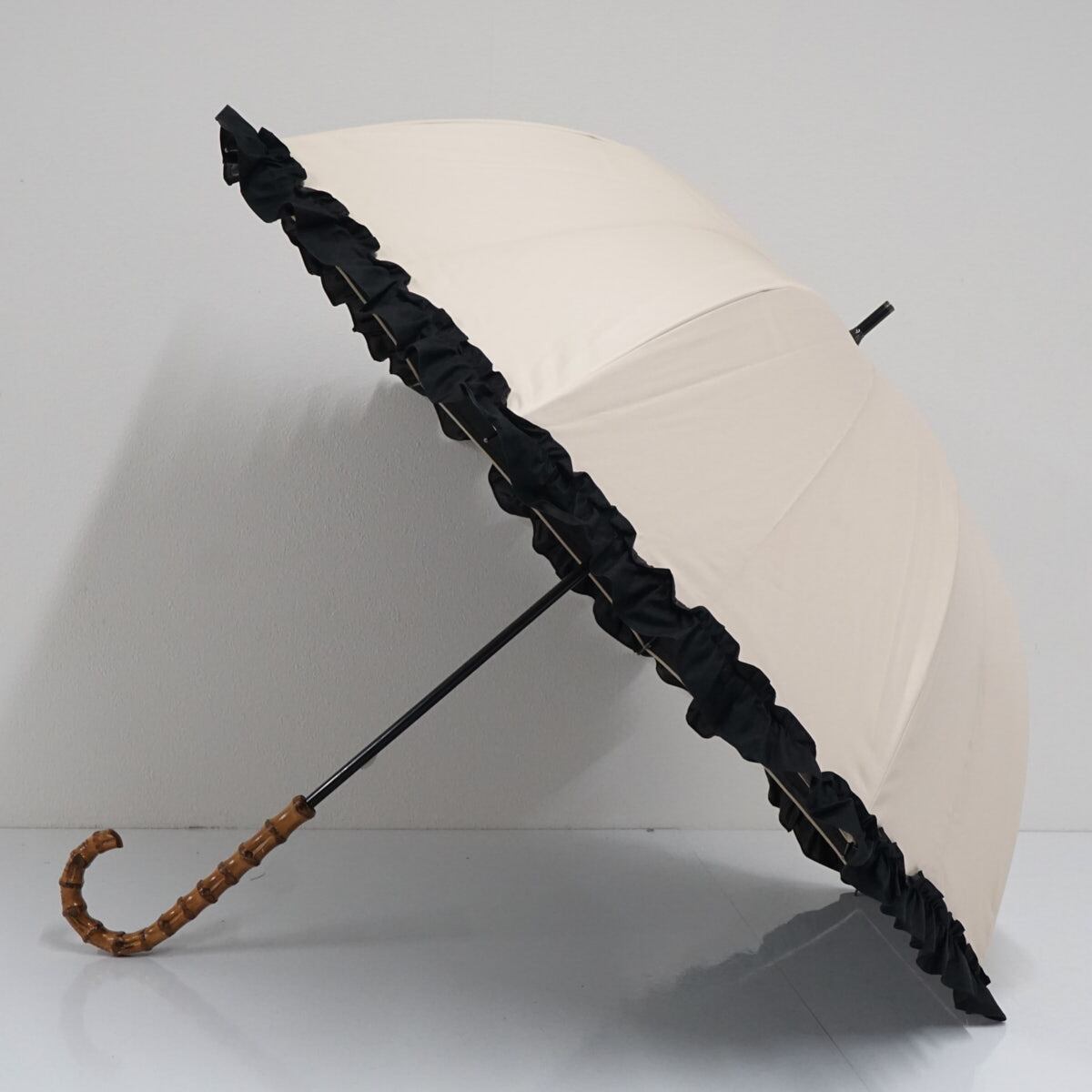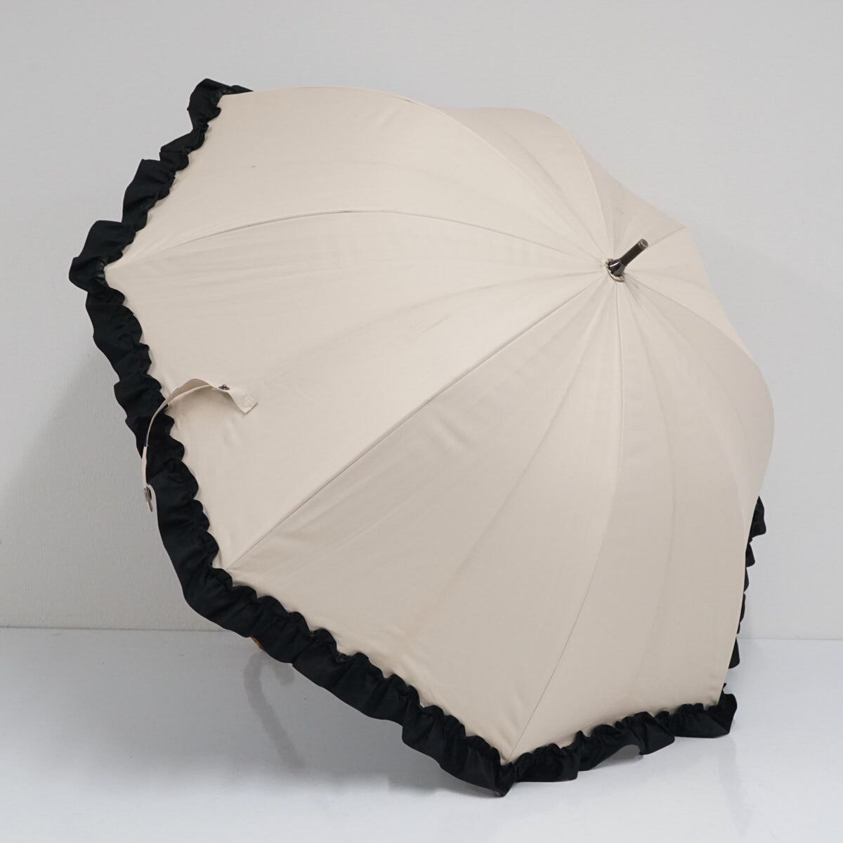 完全遮光日傘 芦屋ロサブラン USED品 ベージュ ブラック ミドルサイズ 55cm シングルフリル S3034