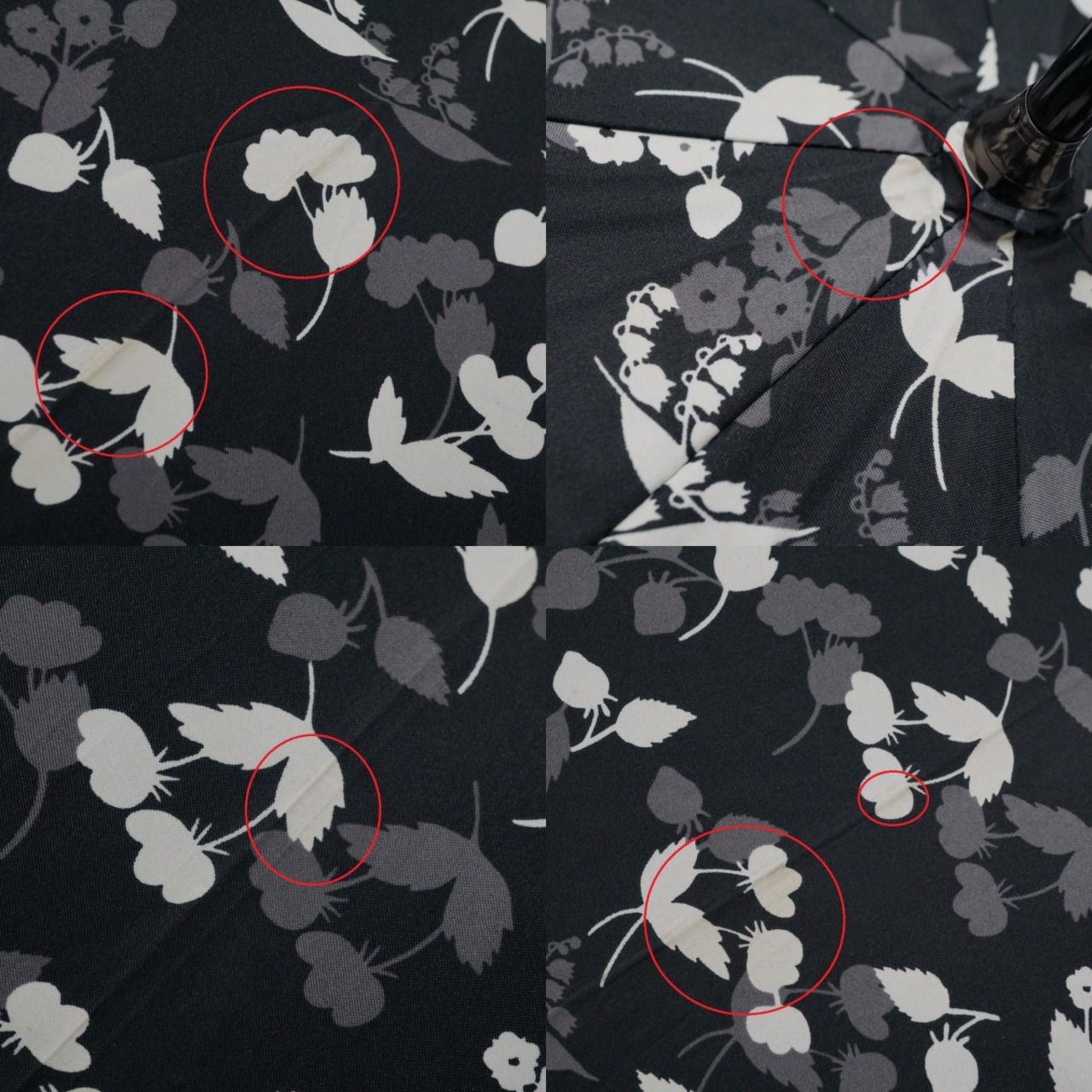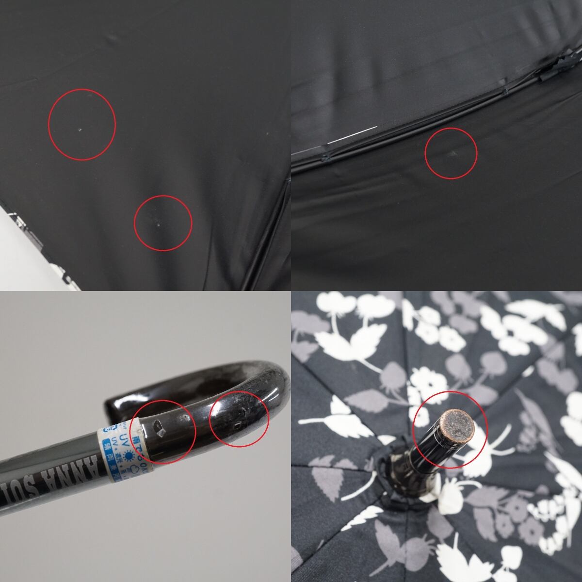 晴雨兼用日傘 ANNA SUI アナスイ USED品 フラワー いちご 遮光 撥水 UV グラス骨 ブラック 50cm S3025