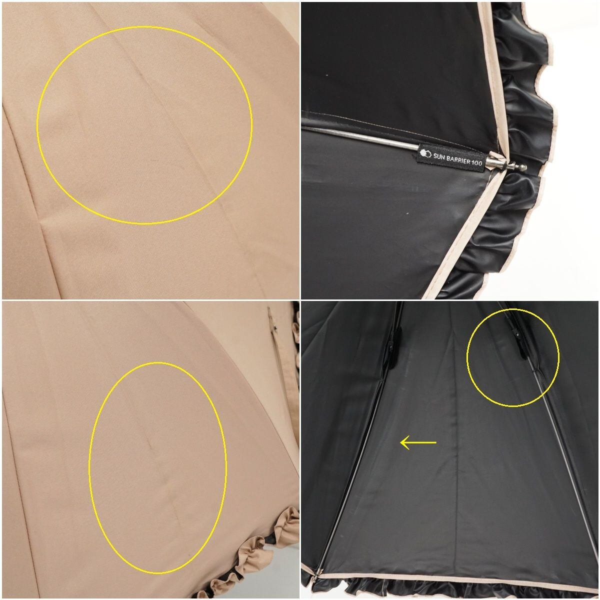 サンバリア100 完全遮光日傘 USED品 ピンク フリル Sサイズ UVカット カーボンフレーム 遮熱 47cm S3556