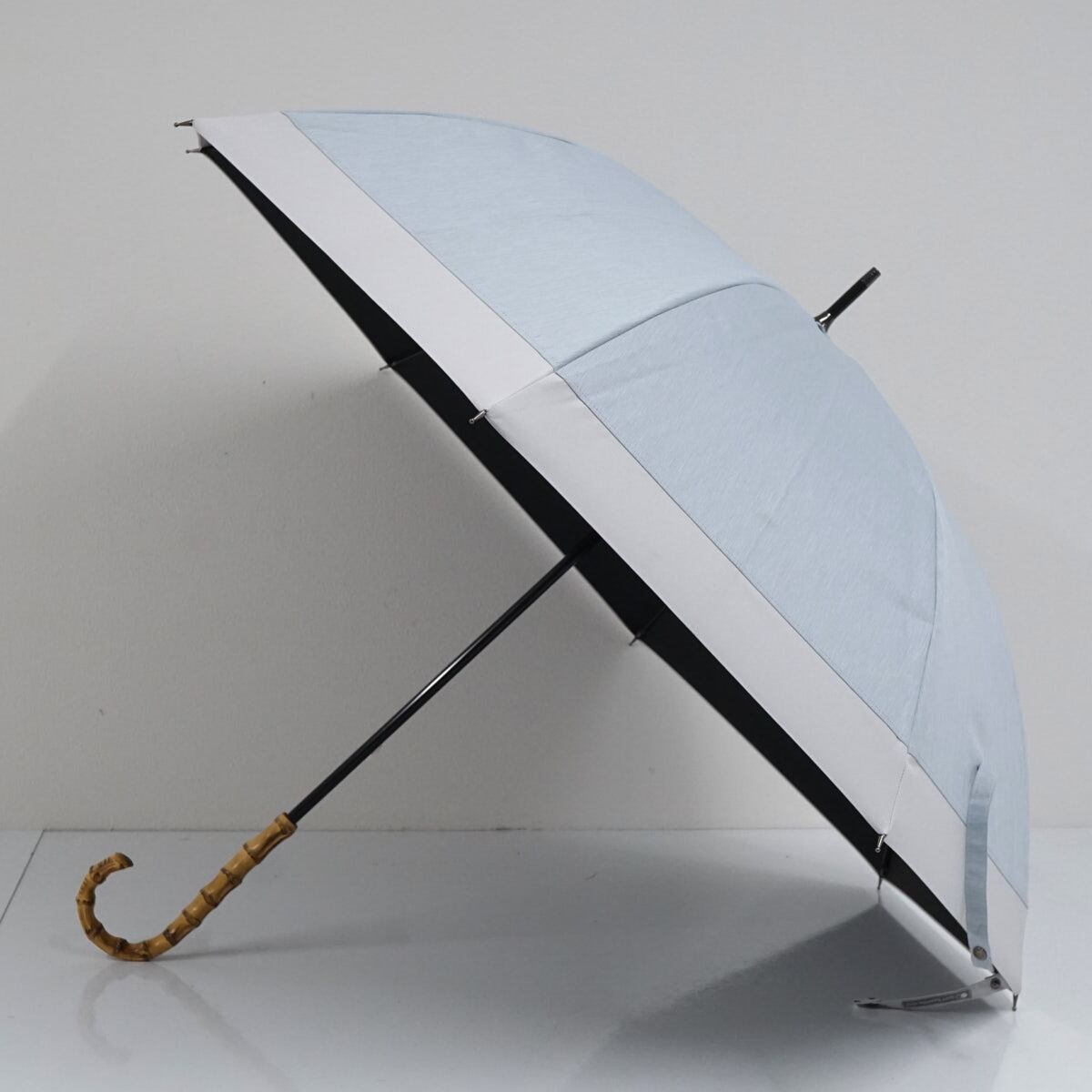 日傘 サンバリア100 完全遮光日傘 USED品 Mサイズ ブルー コンビmoku 寒竹手元 遮光 遮熱 UV 55cm S3039
