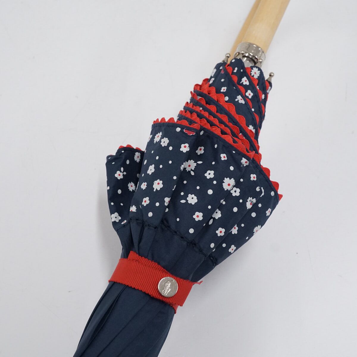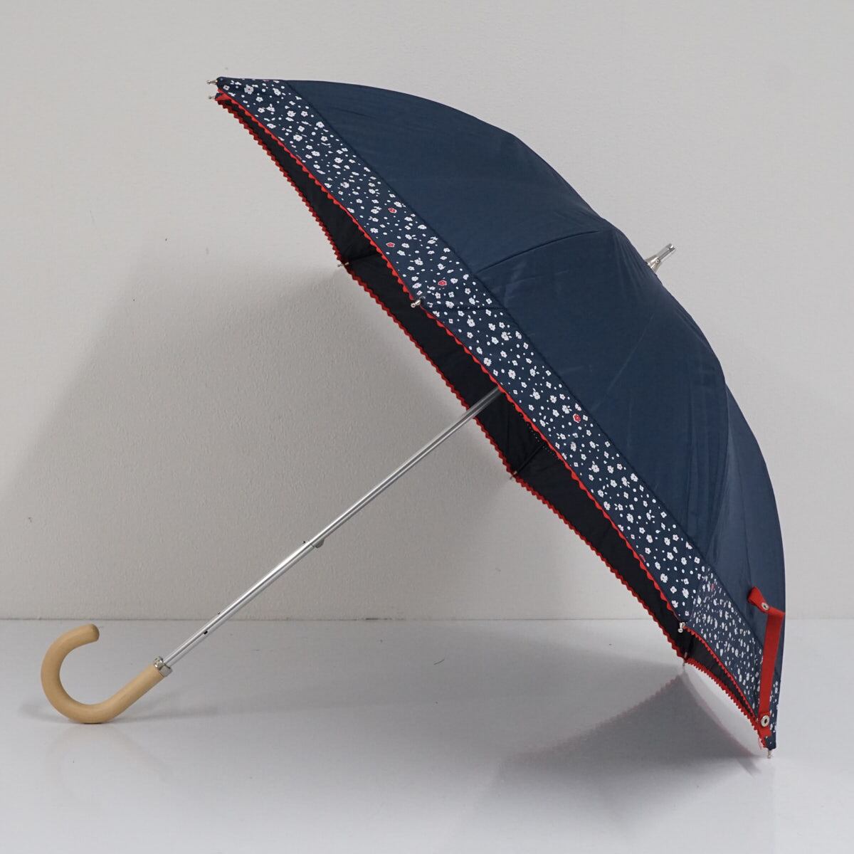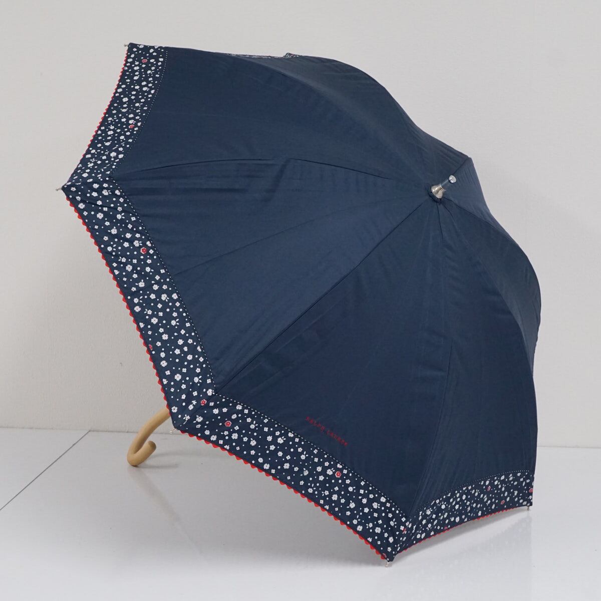 晴雨兼用日傘 Polo Ralph Lauren ポロラルフローレン USED美品 ロゴ刺繍 花 フラワー ネイビー UV 遮光 47cm A3042