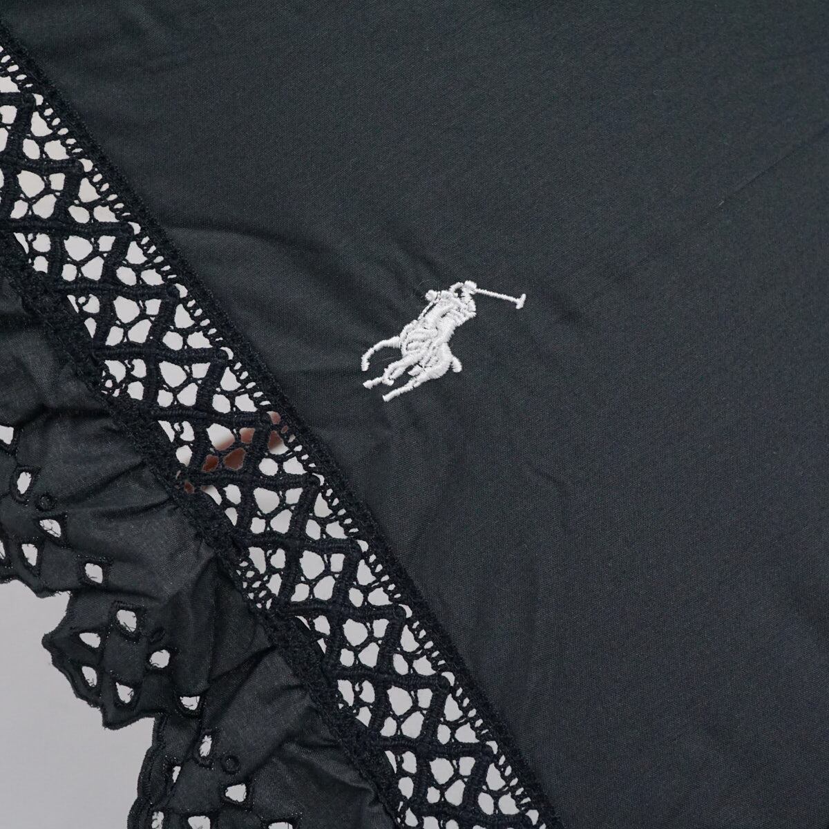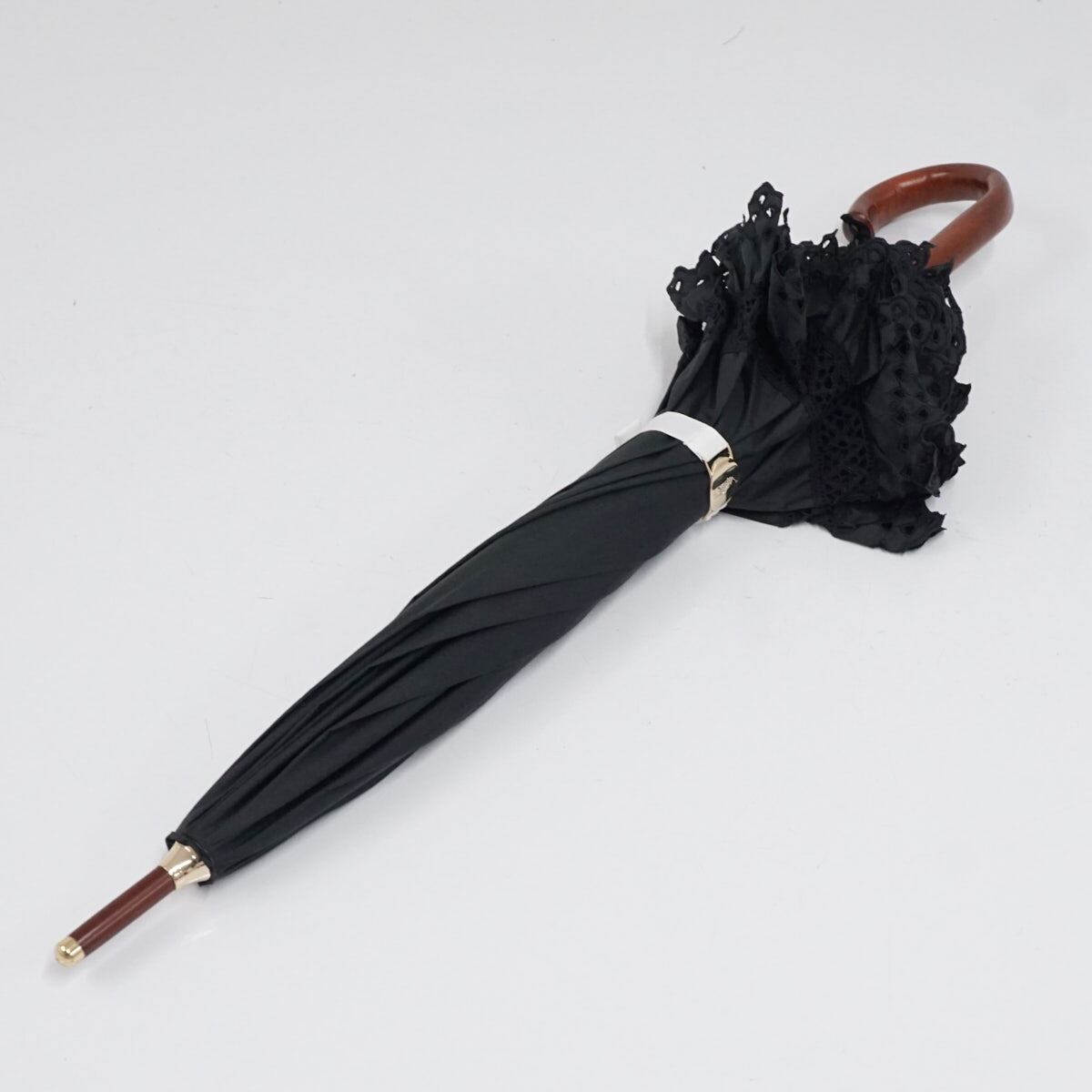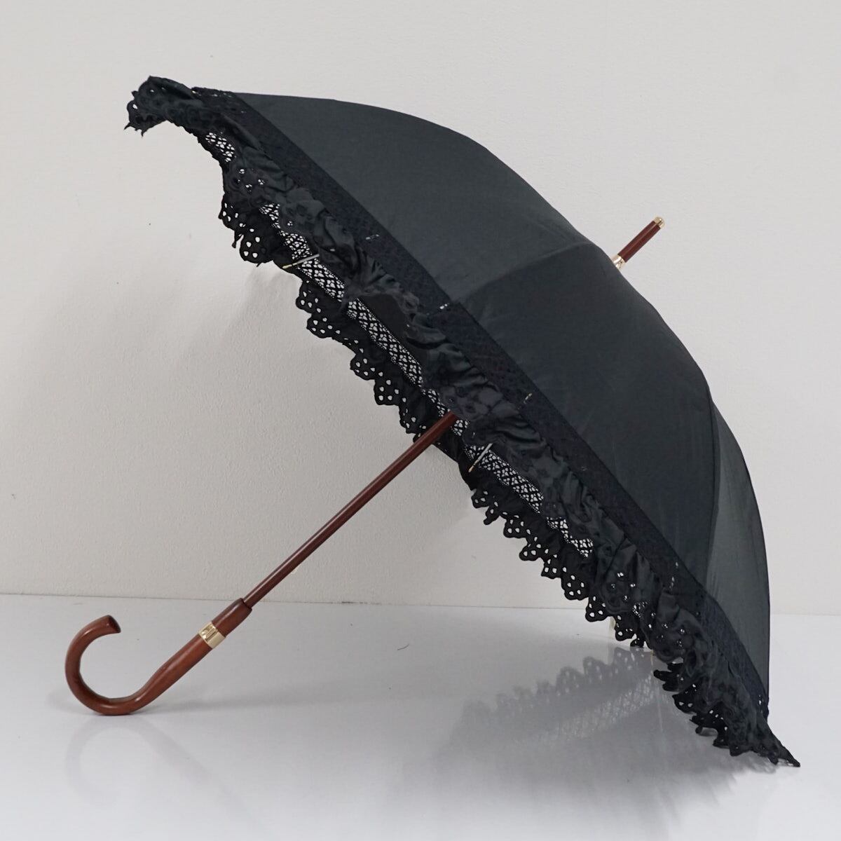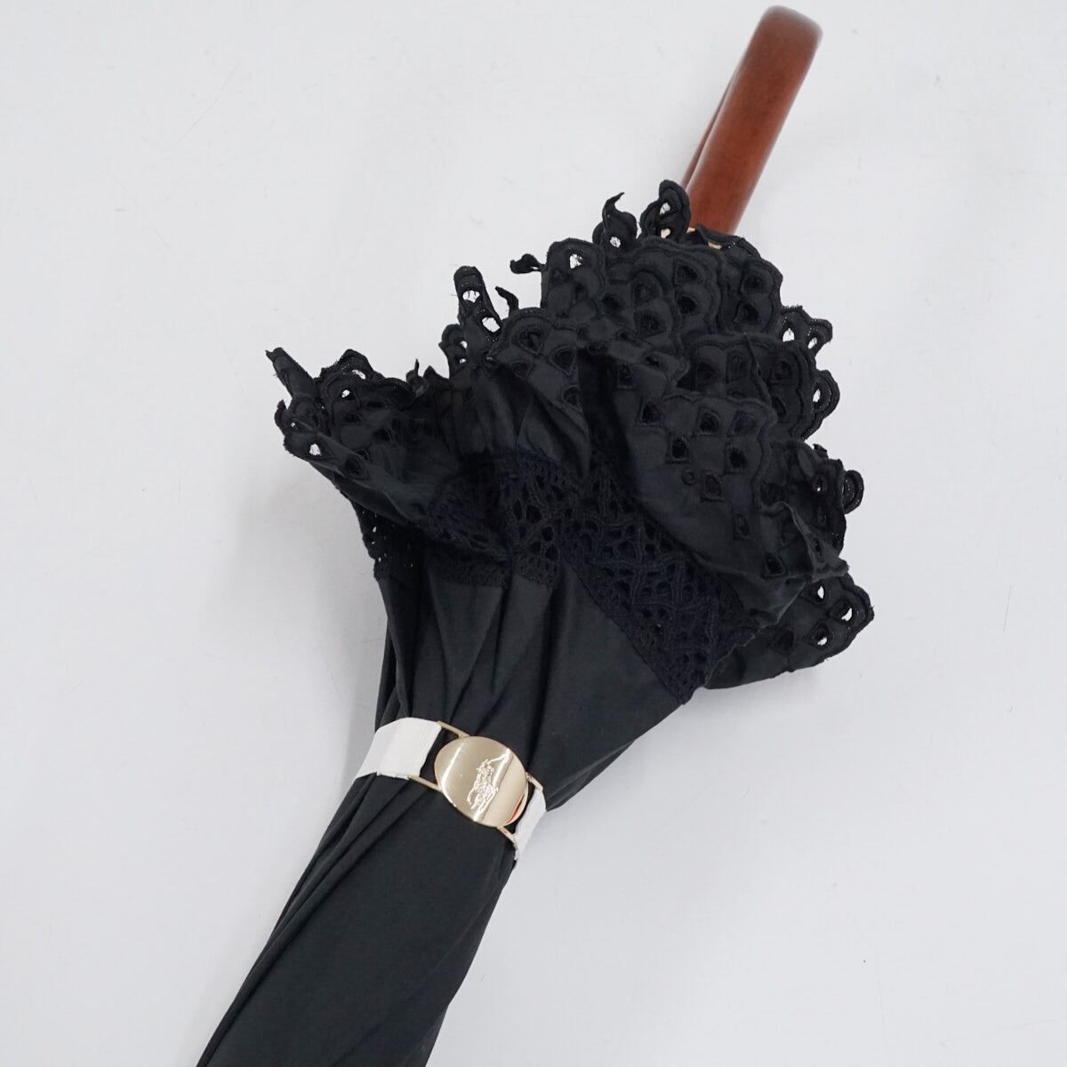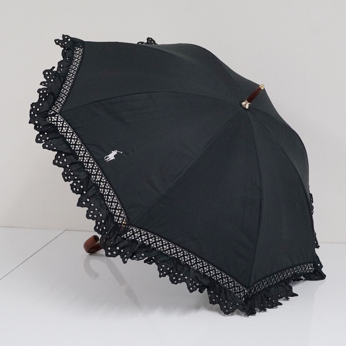 日傘 POLO RALPH LAUREN ポロラルフローレン USED美品 晴雨兼用 ブラック レース ポニー刺繍 木製手元 47cm S3043