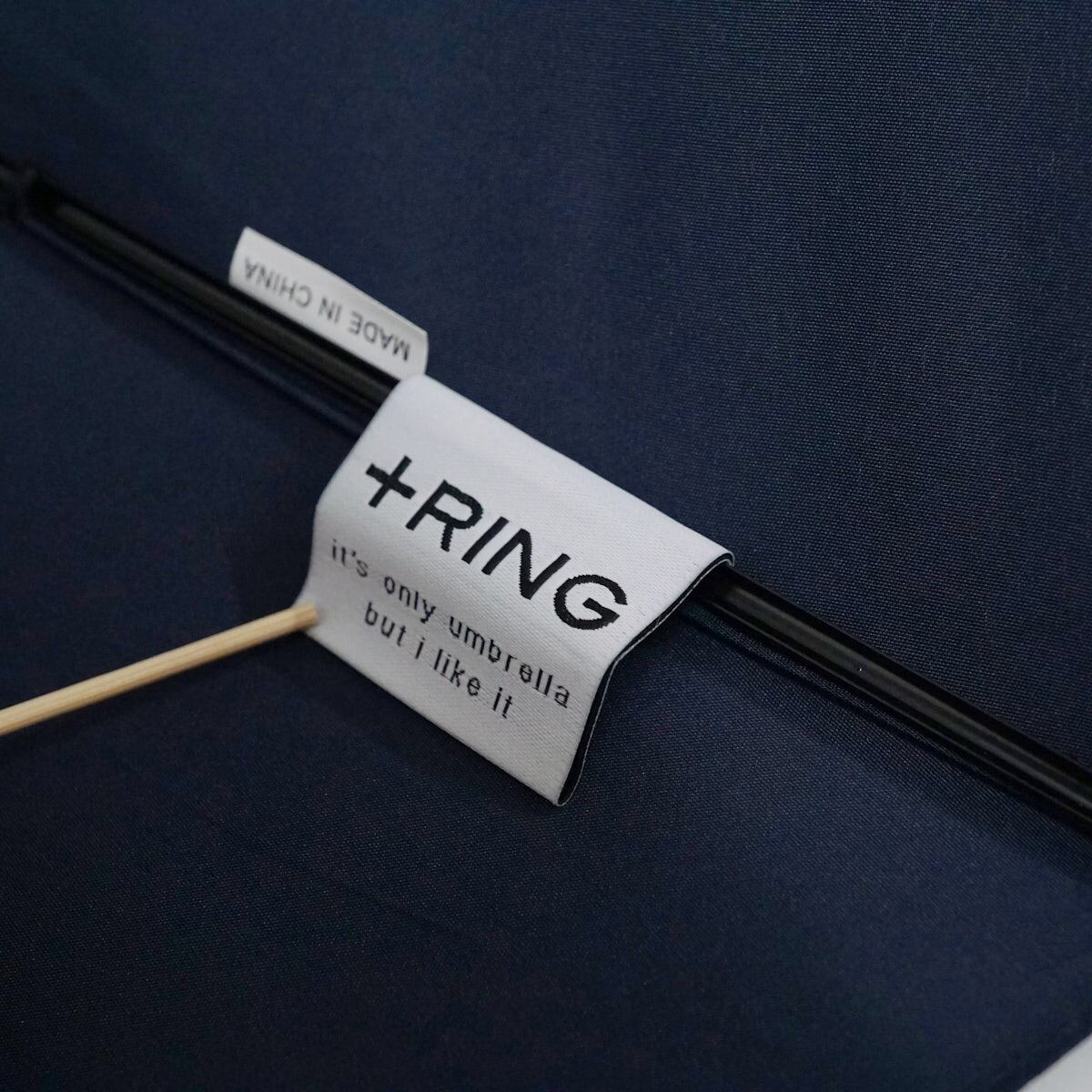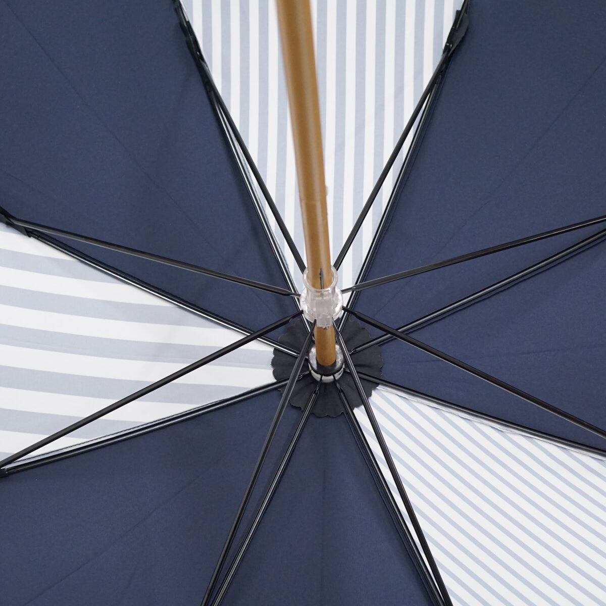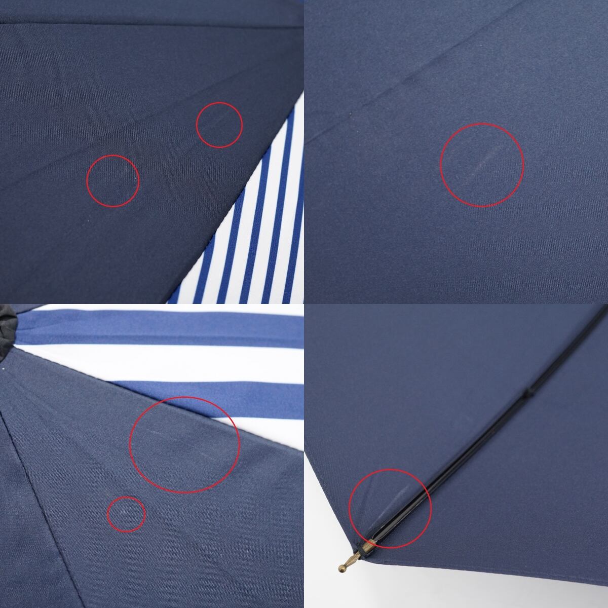 傘 +RING プラスリング USED美品 ブルー ネイビー ストライプ パッチワーク ショートサイズ 晴雨兼用 木製手元 52cm A3030