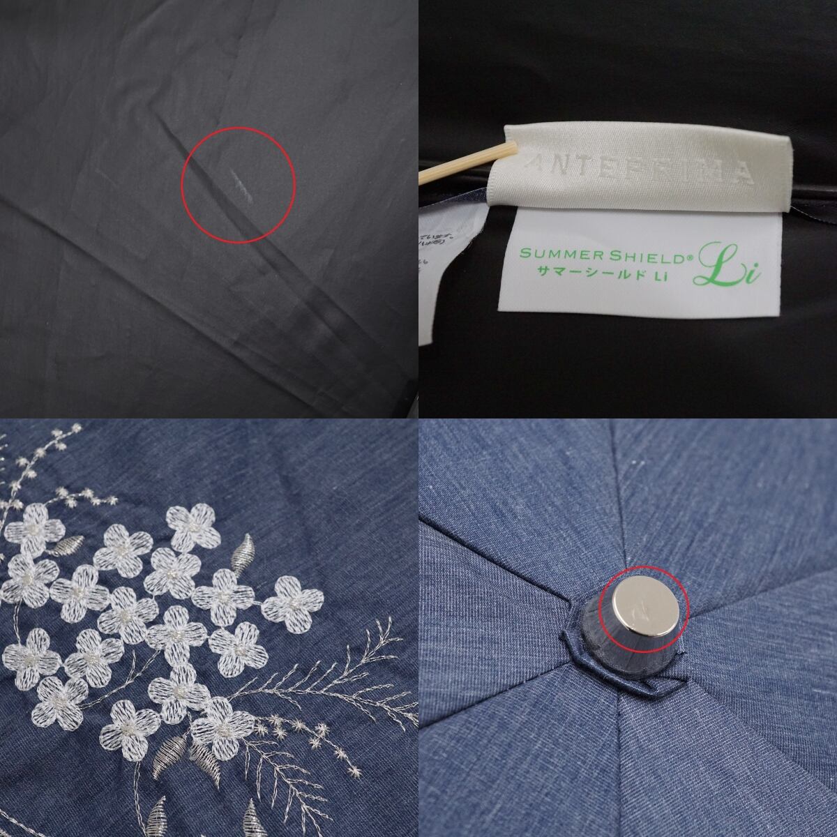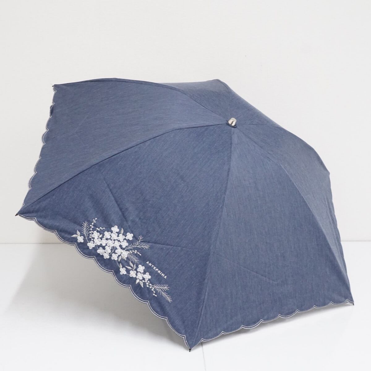 折りたたみ日傘 ANTEPRIMA アンテプリマ USED美品 晴雨兼用 サマーシールドLi 刺繍 ブランド UV 遮光 デニムブルー 50cm FS9229