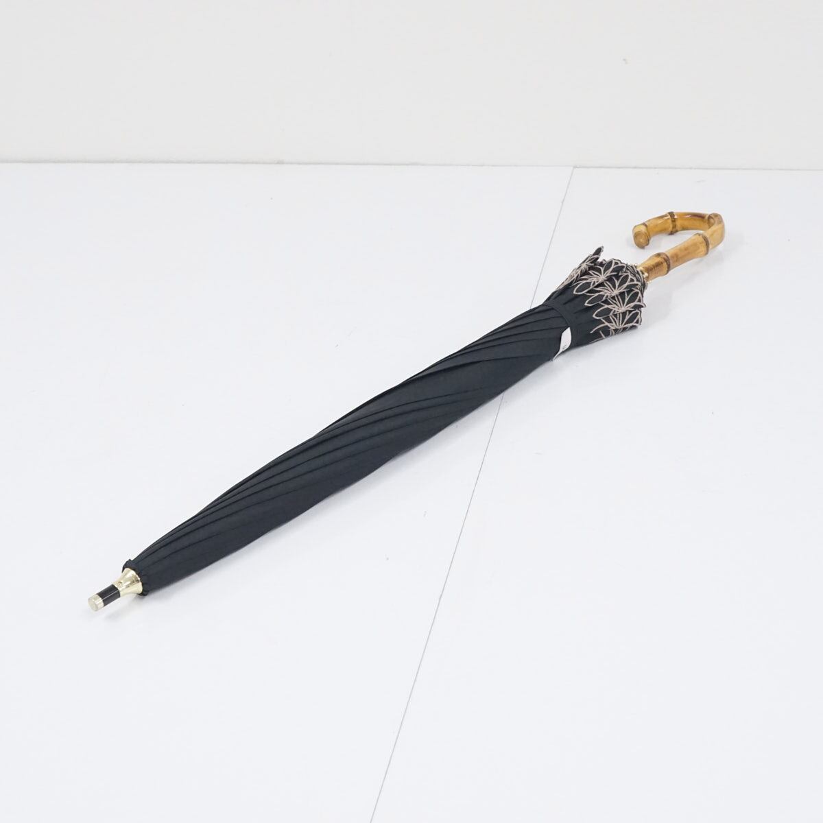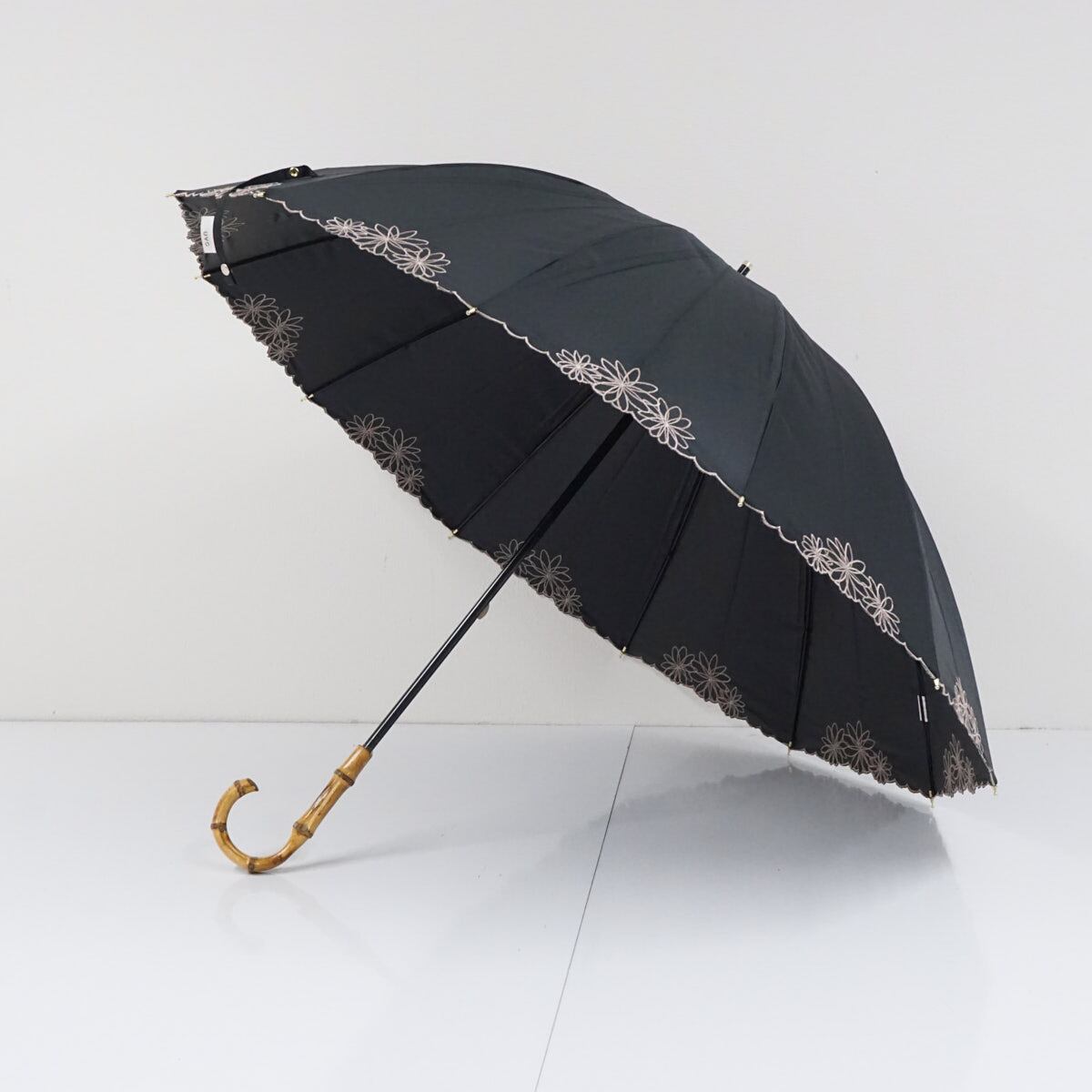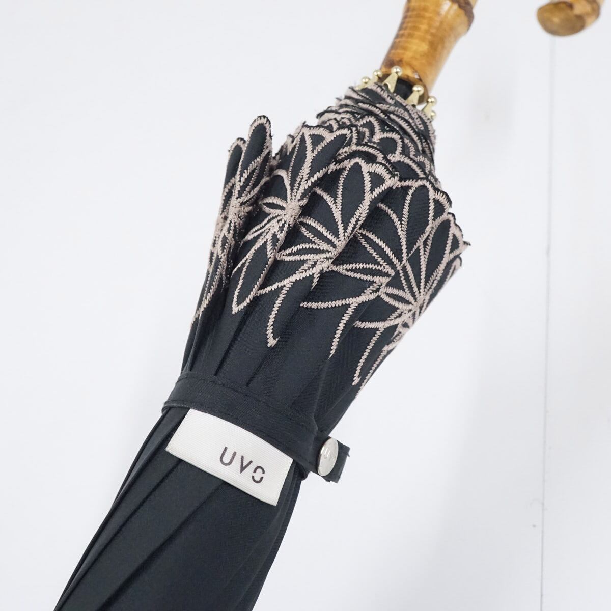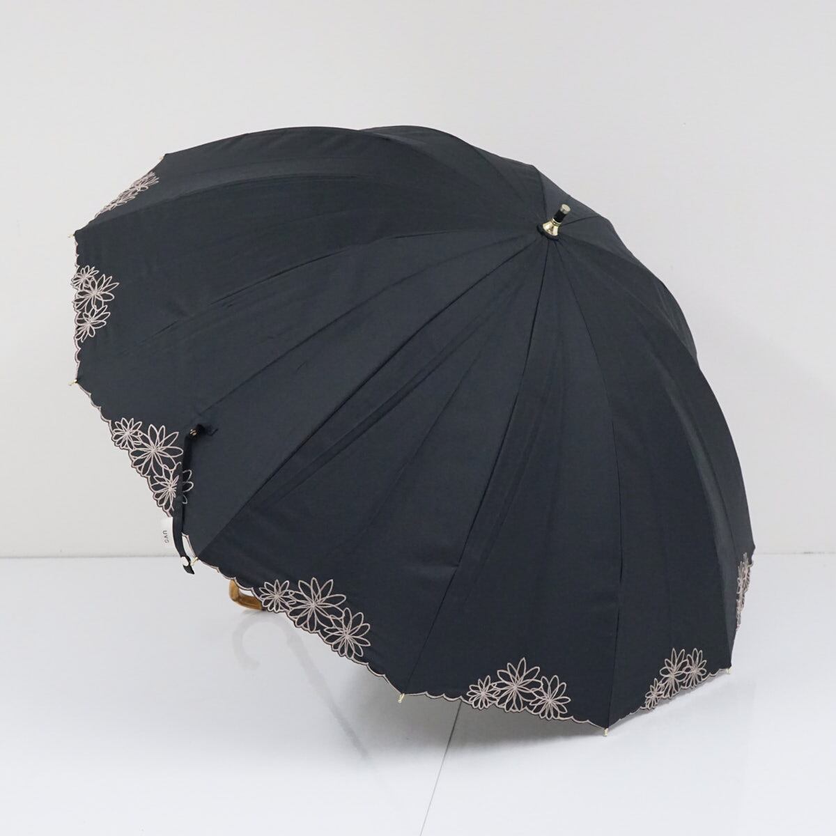日傘 晴雨兼用 Wpc. UVO ウーボ USED美品 12本骨 ブラック 遮光 遮熱 UV 刺繍 フラワー 最強の日傘 寒竹手元 グラス骨 A3050