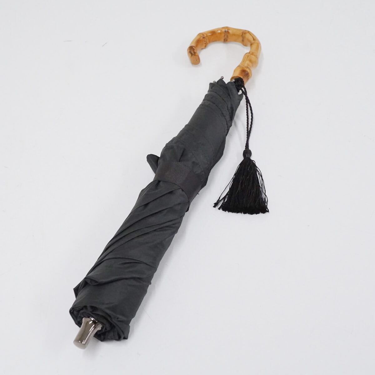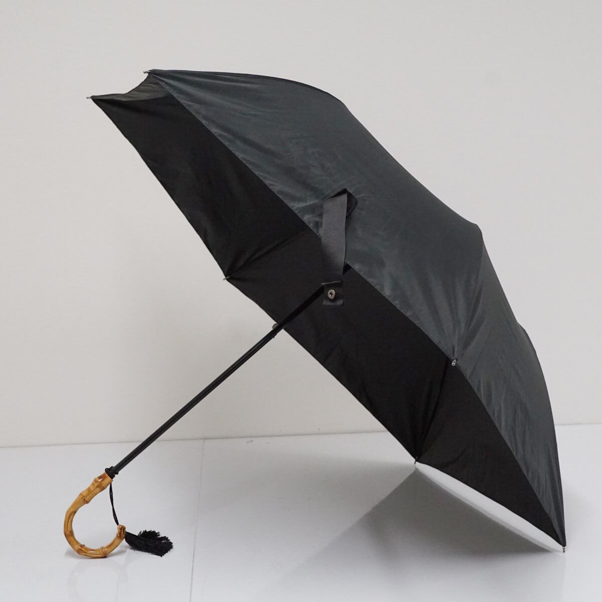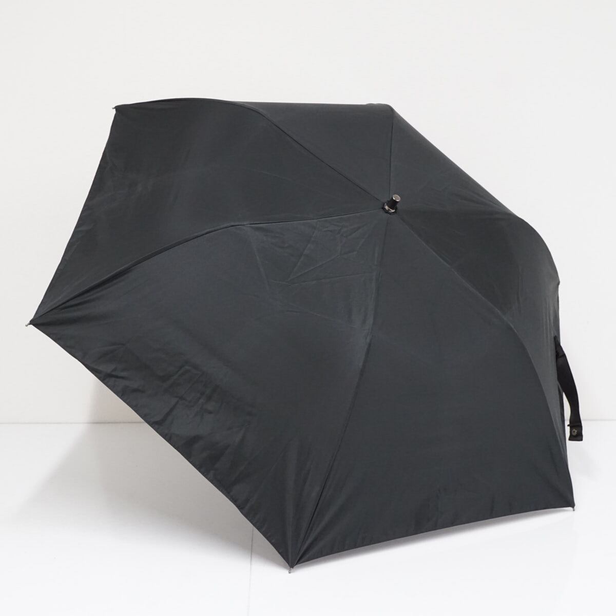 ブラックの無地でシンプルなデザインの折りたたみパラソルです。
