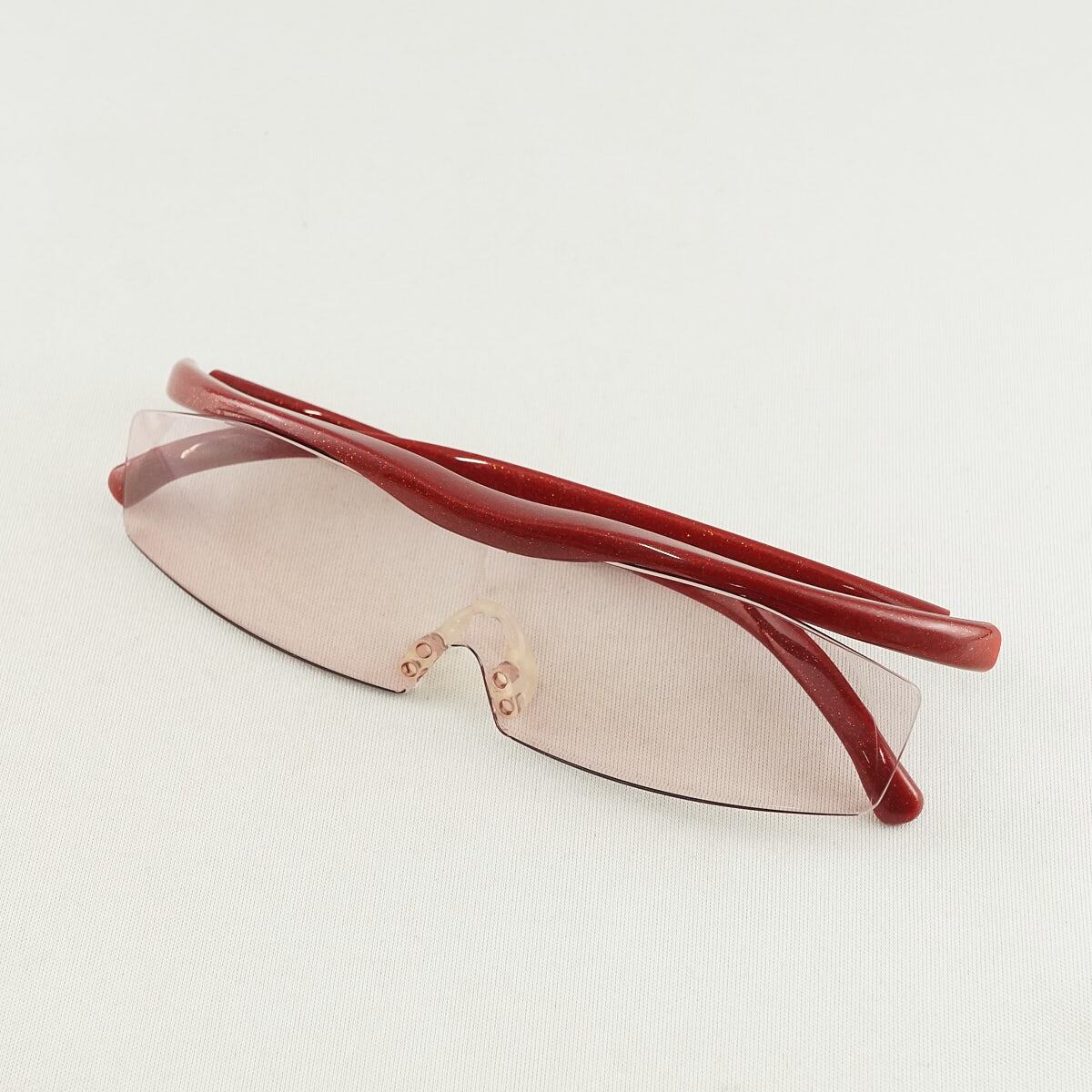Hazuki ハズキルーペ 拡大鏡 USED品 1.32倍 日本製 コンパクト カラーレンズ レッド ラメ UV 重ねがけ X7371