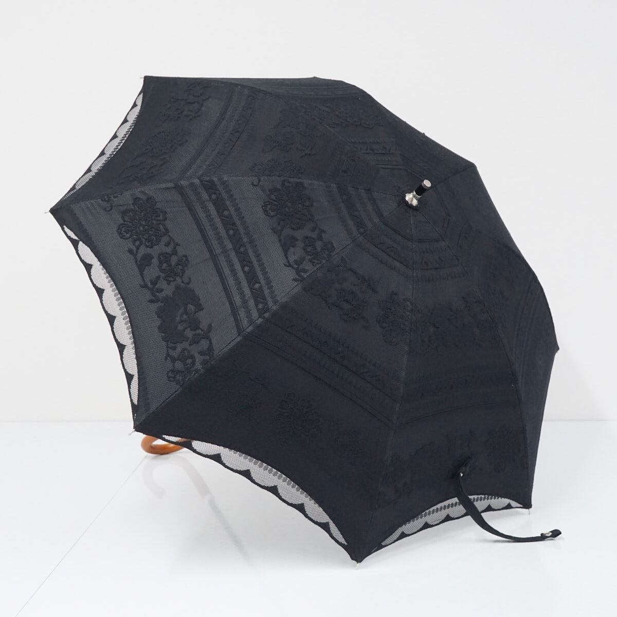 日傘 ブロンズ USED美品 フラワー レース 黒 ブラック×ブラック 晴雨兼用 UV 遮光 遮熱 45cm A3056
