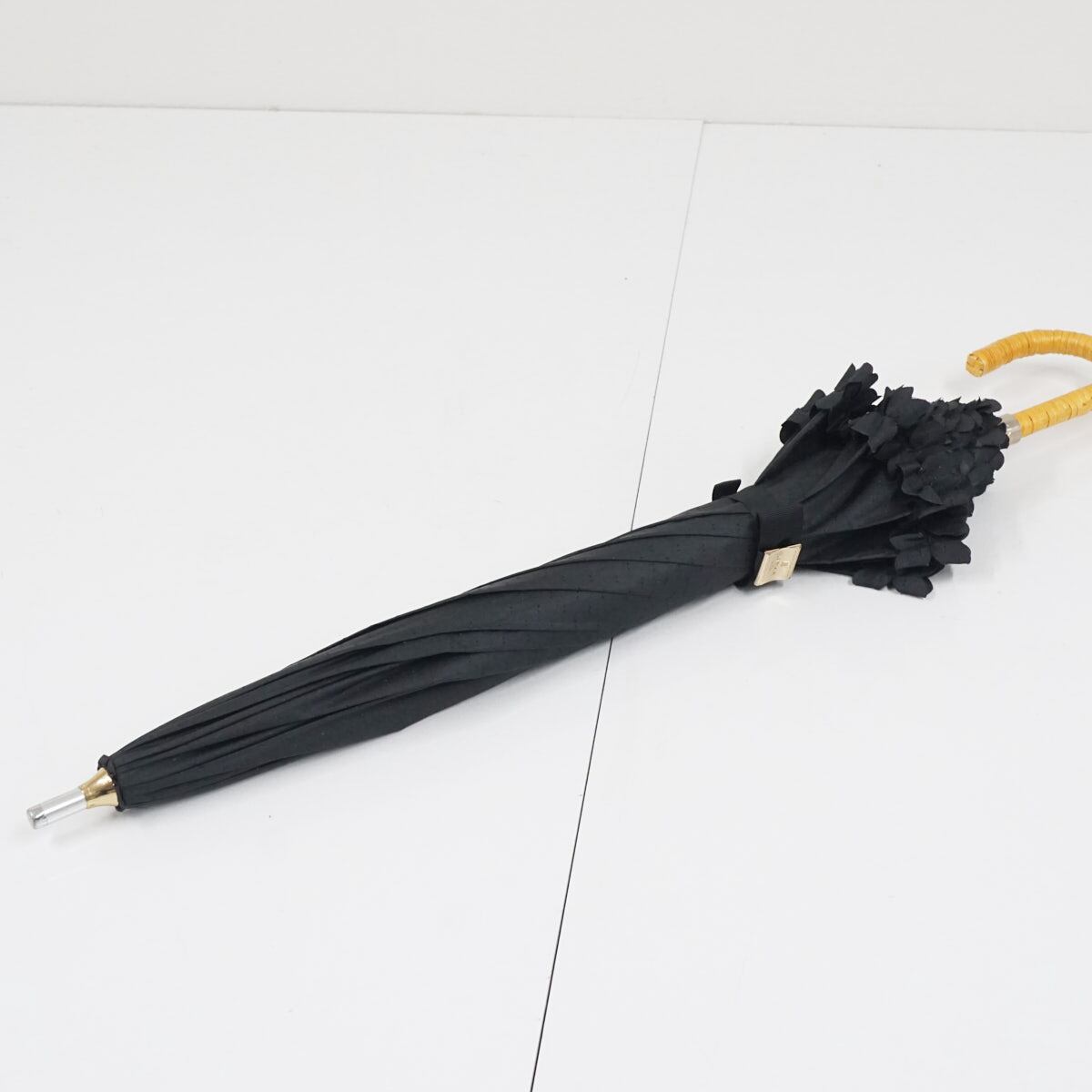 日傘 ランバン オンブルー LANVIN en Bleu ドビー フリル 晴雨兼用 ブラック エレガント 遮光 遮熱 UV ラタン巻き A3533