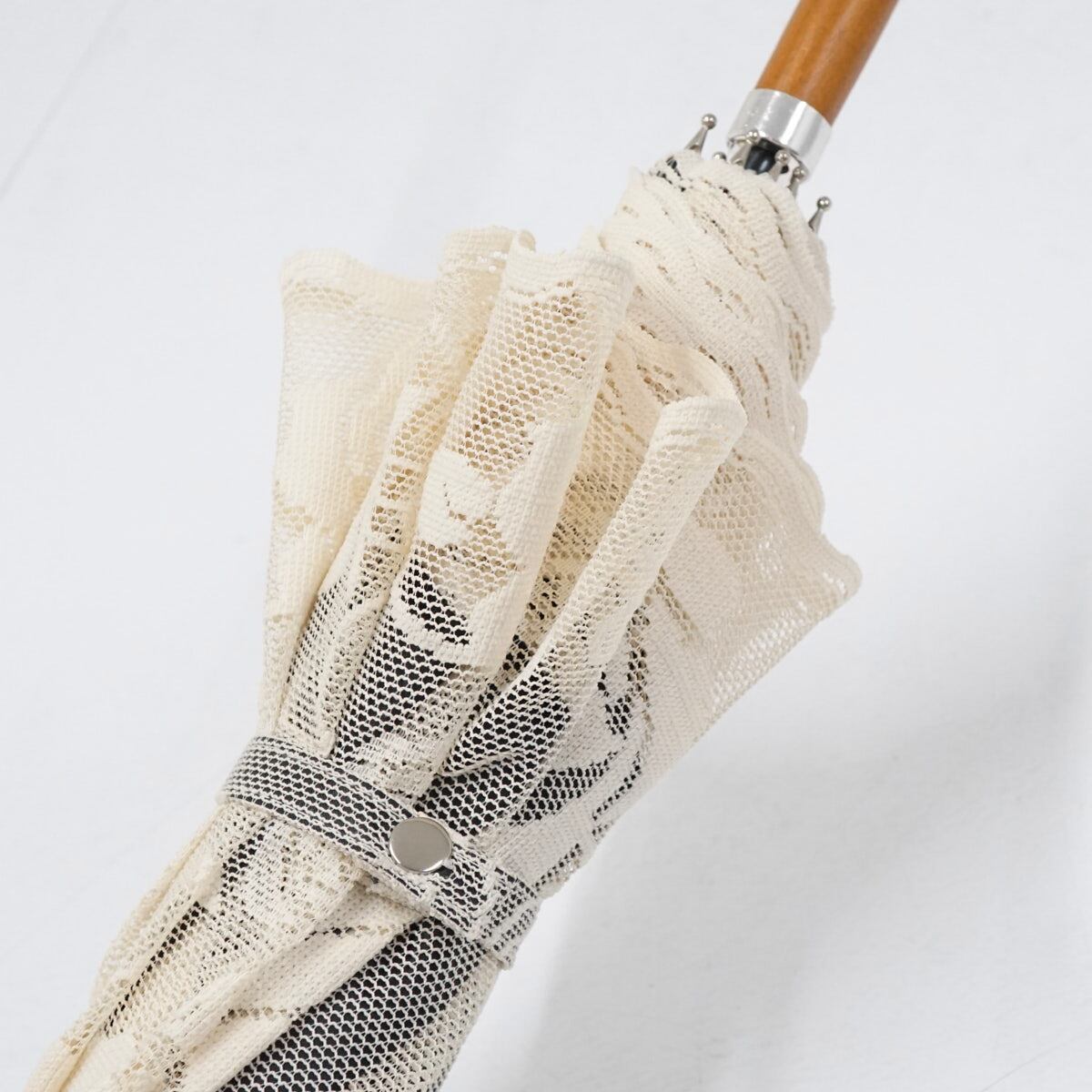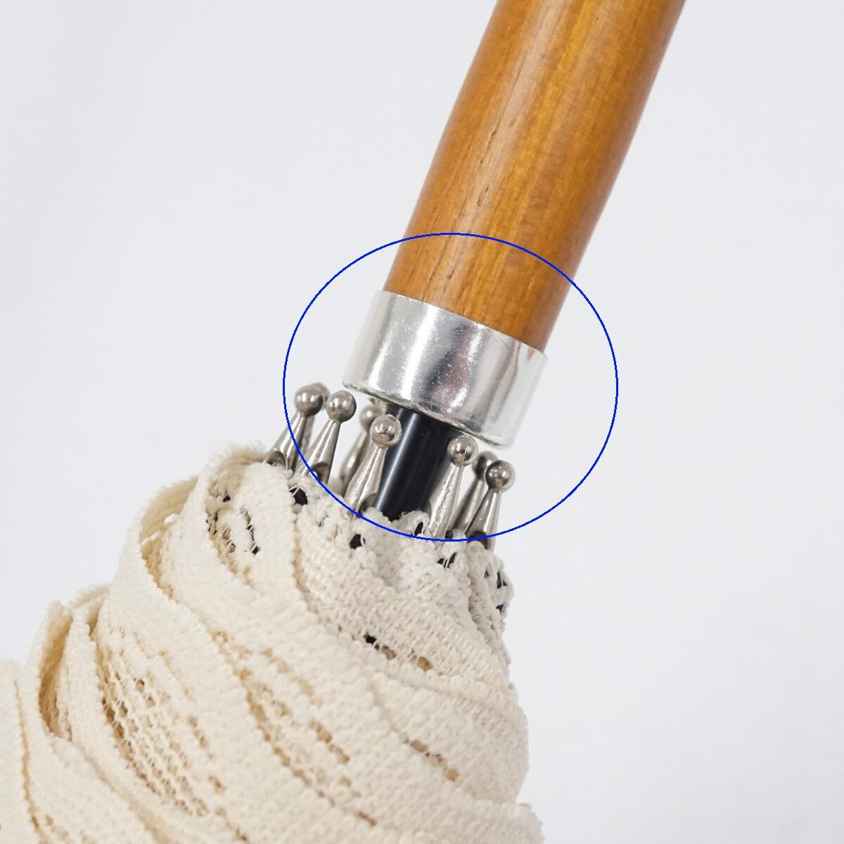 ブロンズ 日傘 USED美品 晴雨兼用 レース フラワー ブラック×アイボリー UV 木製手元 二重張り 50cm A3057