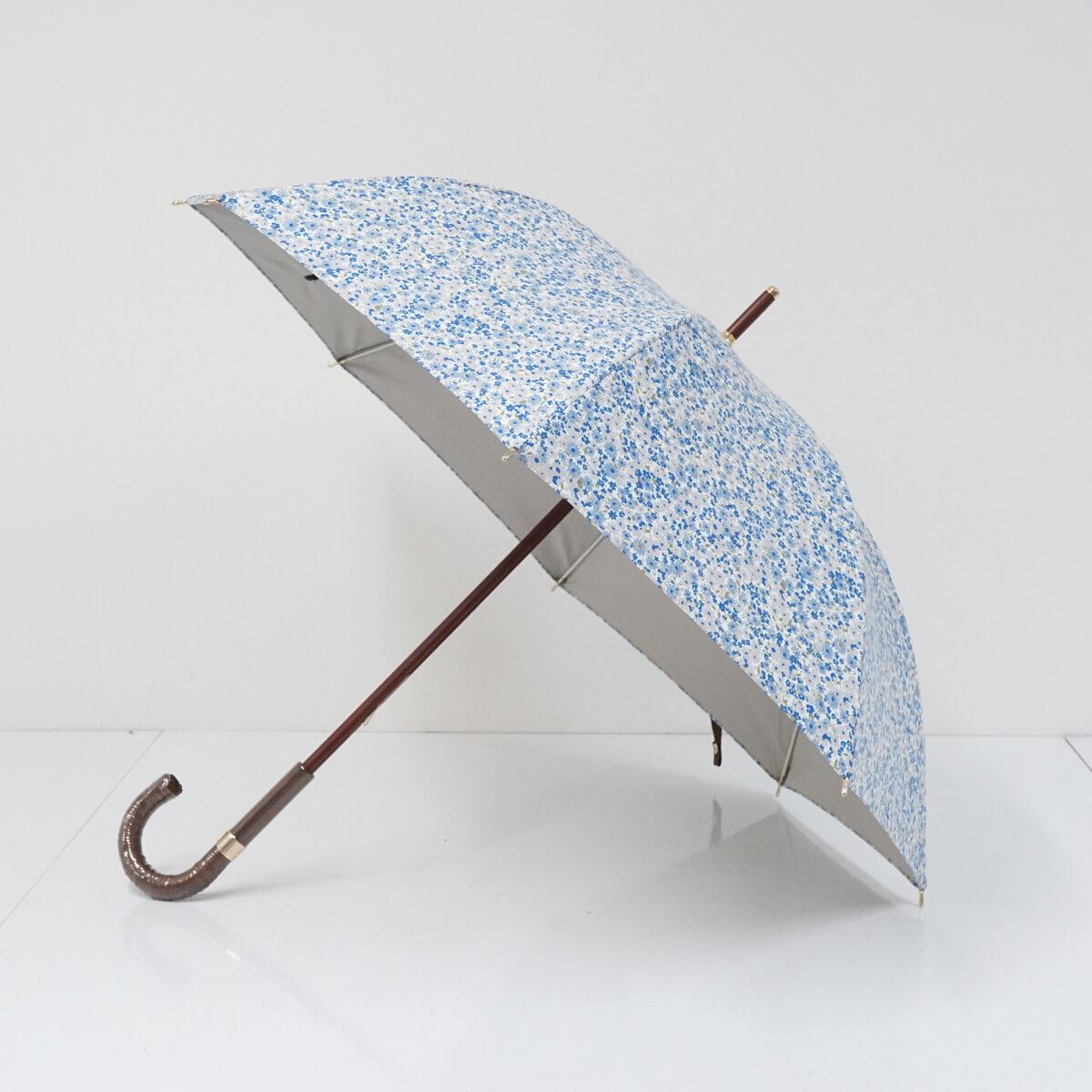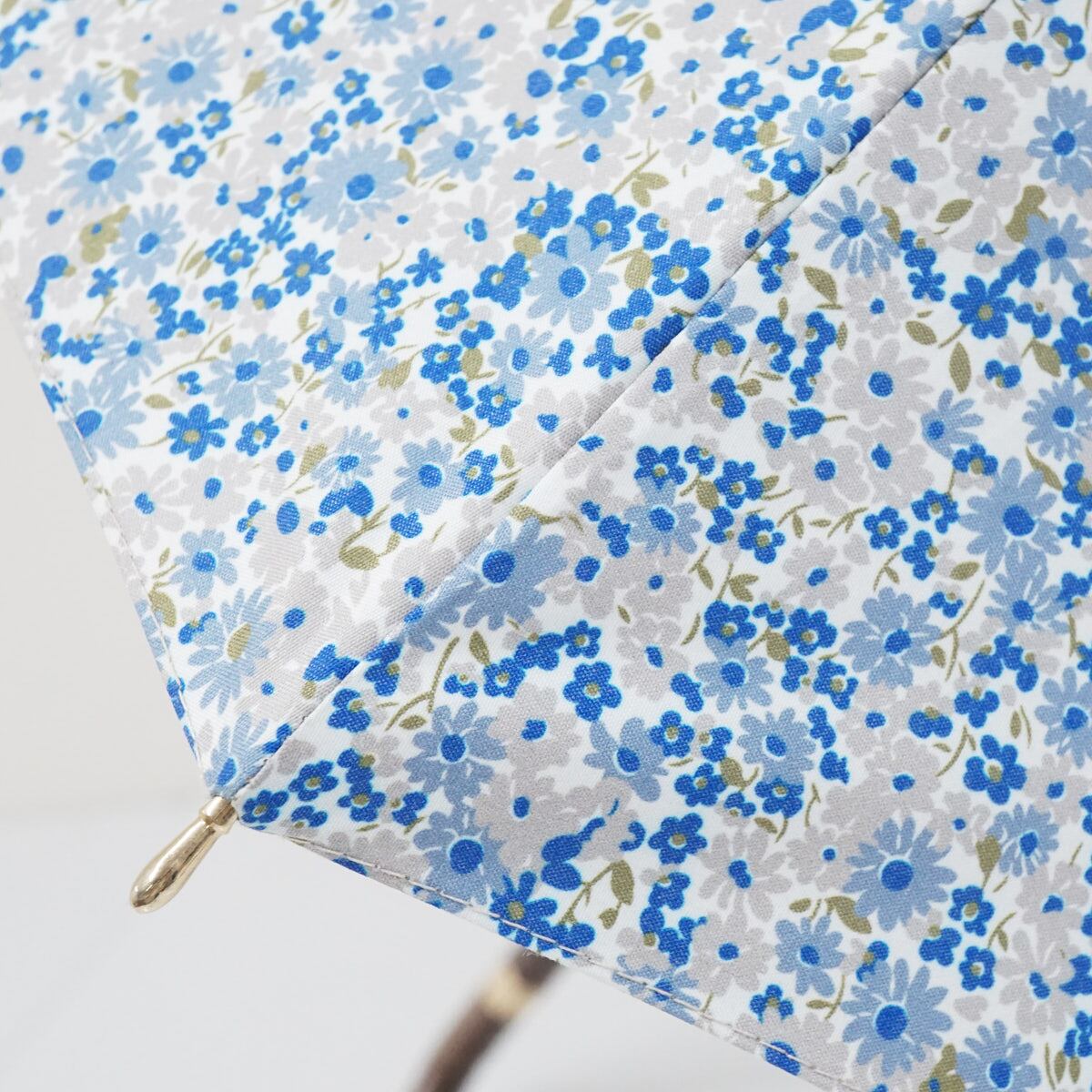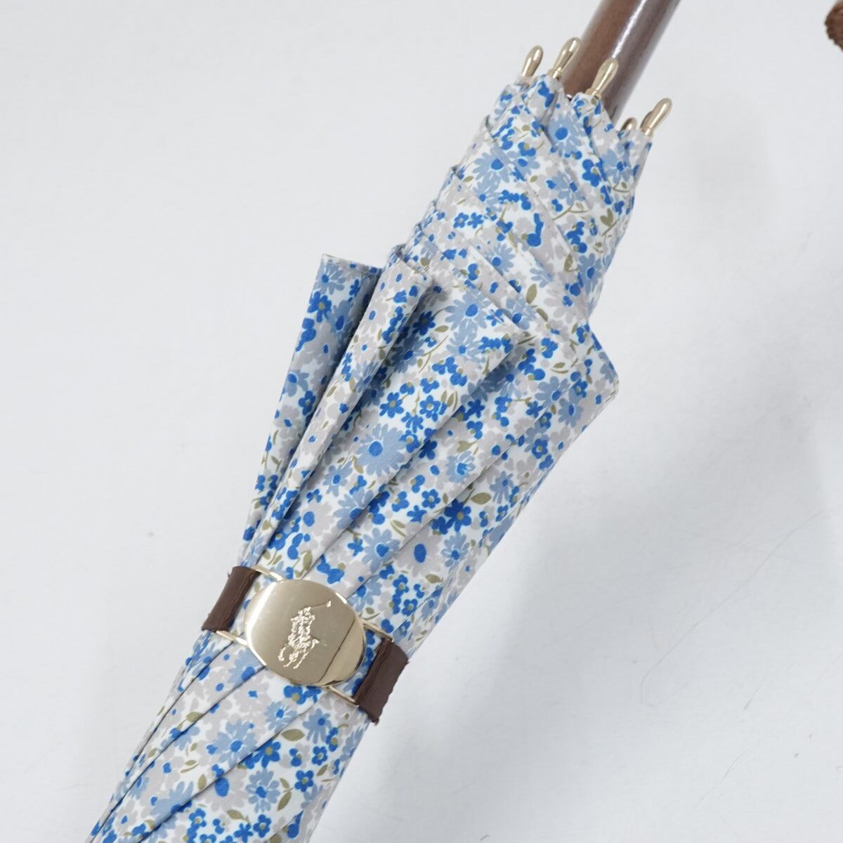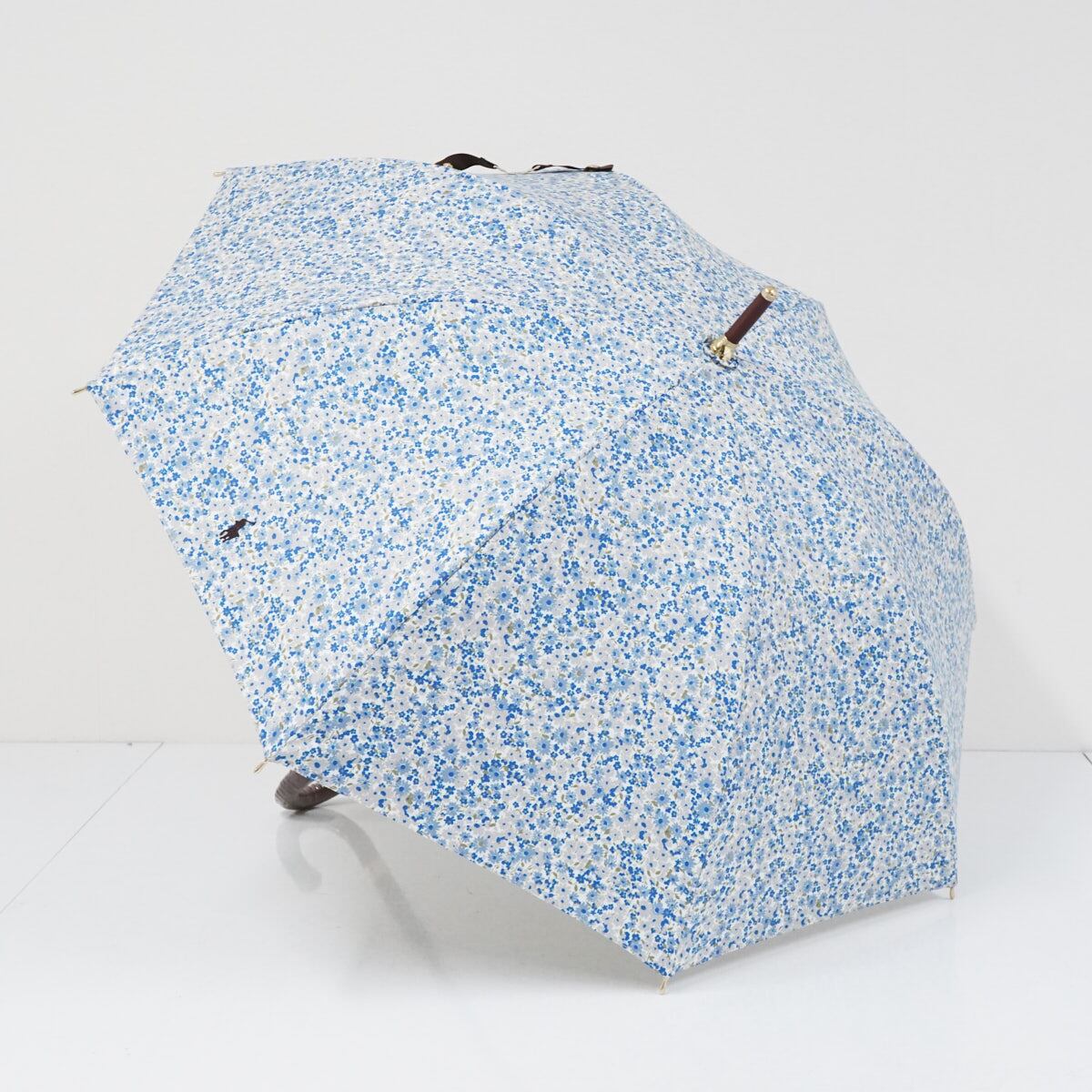 日傘 Polo Ralph Lauren ポロラルフローレン USED美品 ブルー フラワー 小花 ポロ刺繍 晴雨兼用 UVカット 遮光 50cm S2385