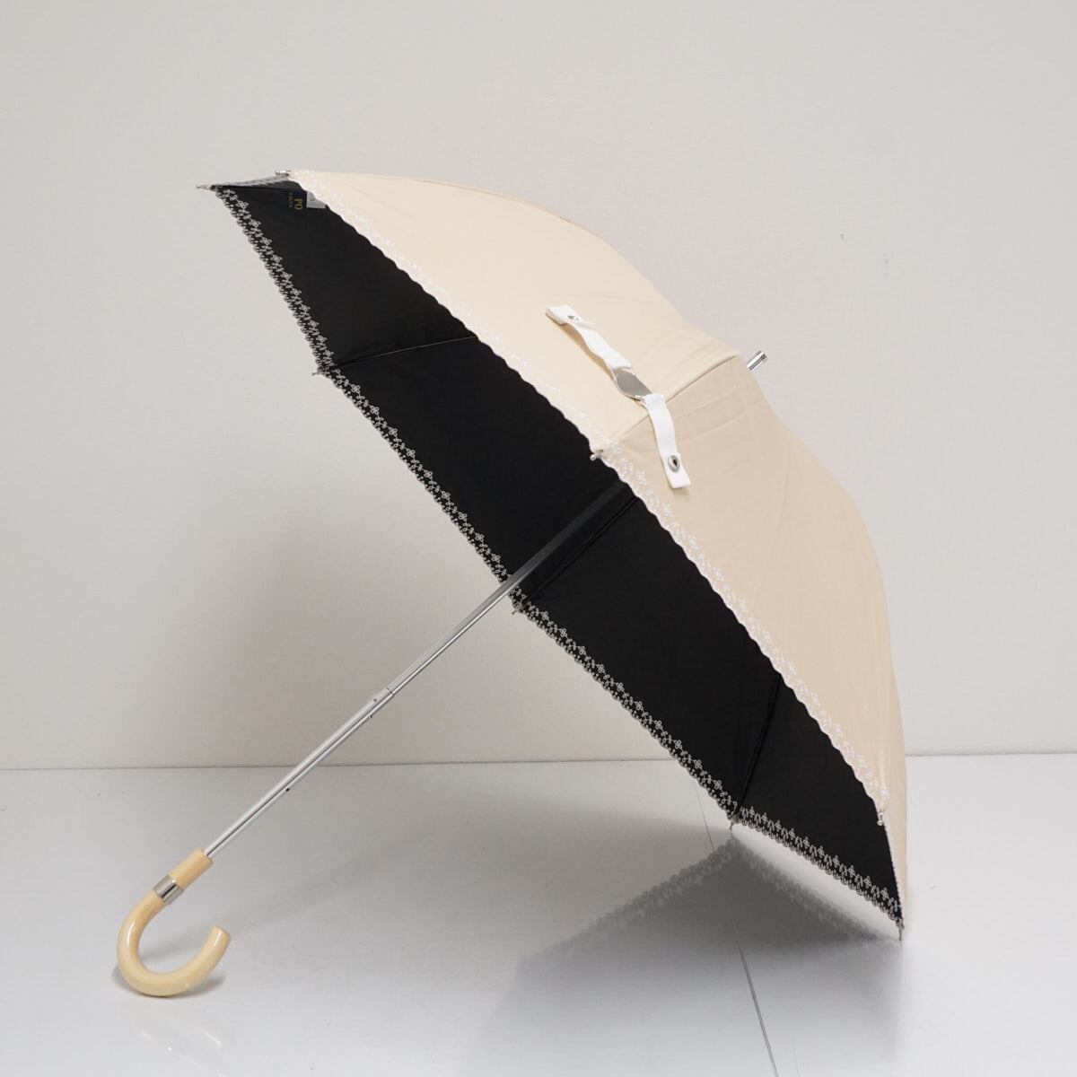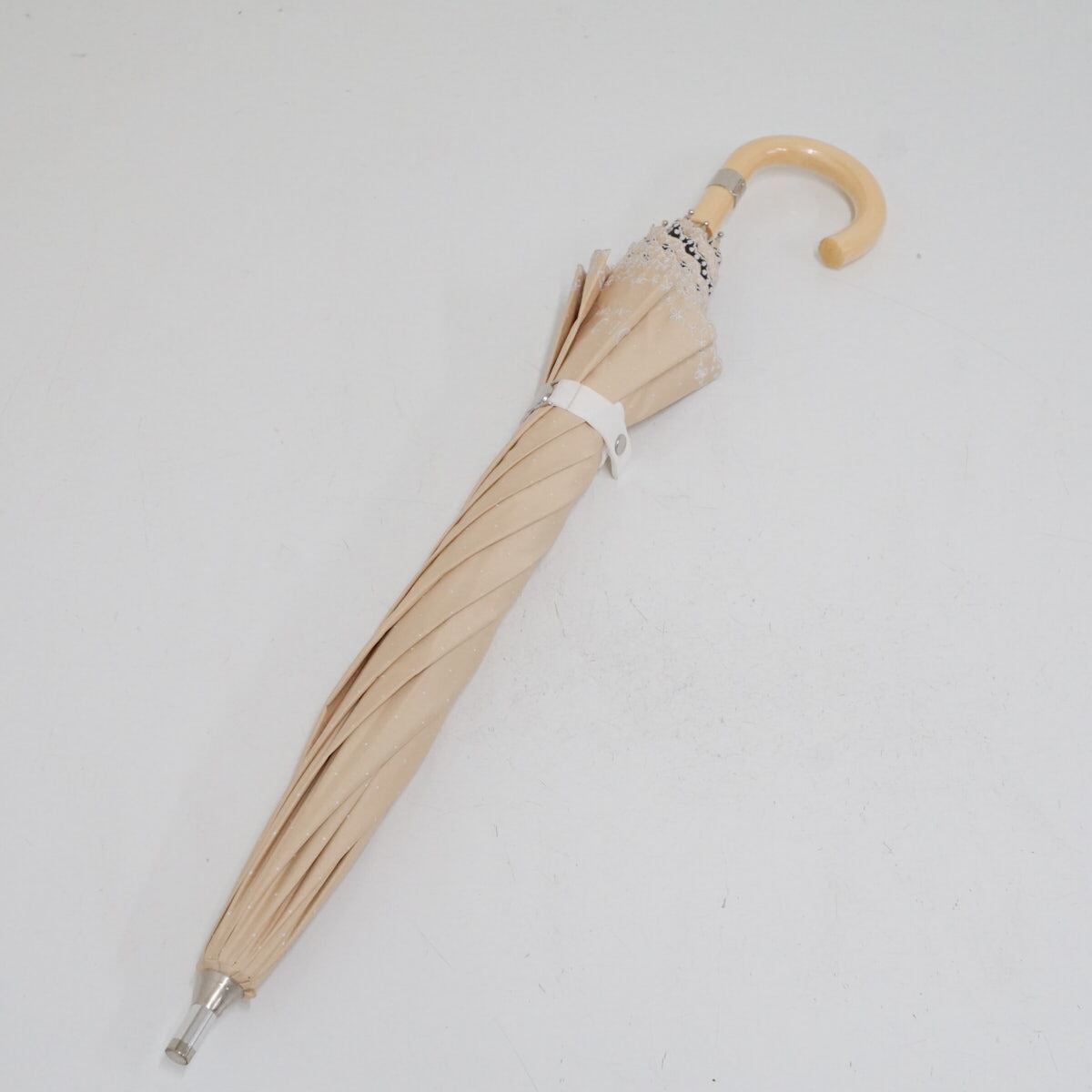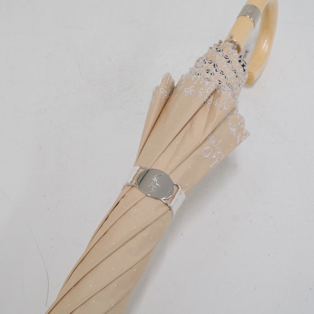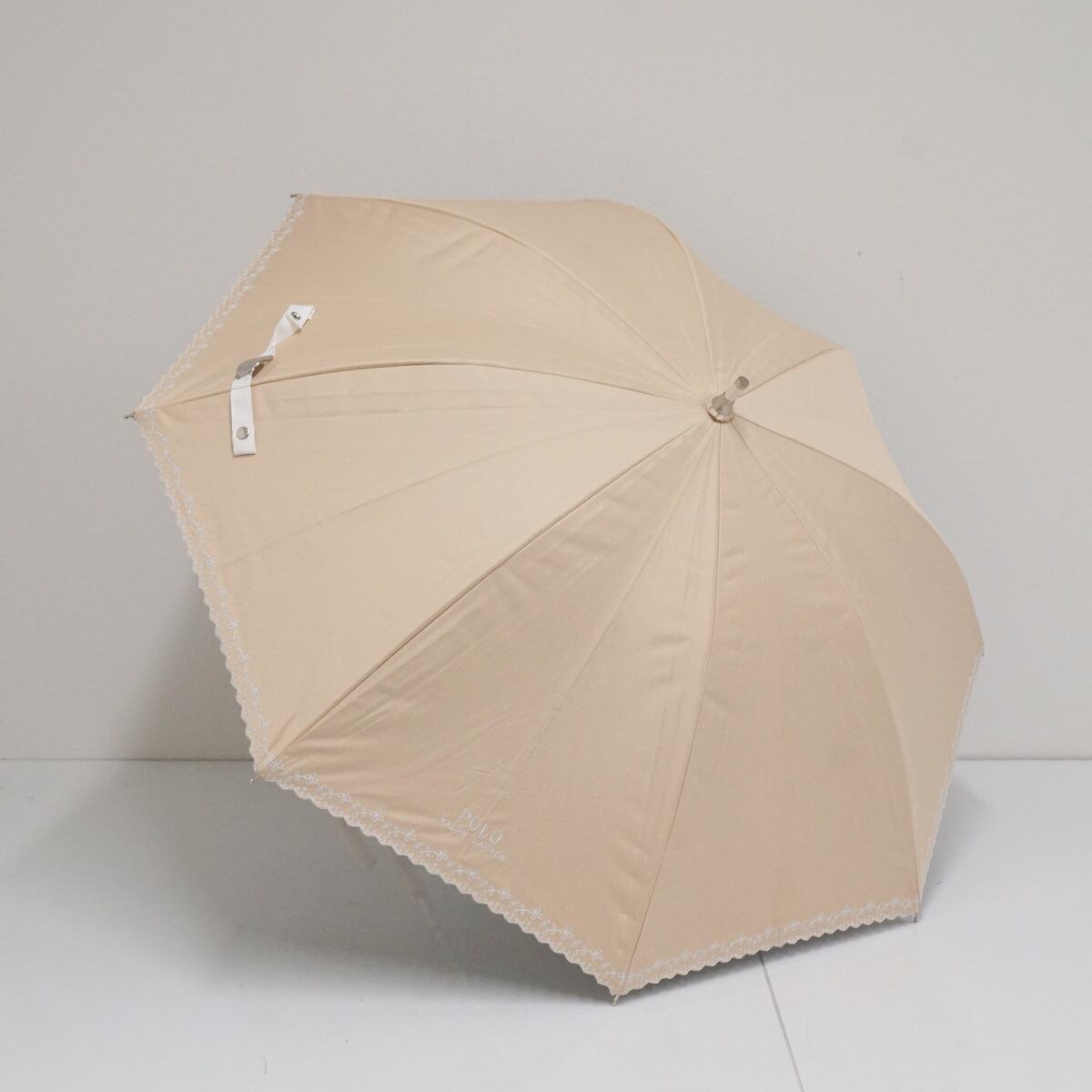 晴雨兼用日傘 POLO RALPH LAUREN ポロラルフローレン USED美品 スカラップ 刺繍 プチドット ベージュ UV 遮光 47cm S3044