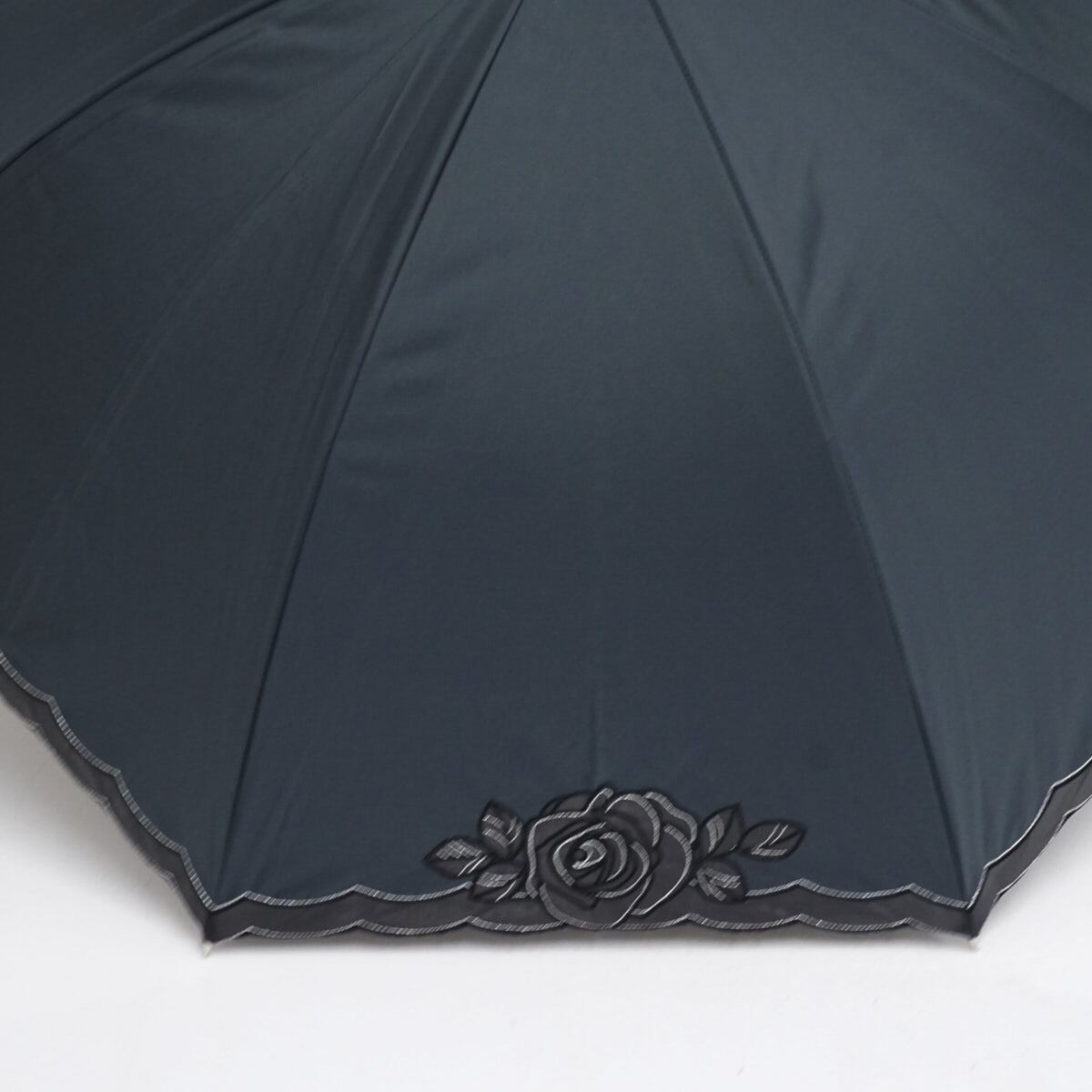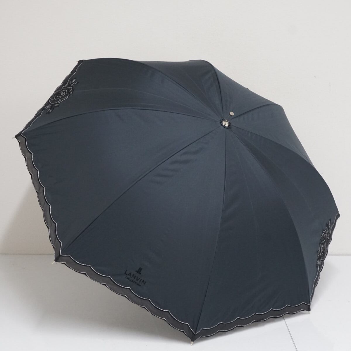 晴雨兼用日傘 LANVIN COLLECTION ランバンコレクション USED美品 薔薇 フラワー刺繍 ブラック UV 軽量 50cm S3045