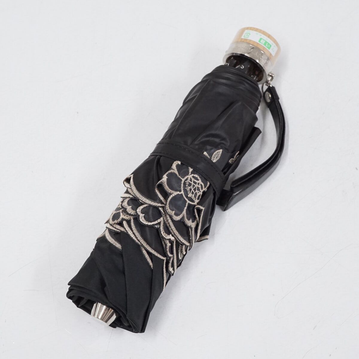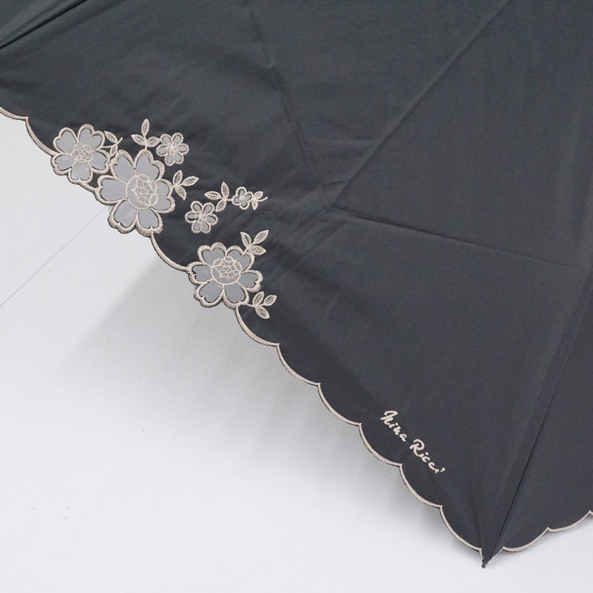 折りたたみ日傘 NINA RICCI ニナリッチ USED超美品 サマーシールドLi 晴雨兼用 フラワー ブラック 黒 UVカット 遮光 遮熱 50cm FS9250