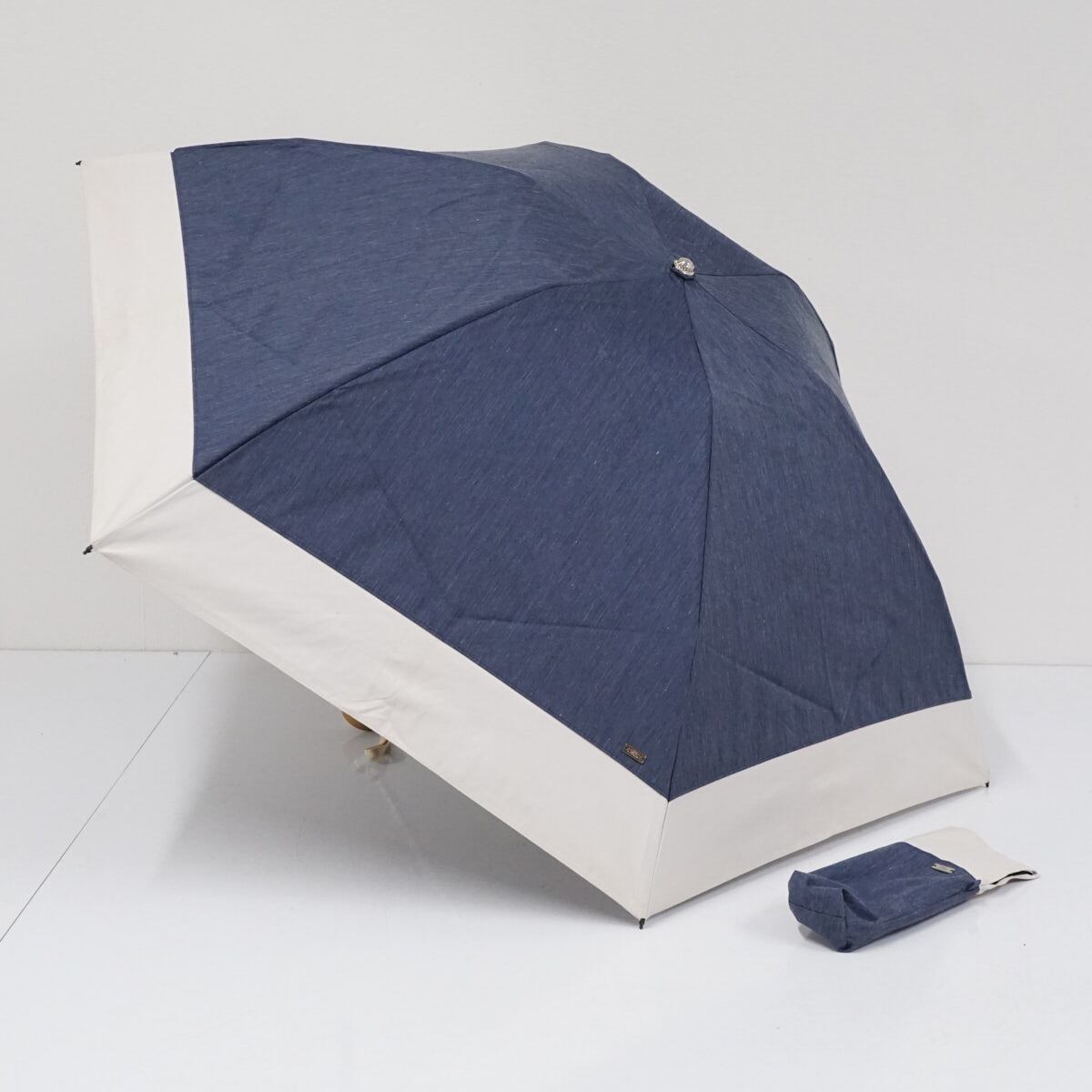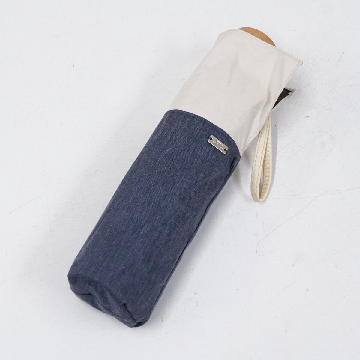 折りたたみ日傘 Blao ブラオ USED美品 晴雨兼用 東レサマーシールドLi ネイビー デニム風 グラス骨 遮光 遮熱 UV 50cm FS9251