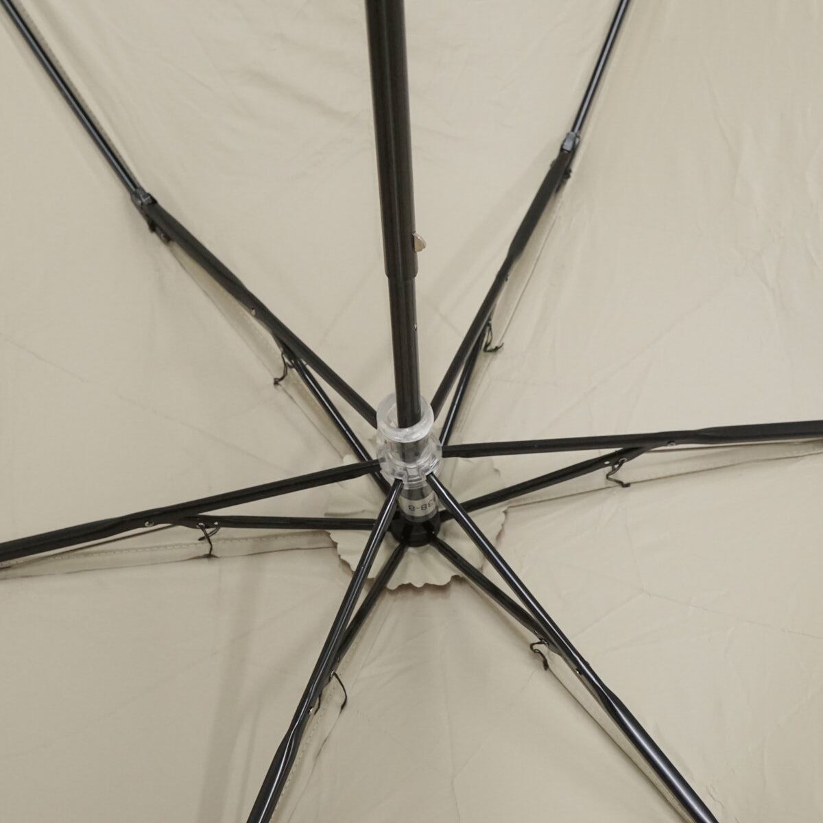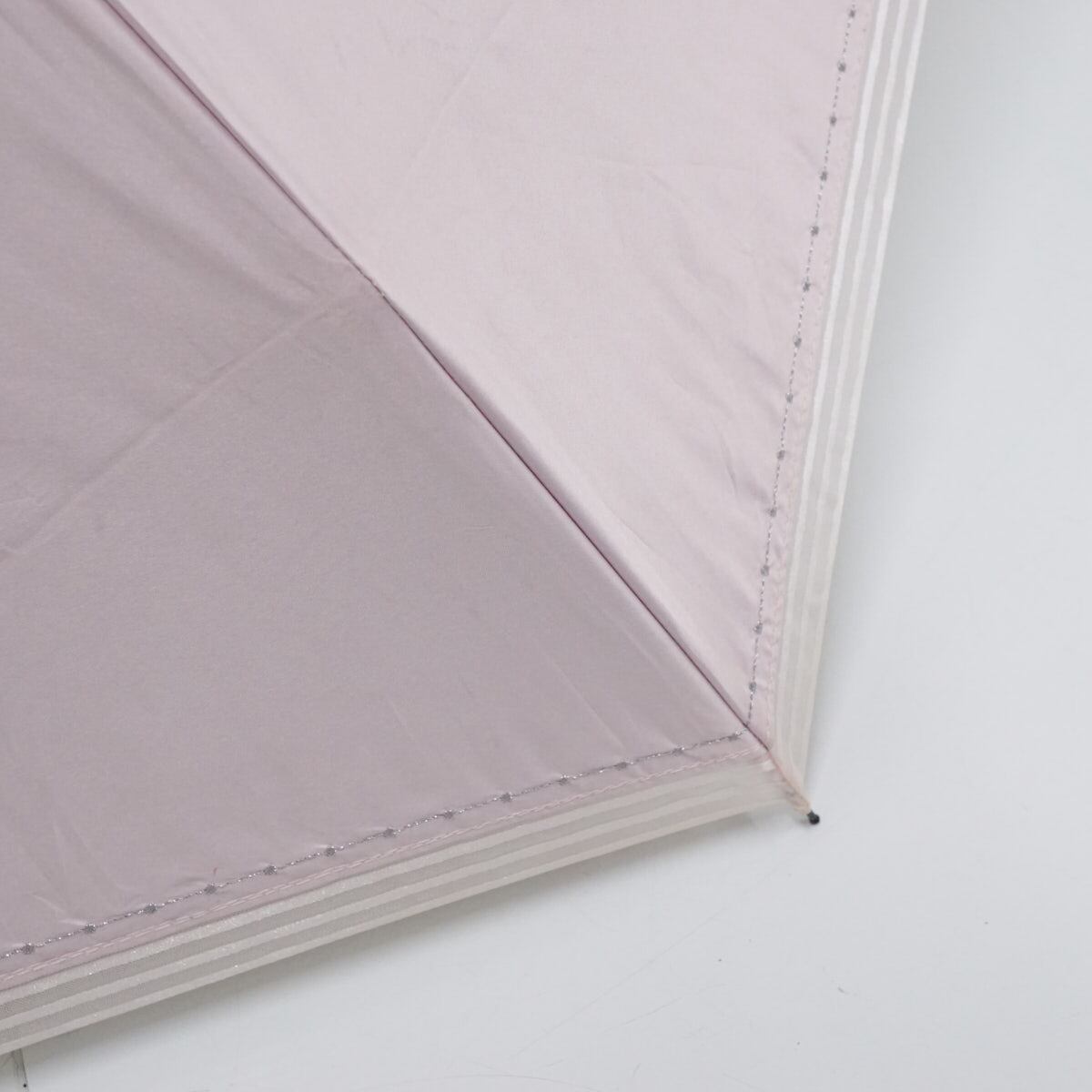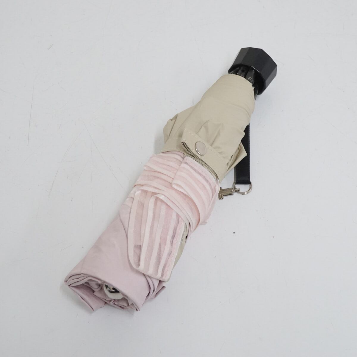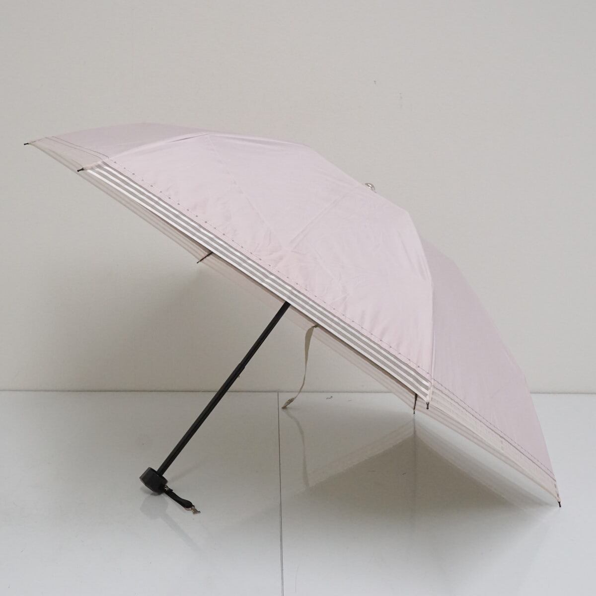 優しげなベビーピンクの生地に、ブランドロゴのプリントを添えた晴雨兼用折りたたみパラソルです。