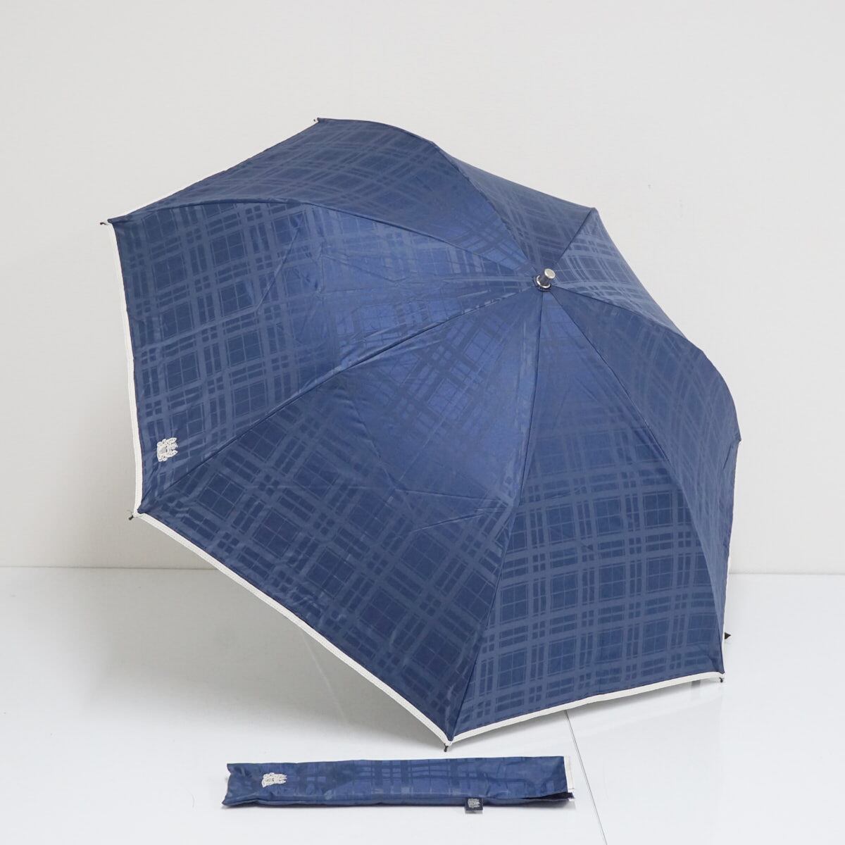 折りたたみ日傘 Aquascutum アクアスキュータム USED美品 晴雨兼用 ネイビー チェック UV 遮光 50cm FA9244