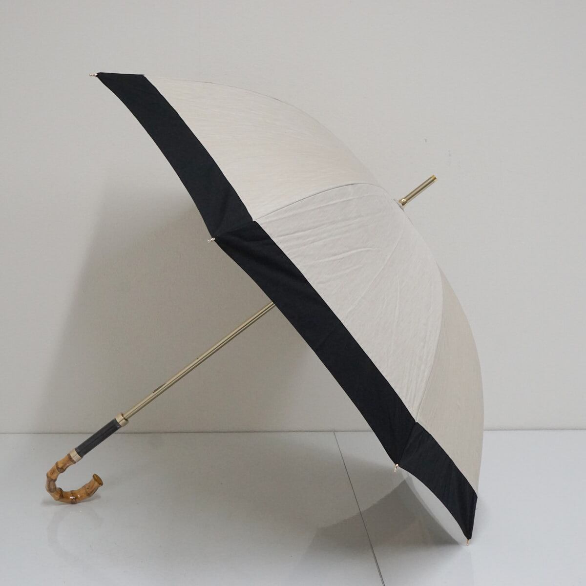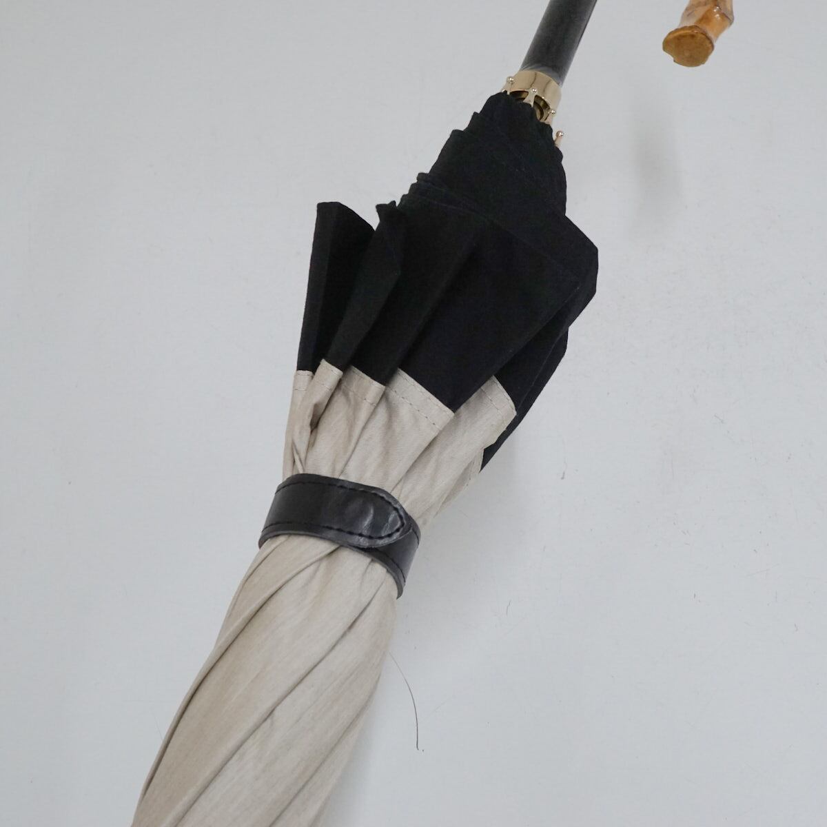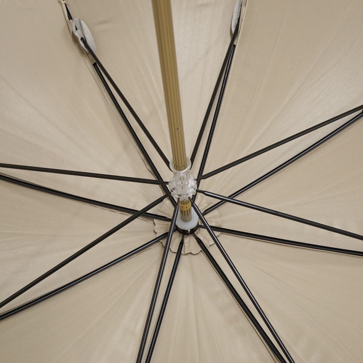 全体の優しい表情にハンドルの重厚感が合わさりエレガントに仕上がった晴雨兼用パラソルです。